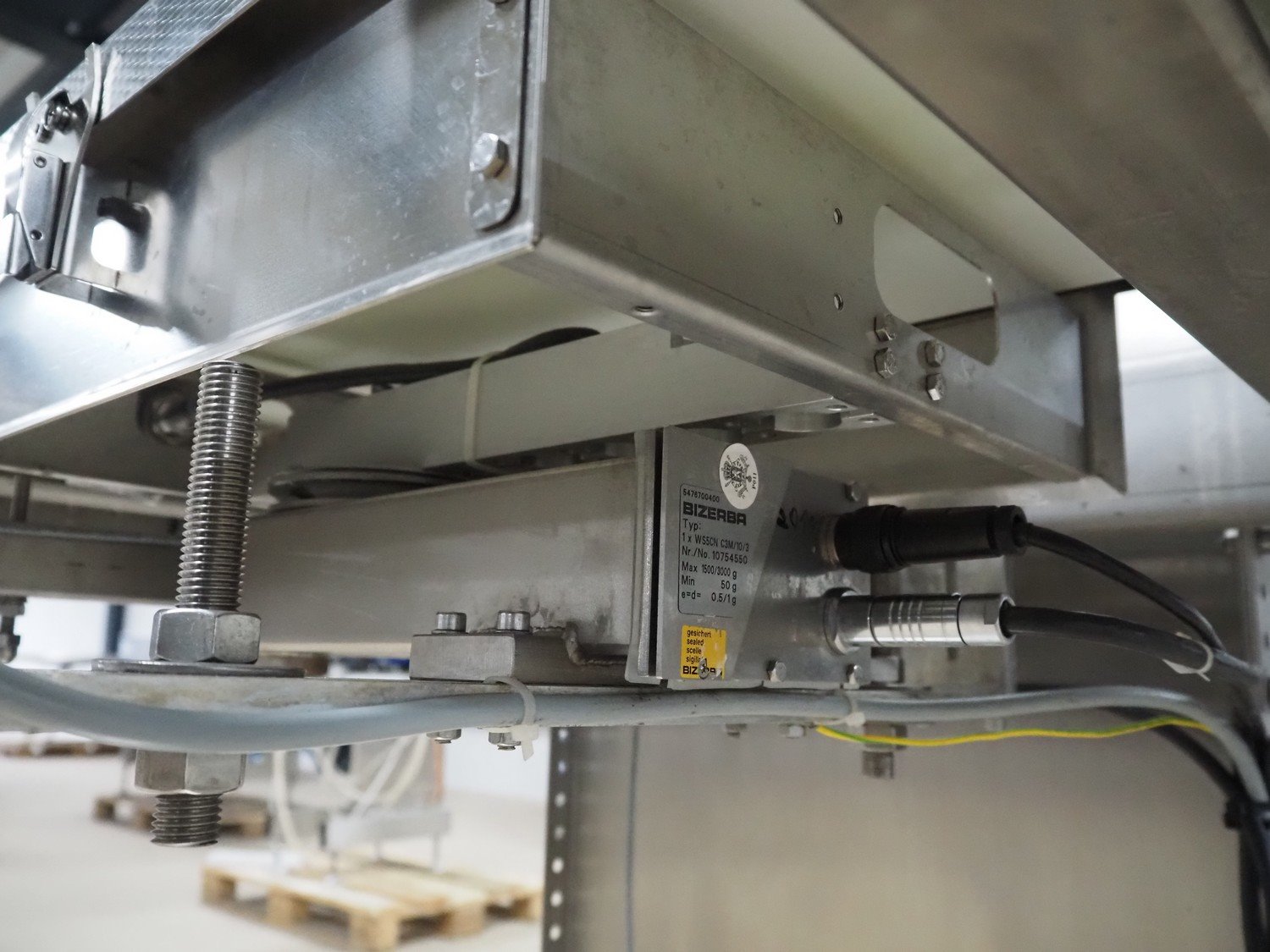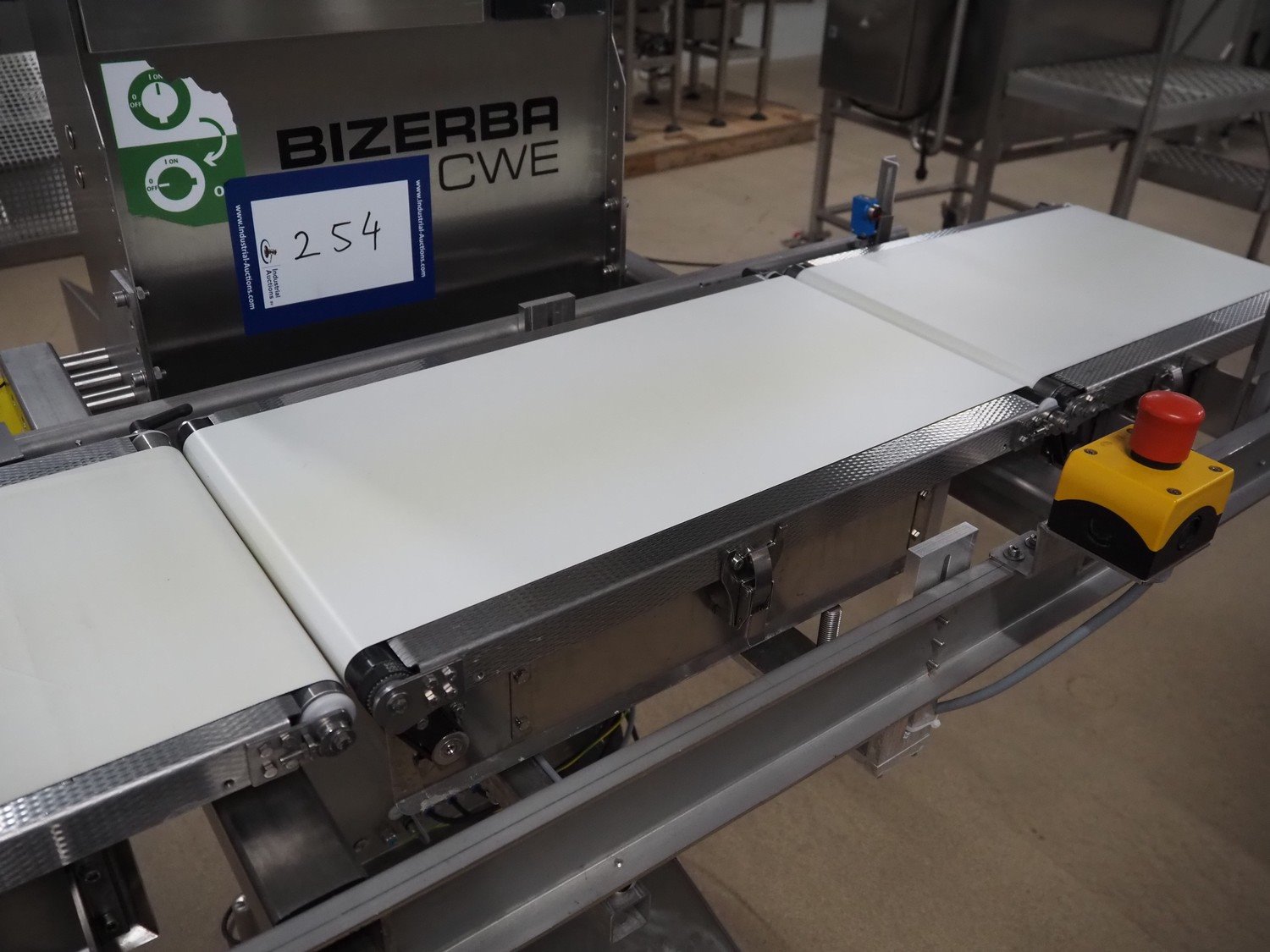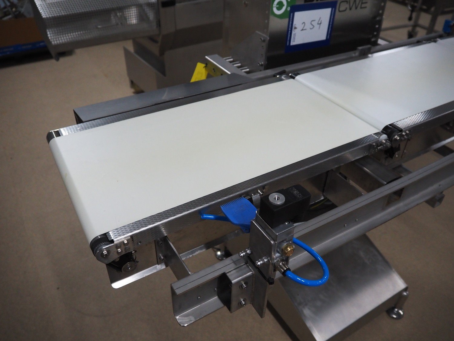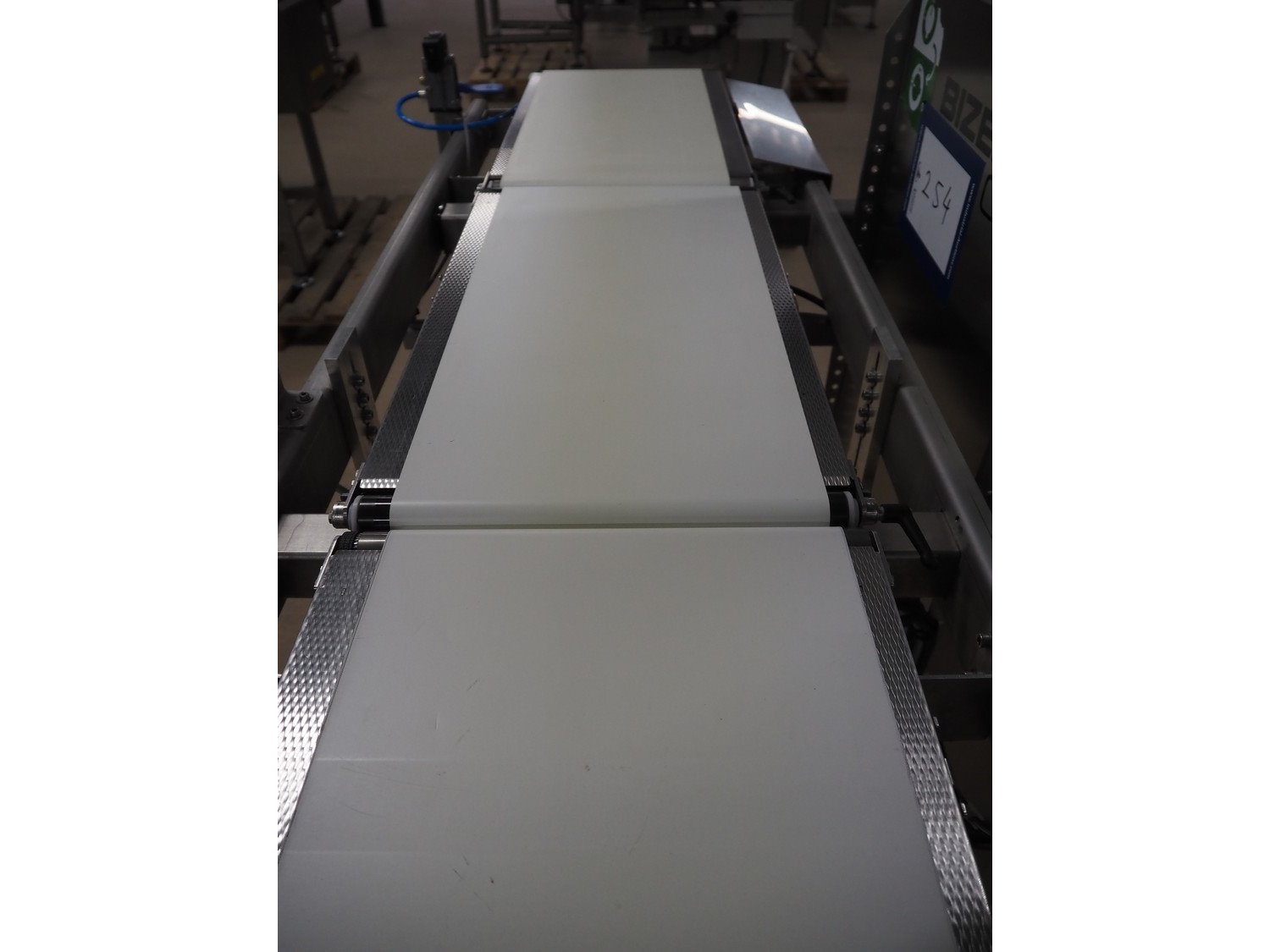 Bizerba checkweigher, model: CWE, number: 10754550, 200/220-240 V, 50/60 Hz, 5/3 A, maximum weight: 1500/3000 gram, minimum weight: 50 gram, e=d= 0.5/1 gram, plastic belt, belt width: 300 mm, total dimensions: 1800 mm x 920 mm x 1700 mm. Kavel locatie: Amfoor 6, 4421 SE Kapelle, Nederland