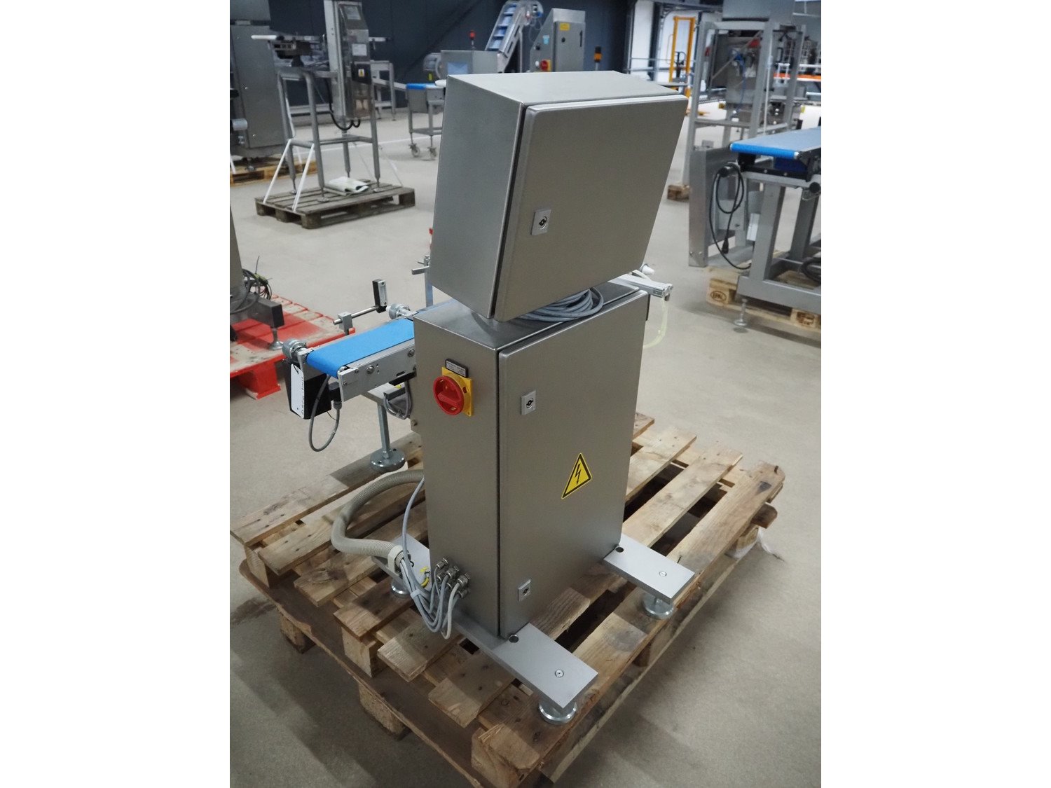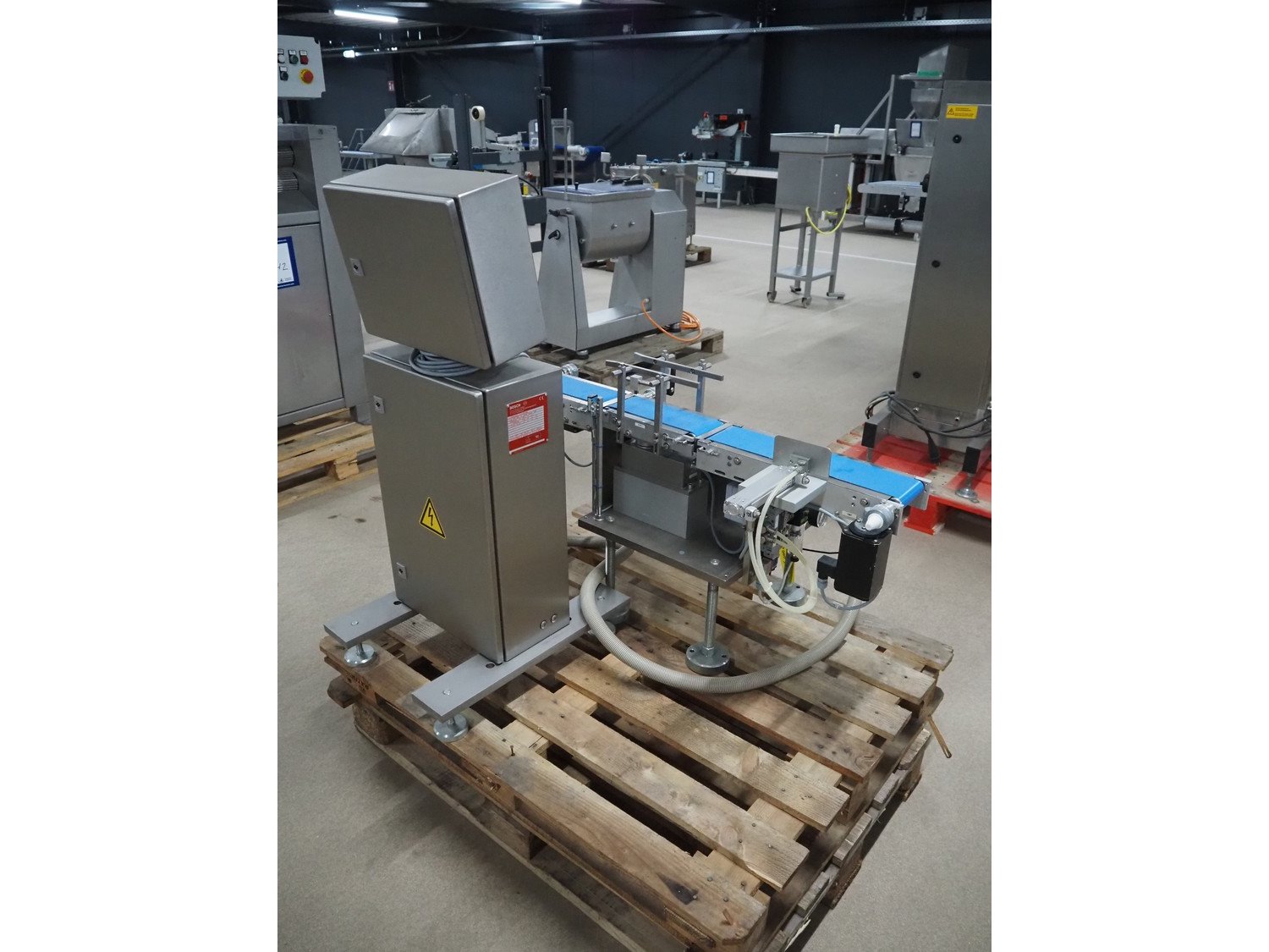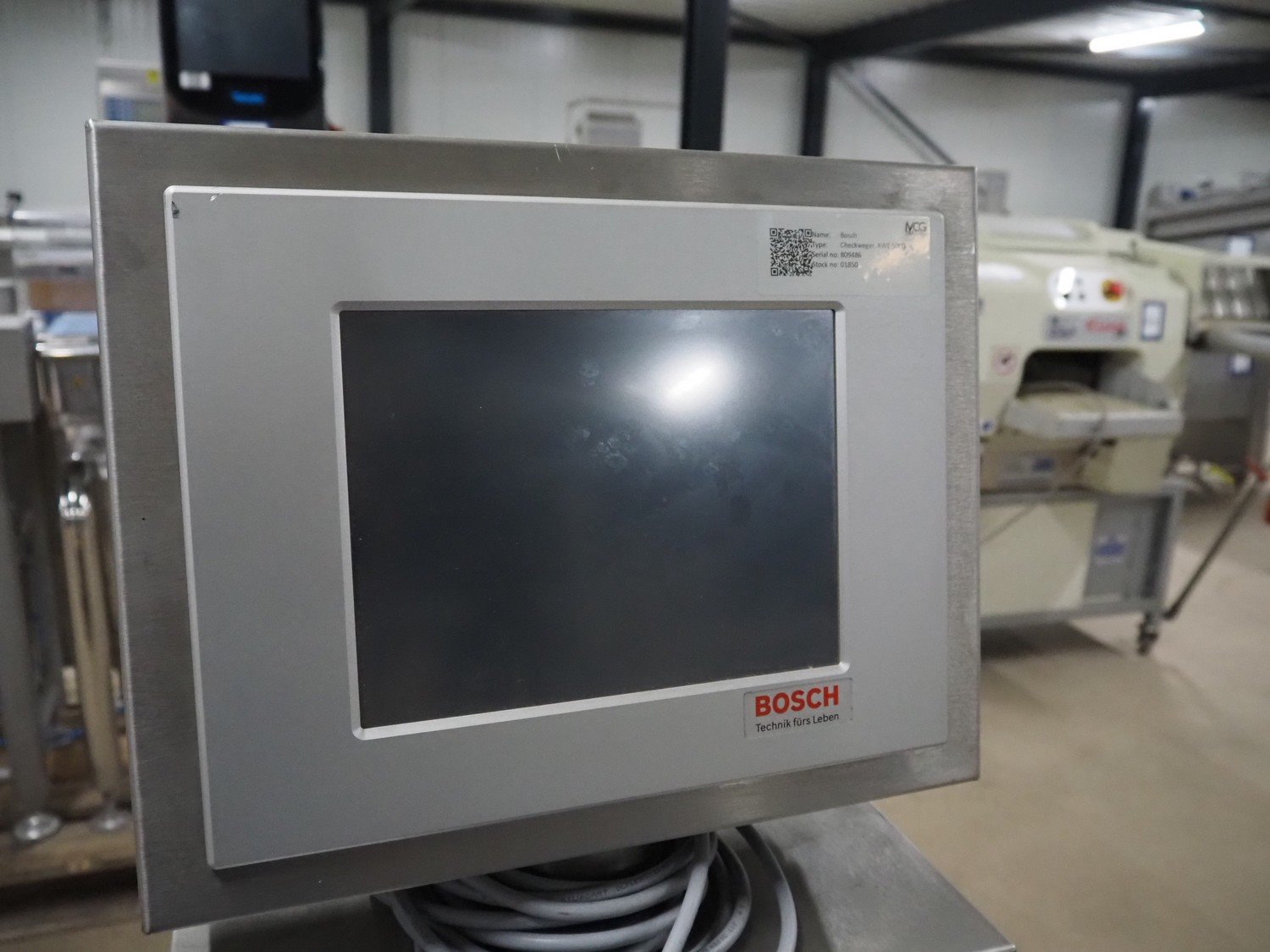 Bosch checkweigher with rejector, type: KWE 5000, number: 809486, year of construction: 2006, 230 V, 1 Ph, 50/60 Hz, 16/3 A, maximum capacity: 2000 g, minimum capacity: 20 g, plastic belts, belt width: 100 mm, total dimensions: 1050 mm x 1050 mm x 1050 mm. Kavel locatie: Amfoor 6, 4421 SE Kapelle, Nederland