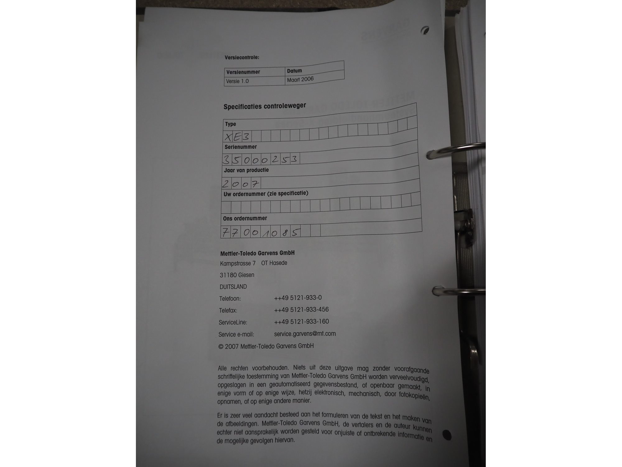 Mettler-Toledo Garvens GmbH checkweigher, type: XE 3, serial number: 35000253, year of construction: 2007, 230 V, 50 Hz, weighing range: 20-1500 gram, e=d= 1 gram, T= -1350 gram, plastic belt, belt width: 250 mm, total dimensions: 1050 mm x 700 mm x 1450 mm. Kavel locatie: Amfoor 6, 4421 SE Kapelle, Nederland