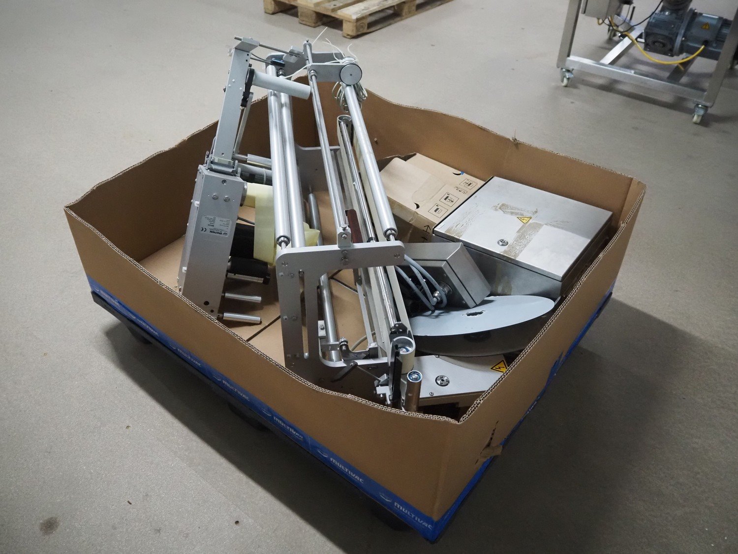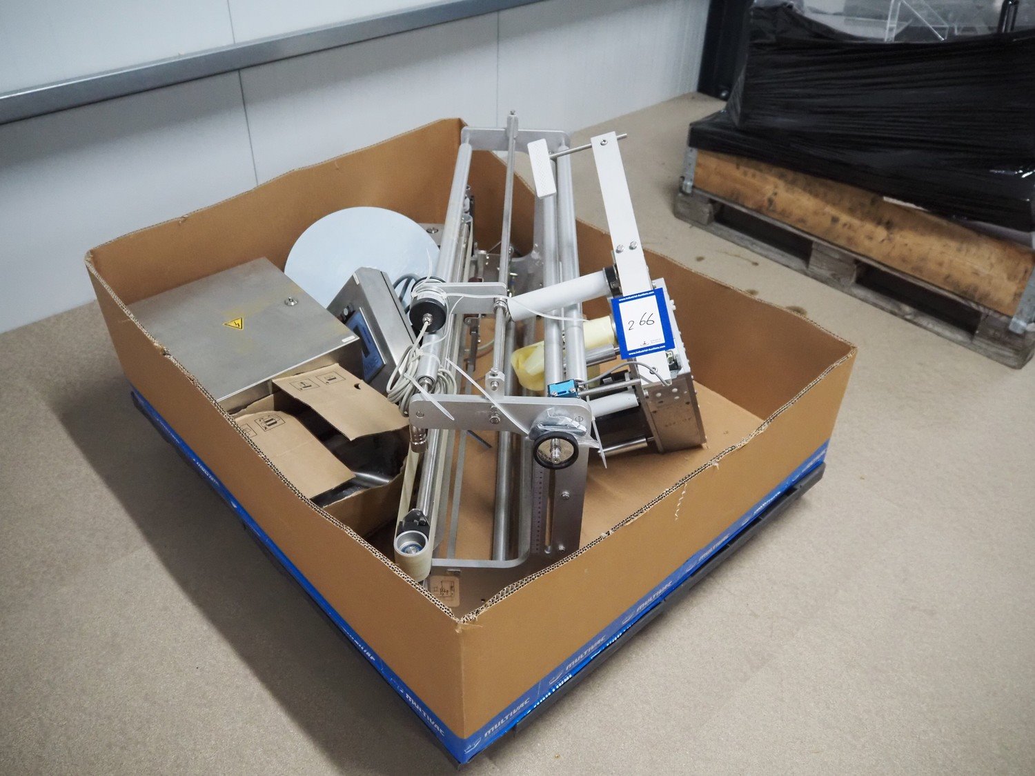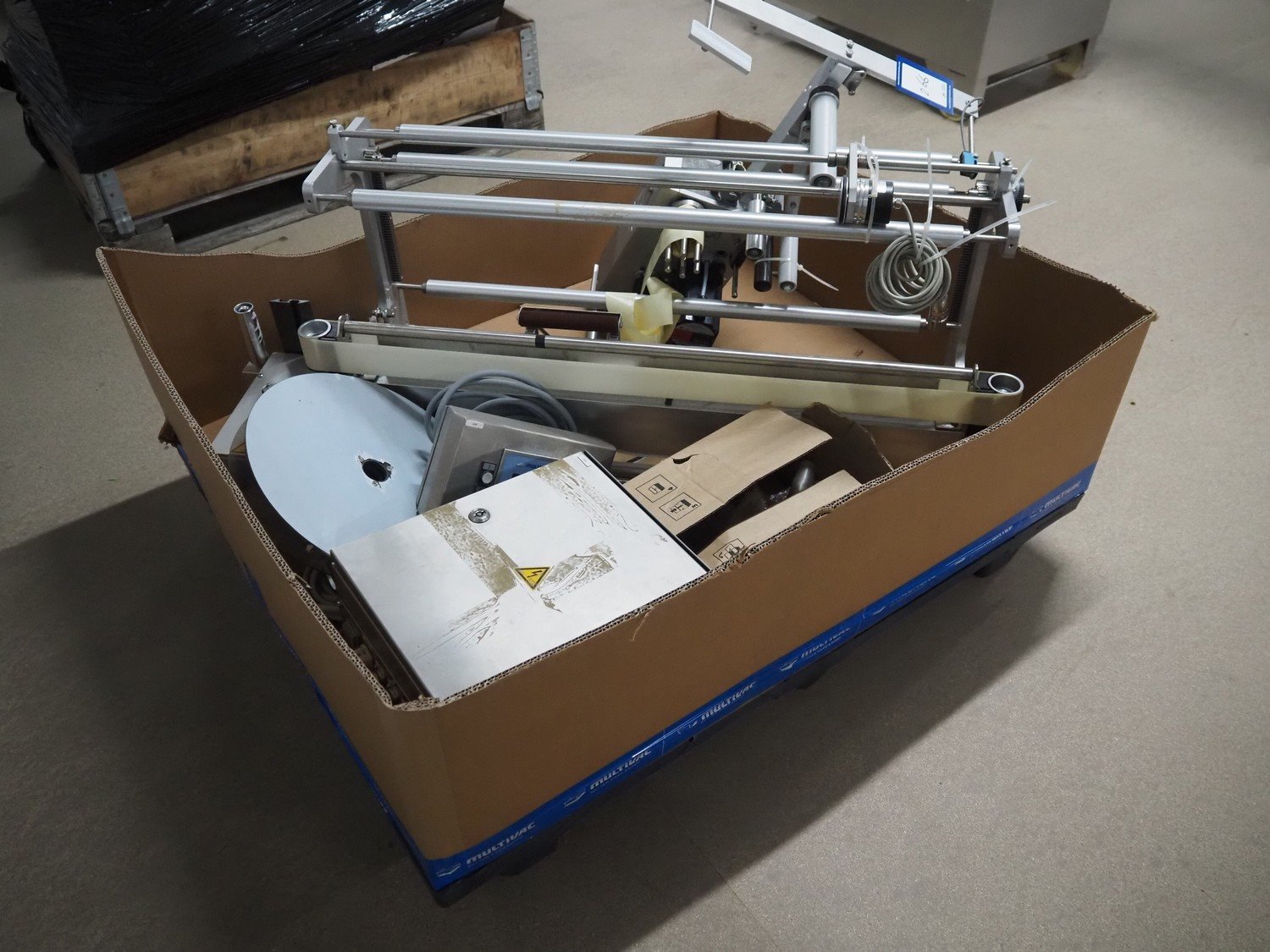 Pallet with Multivac labelling parts for thermoformer, type: MR233 & MR 4212, dimensions: 1200 mm x 1000 mm x 500 mm. Kavel locatie: Amfoor 6, 4421 SE Kapelle, Nederland