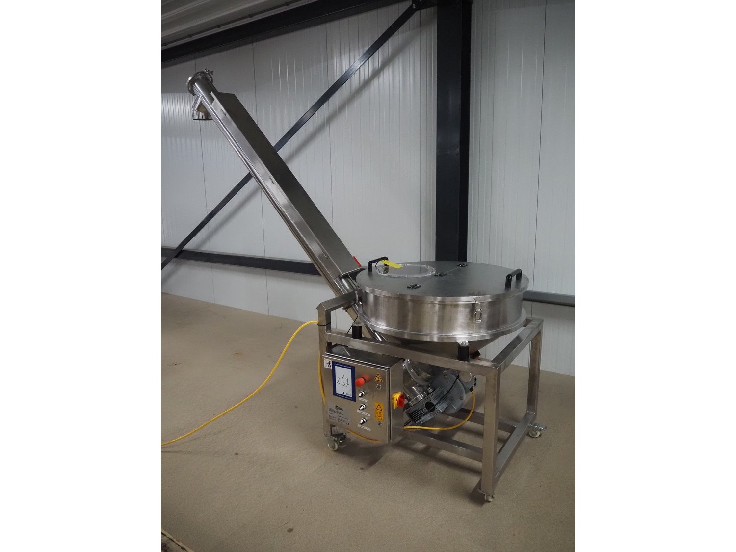 LH Packaging mobile elevating screw, type: Poederopvoer schroef, serial number: MP/18280/193340, year of construction: 2021, 400 V, 8 A, s/s screw, diameter screw: 130 mm, tier: 95 mm, elevating height: 1960 mm, total dimensions: 2380 mm x 940 mm x 2300 mm. Kavel locatie: Amfoor 6, 4421 SE Kapelle, Nederland