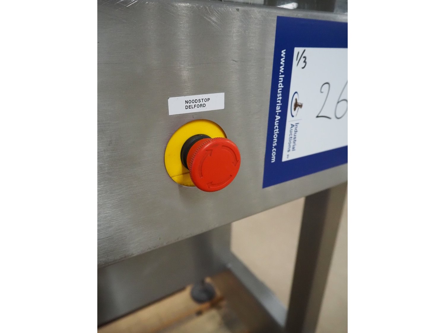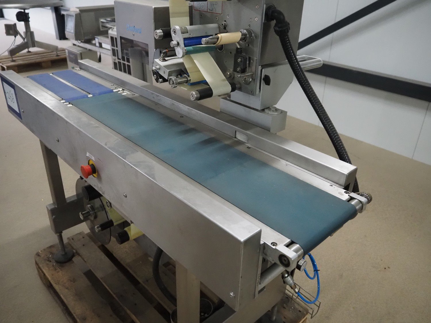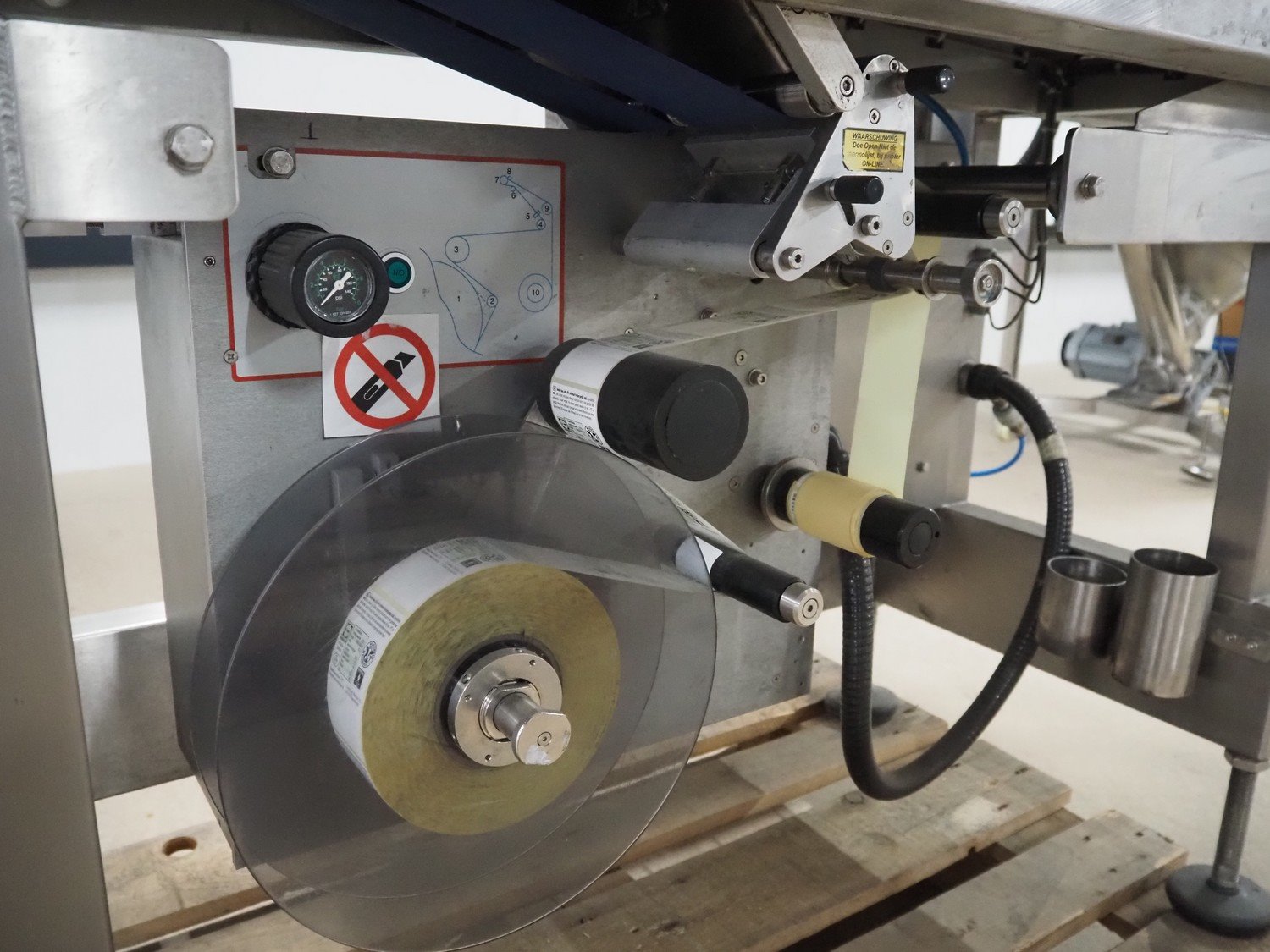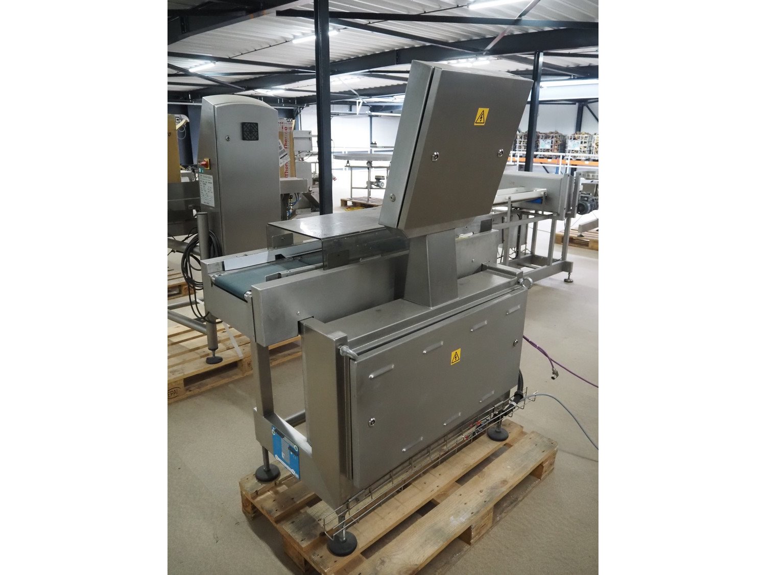 AEW Delford checkweigher with labelling machine, type checkweigher: 8060, fabrication number: 81133, year of construction: 2005, 230 V, 50 Hz, maximum weight: 1500-4000 gram, minimum weight: 20-40 gram, e =1-2 gram, T = -1000 gram, type labeller: 8000, plastic belt, belt width: (2x) 90 mm and 195 mm, dimensions checkweigher: 1500 mm x 700 mm x 1630 mm and dimensions labelling machine: 1200 mm x 700 mm x 1530 mm. Kavel locatie: Amfoor 6, 4421 SE Kapelle, Nederland