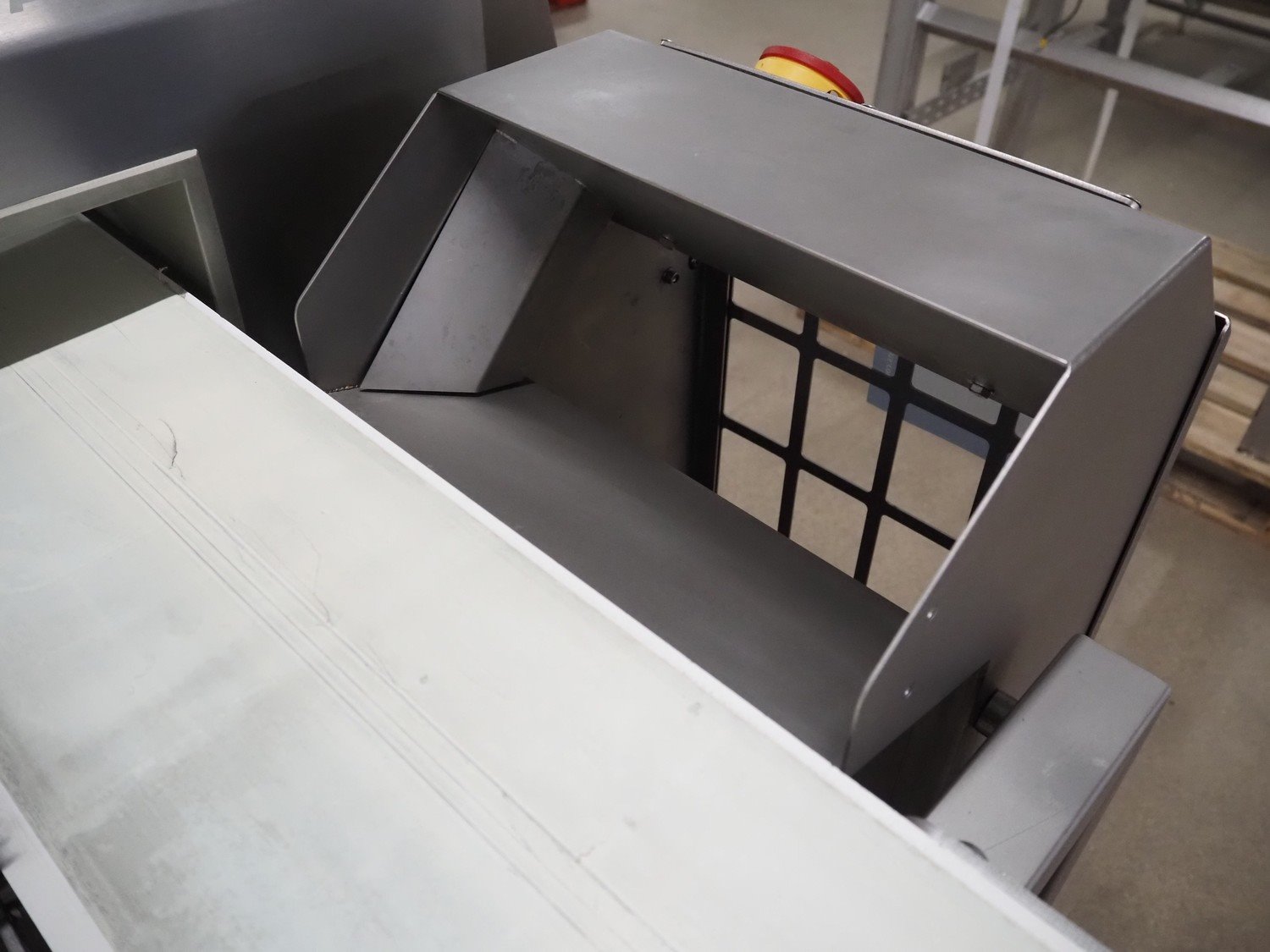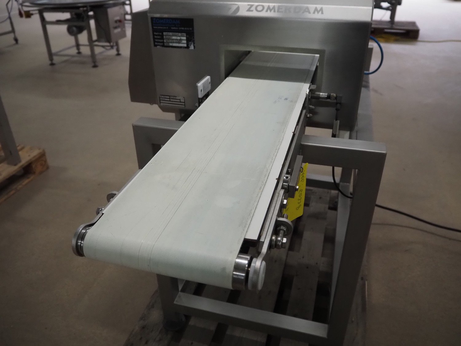 Zomerdam metal detector with rejector, serial number: 31224, 400 V, 2 A, 0.25 kW, year of construction: 2009, plastic belt, belt width: 200 mm, clearance: 250 mm x 70 mm, total dimensions: 1680 mm x 800 mm x 1050 mm. Kavel locatie: Amfoor 6, 4421 SE Kapelle, Nederland