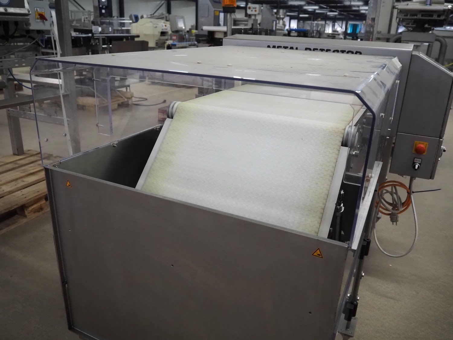 Stol Inspection systems BV metal detector with rejector belt, type: Unicon+W, serial number: 11219008971-H, year of construction: 2012, 230/115 V, 50/60 Hz, 0.75/1.5 A, plastic belt, belt width: 550 mm, clearance: 600 mm x 100 mm, total dimensions: 1700 mm x 1100 mm x 1380 mm. Kavel locatie: Amfoor 6, 4421 SE Kapelle, Nederland