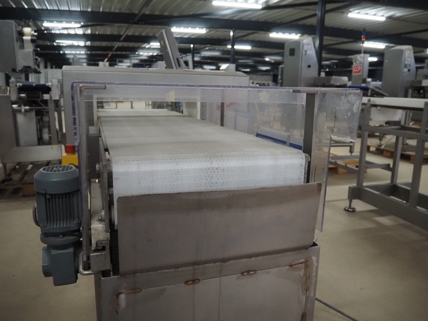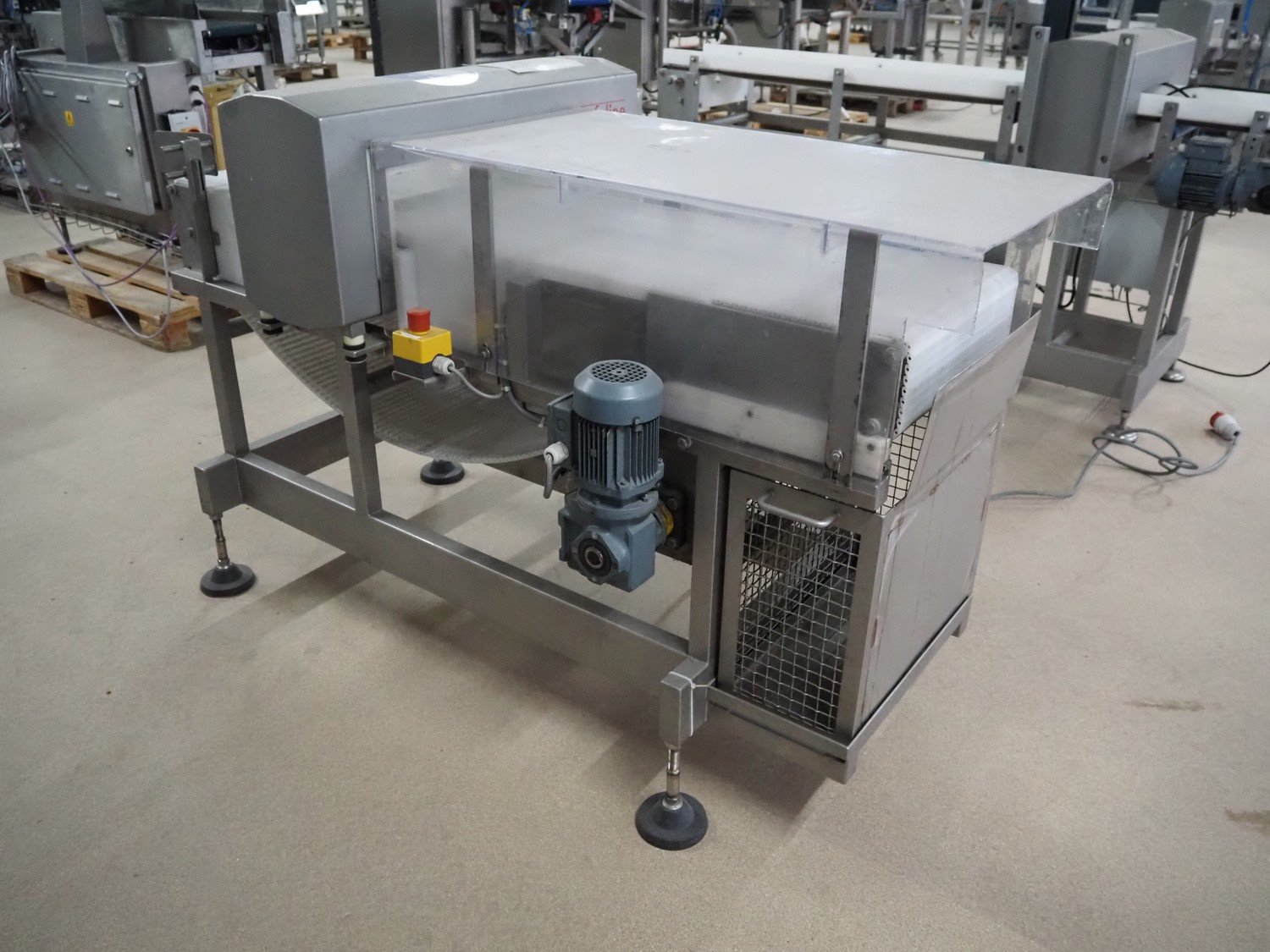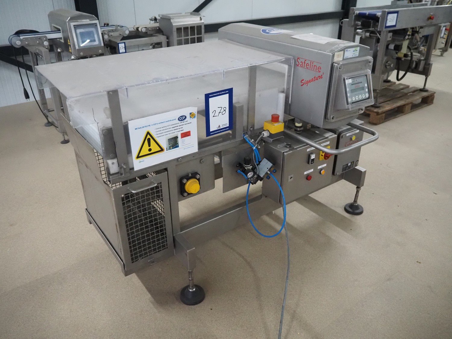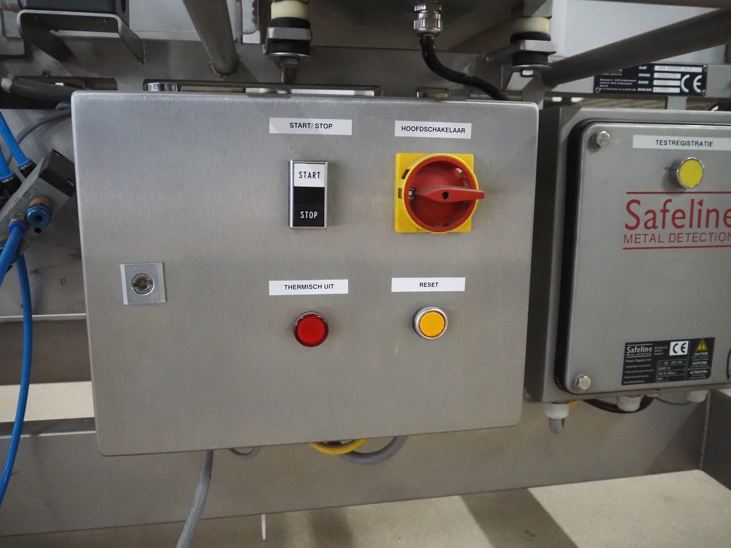 Safeline metal detector, serial number: 41262, year of construction: 4/2000, 100-240 Vac, 50/60 Hz, 330 W, plastic belt, belt width: 430 mm, clearance: 450 mm x 95 mm, total dimensions: 1750 mm x 1050 mm x 1130 mm. Kavel locatie: Amfoor 6, 4421 SE Kapelle, Nederland