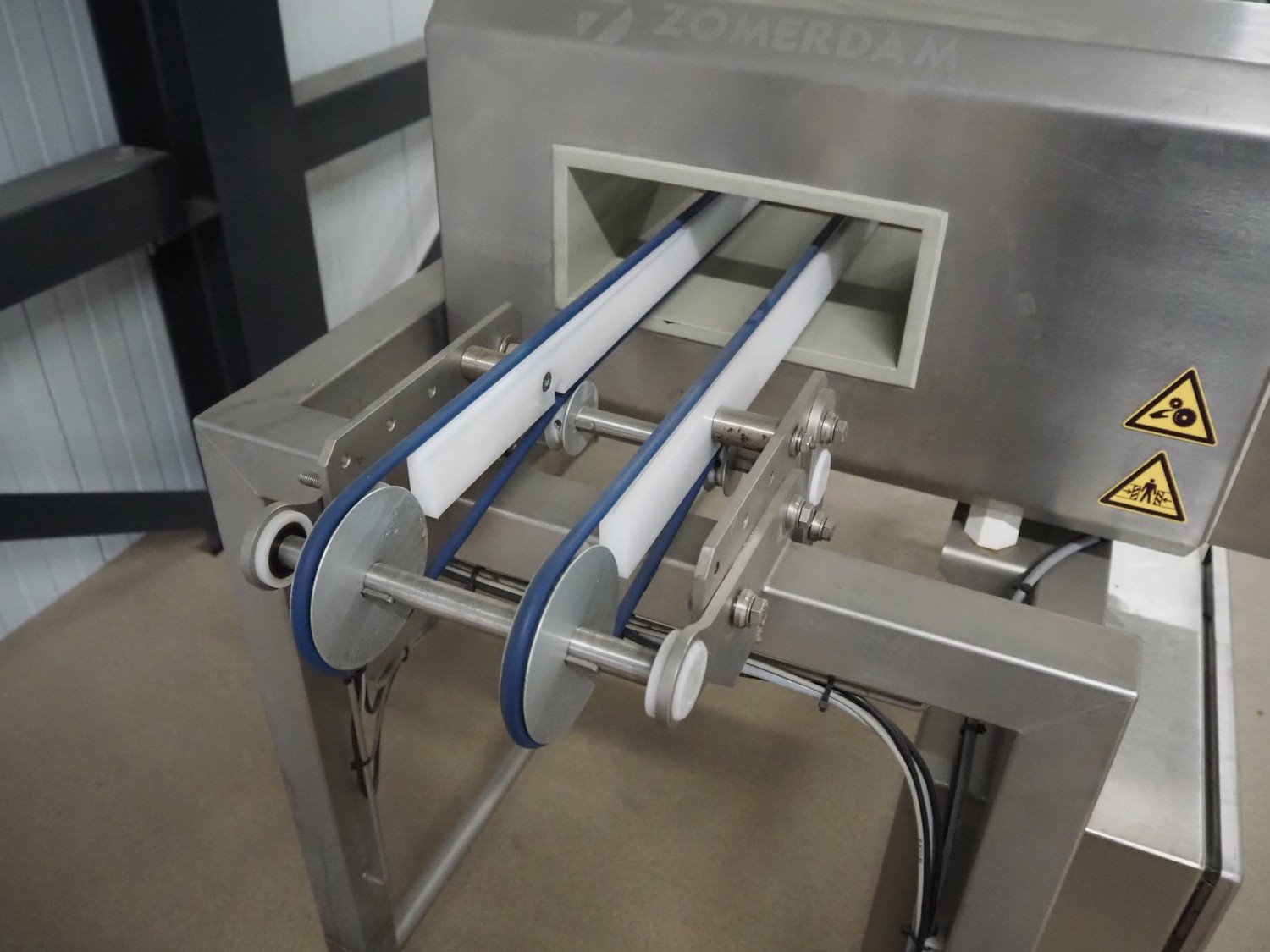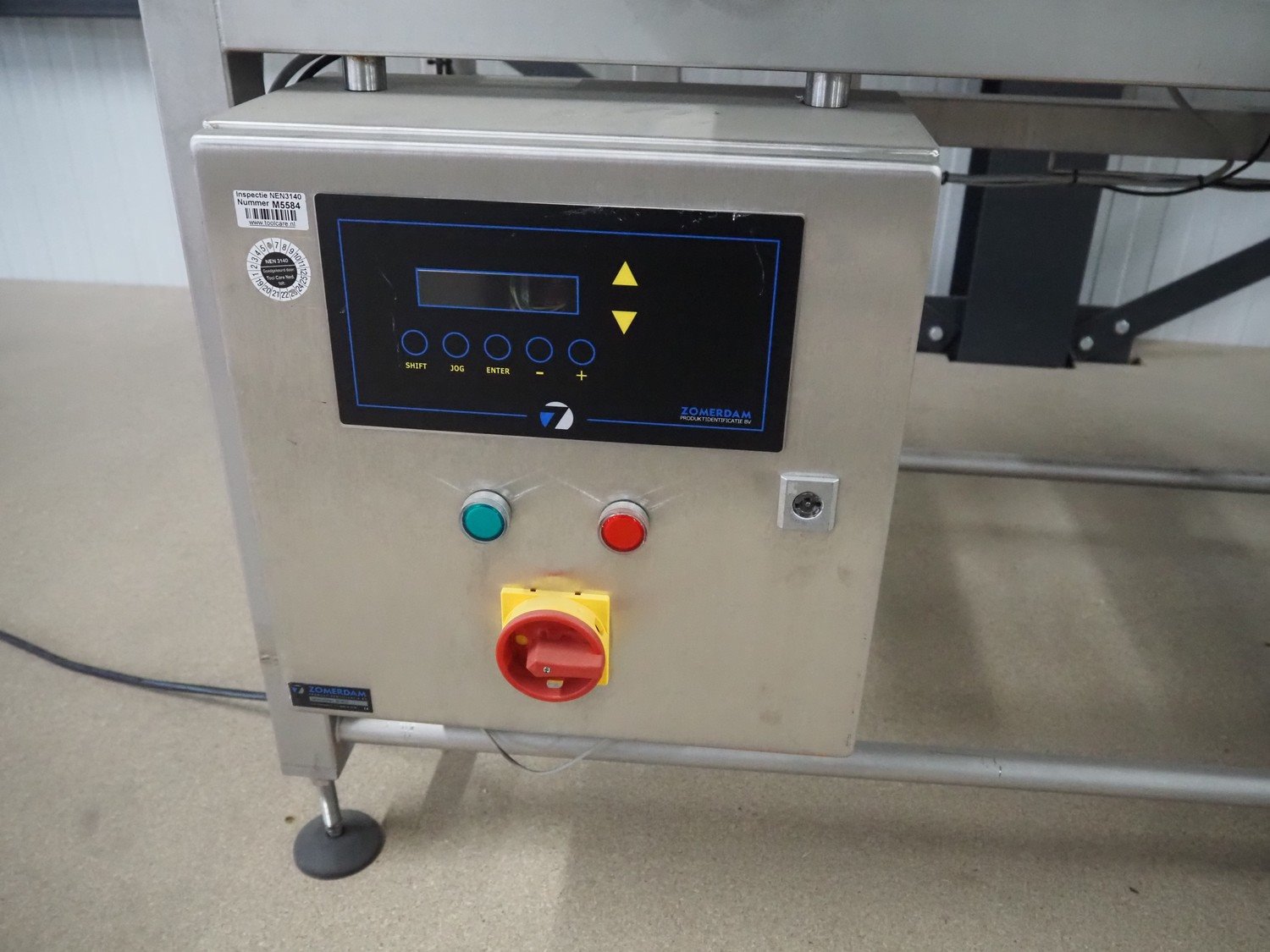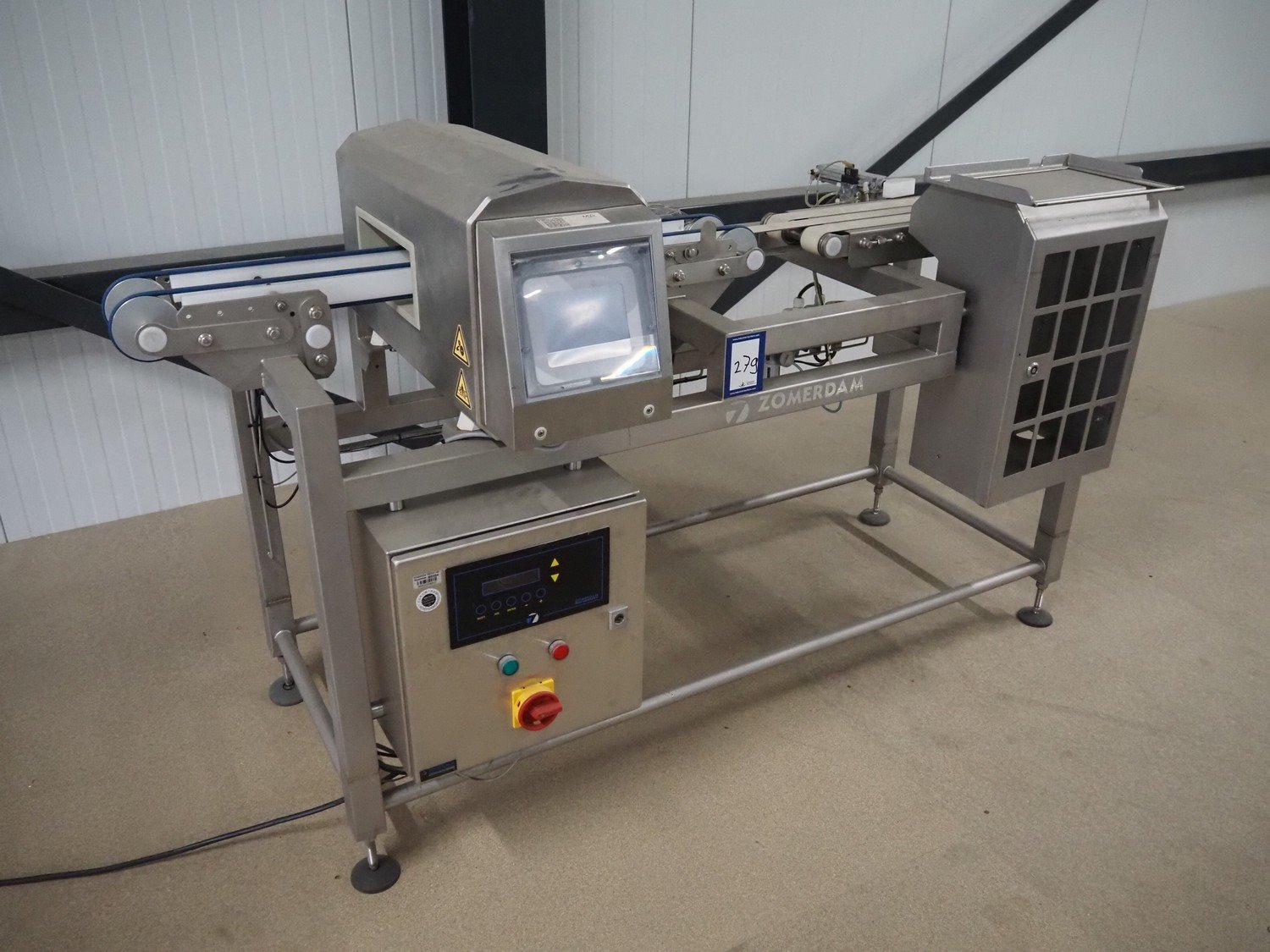 Zomerdam metal detector with rejector, type: MN 5.1 CI 250/100, serial number: 910816-CI, year of construction: 2009, 100/240 V, 50/60 Hz, 50/300 mA, string belt and plastic belt, belt width: 265 mm, clearance: 500 mm x 107 mm, total dimensions: 850 mm x 1850 mm x 1100 mm. Kavel locatie: Amfoor 6, 4421 SE Kapelle, Nederland