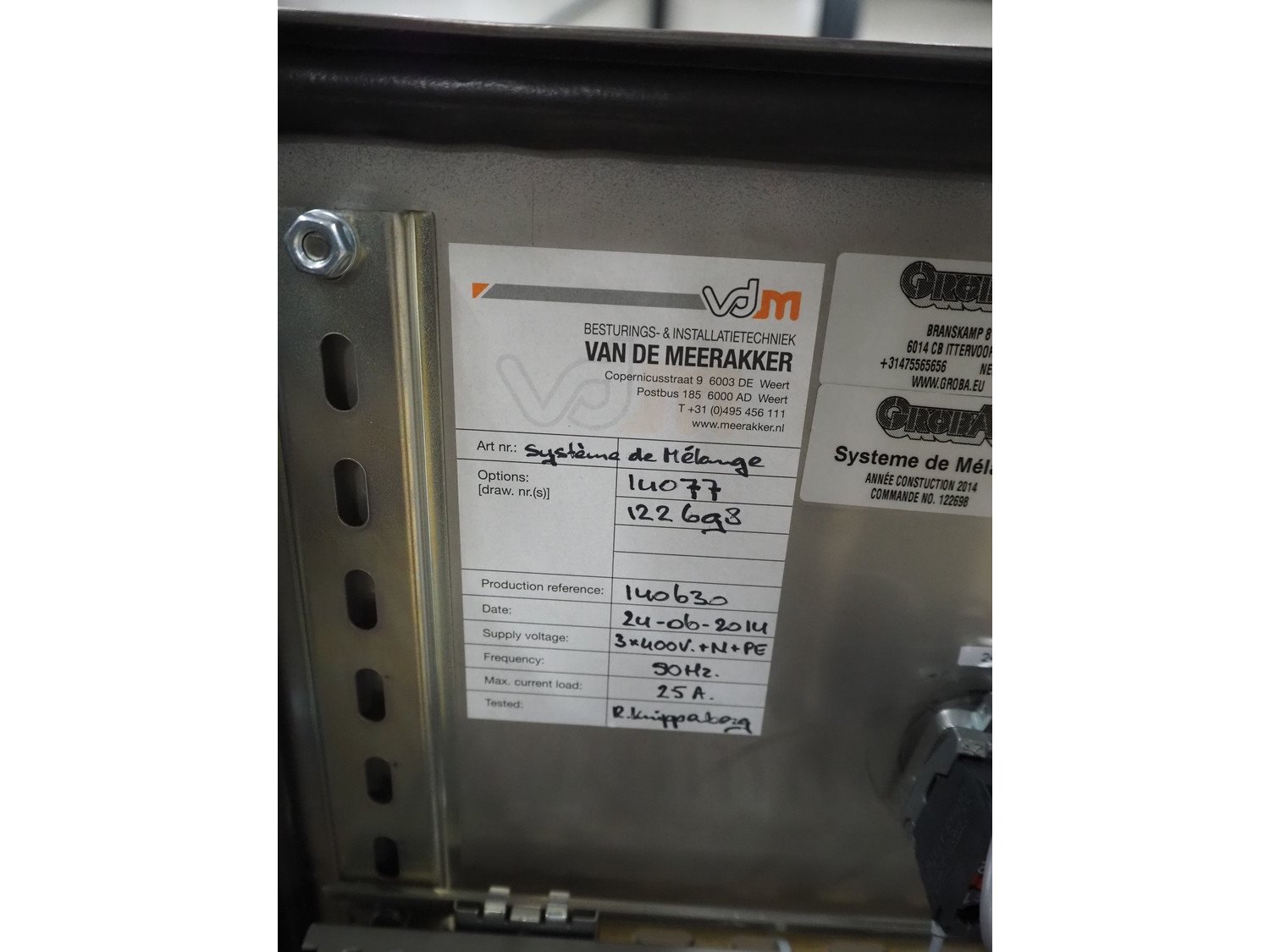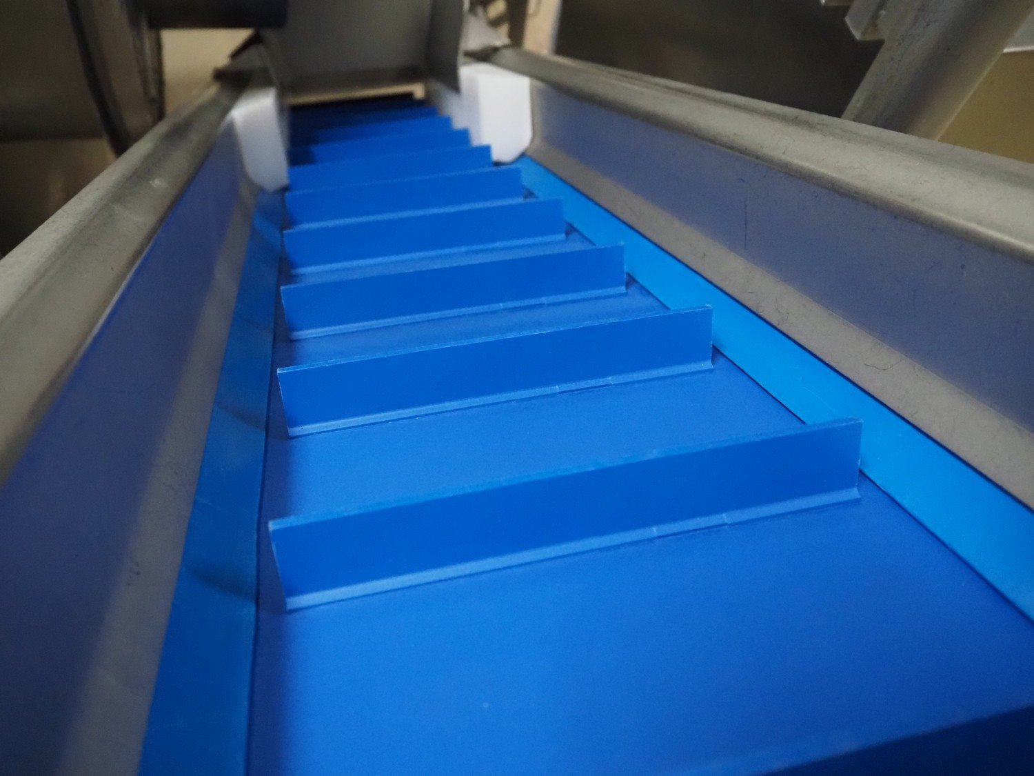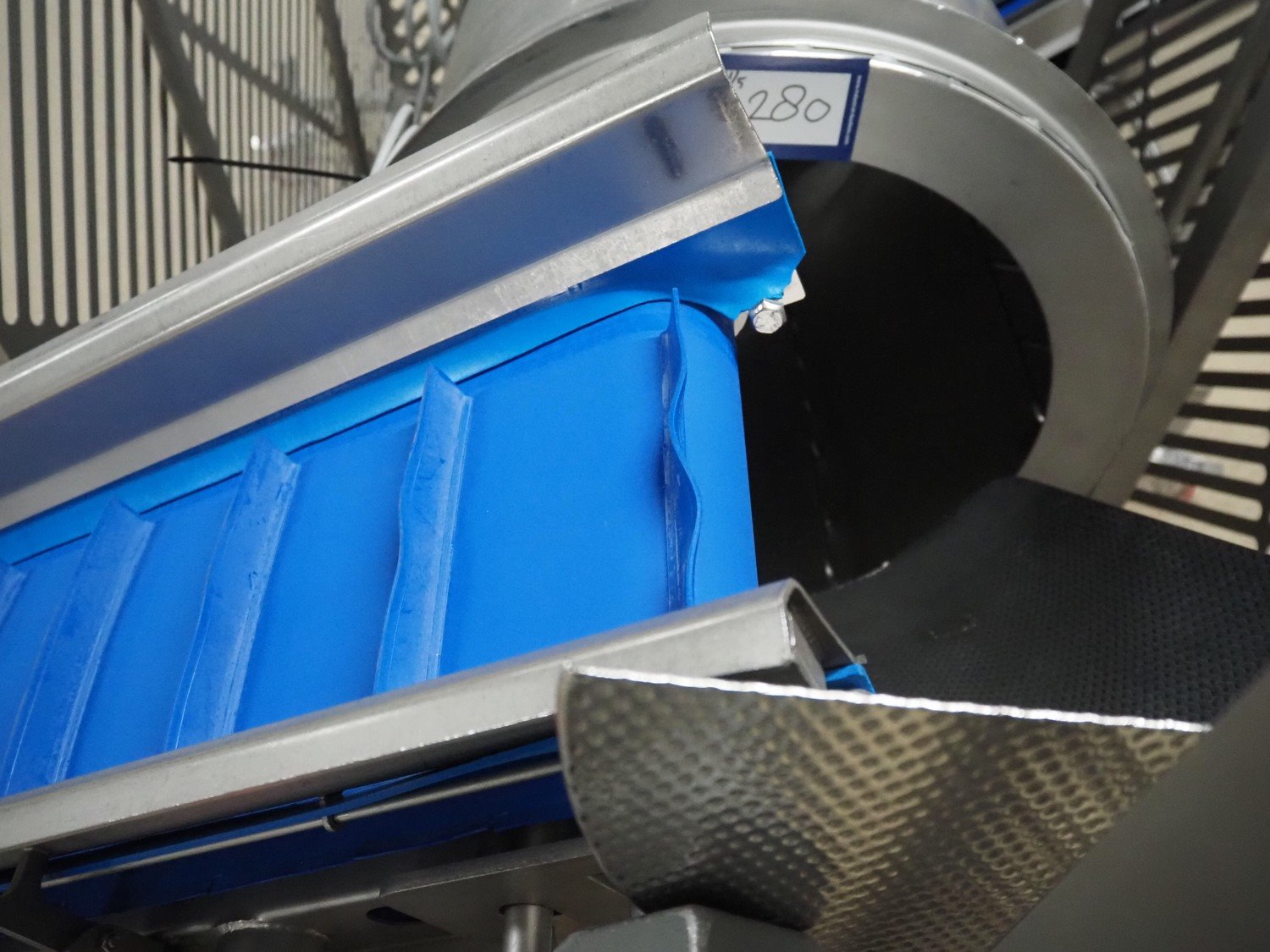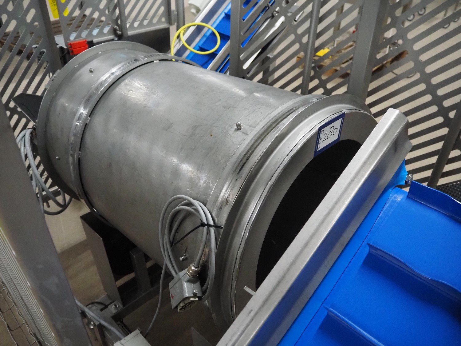 Groba cheese cube distributor with infeed and outfeed belt: Infeed elevating belt, type: TB-304,L=1600-29°, number: 122698, year of construction: 2014, weight: 115 kg, plastic belt with dividers, belt width: 250 mm, dividers height: 35 mm, distance between dividers: 120 mm, elevating height: 1130 mm, elevating belt dimensions: 1470 mm x 670 mm x 1250 mm.Cube distributor, type: PM-625, number: 122698, year of construction: 2014, weight: 215 kg, infeed: Ø 485 mm, outfeed: Ø 400 mm, drum length: 1020 mm, cube distributor dimensions: 1620 mm x 600 mm x 1290 mmOutfeed elevating belt, type: TB-304, L=1600-38,5°, number: 122698, year of construction: 2014, machine weight: 150 kg, plastic belt with dividers, belt width: 250 mm, dividers height: 35 mm, distance between dividers: 115 mm, elevating height: 1250 mm, elevating belt dimensions: 1600 mm x 750 mm x 1380 mm, total dimensions: 2740 mm x 2300 mm x 1850 mm. Kavel locatie: Amfoor 6, 4421 SE Kapelle, Nederland
