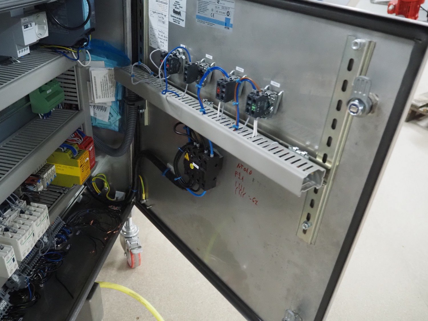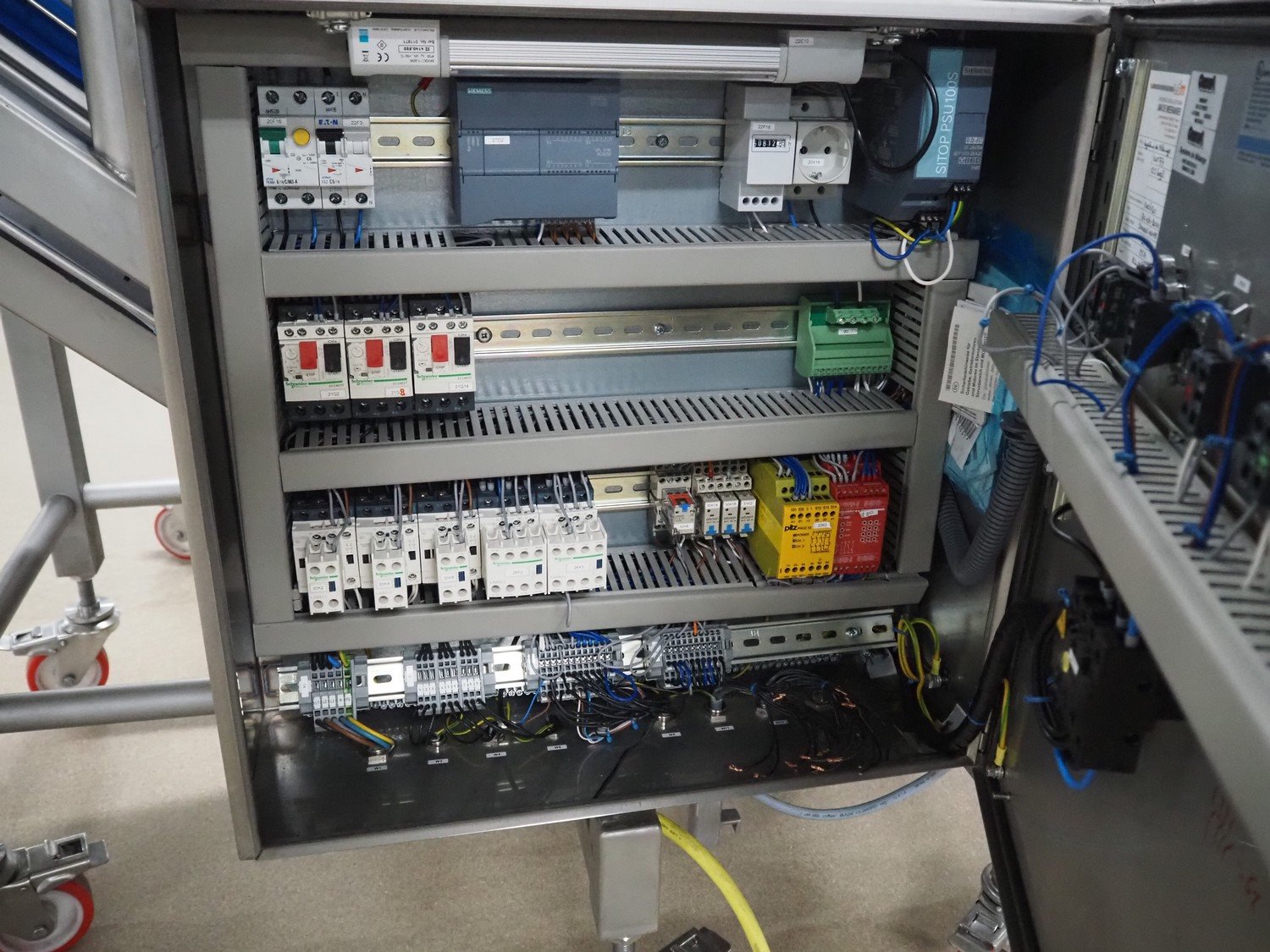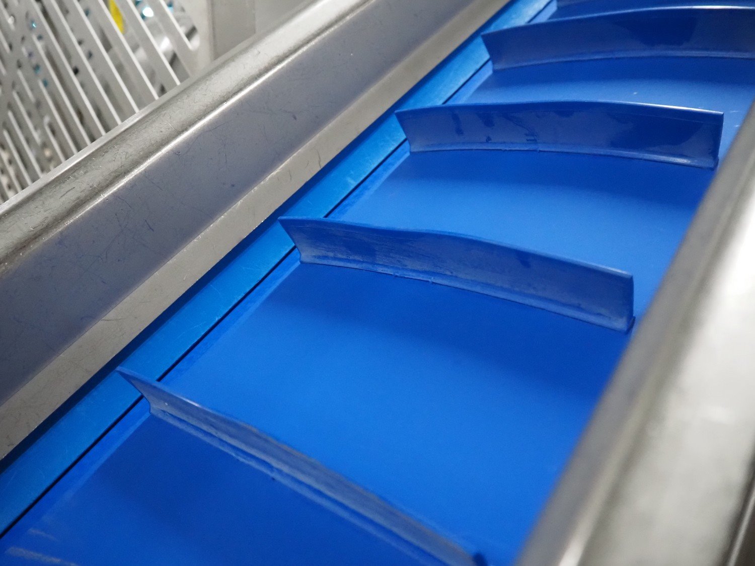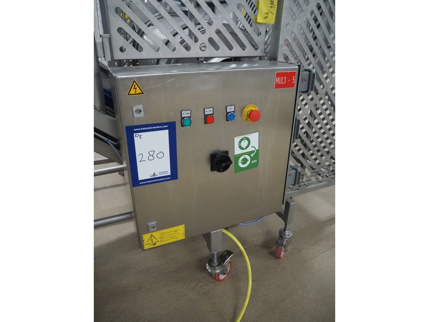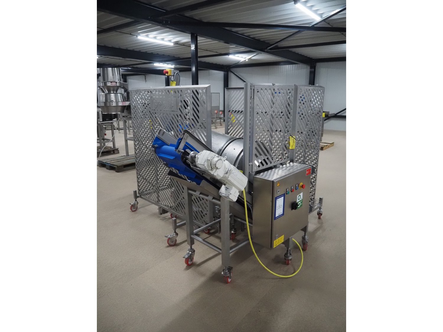 Groba cheese cube distributor with infeed and outfeed belt: Infeed elevating belt, type: TB-304,L=1600-29°, number: 122698, year of construction: 2014, weight: 115 kg, plastic belt with dividers, belt width: 250 mm, dividers height: 35 mm, distance between dividers: 120 mm, elevating height: 1130 mm, elevating belt dimensions: 1470 mm x 670 mm x 1250 mm.Cube distributor, type: PM-625, number: 122698, year of construction: 2014, weight: 215 kg, infeed: Ø 485 mm, outfeed: Ø 400 mm, drum length: 1020 mm, cube distributor dimensions: 1620 mm x 600 mm x 1290 mmOutfeed elevating belt, type: TB-304, L=1600-38,5°, number: 122698, year of construction: 2014, machine weight: 150 kg, plastic belt with dividers, belt width: 250 mm, dividers height: 35 mm, distance between dividers: 115 mm, elevating height: 1250 mm, elevating belt dimensions: 1600 mm x 750 mm x 1380 mm, total dimensions: 2740 mm x 2300 mm x 1850 mm. Kavel locatie: Amfoor 6, 4421 SE Kapelle, Nederland