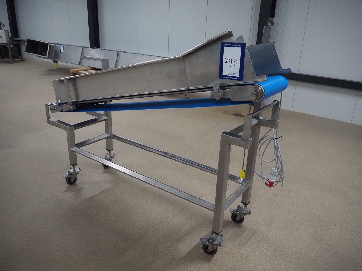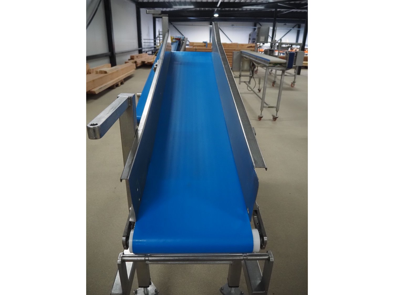 Mobile elevating belt, s/s frame, plastic belt, belt width: 375 mm, elevating height: 1160 mm, total dimensions: 2050 mm x 550 mm x 1510 mm. Kavel locatie: Amfoor 6, 4421 SE Kapelle, Nederland