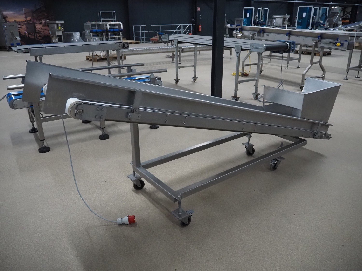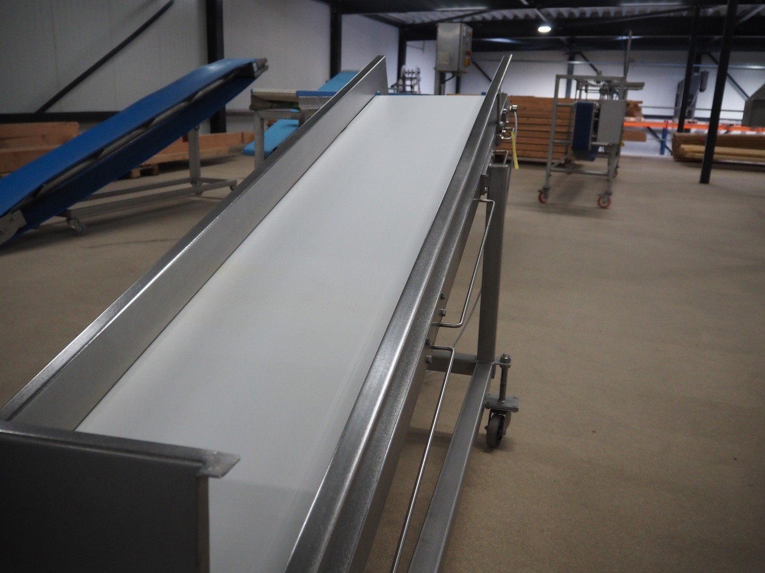 Mobile elevating belt, s/s frame, plastic belt, belt width: 450 mm, elevating height: 1000 mm, total dimensions: 2900 mm x 700 mm x 1160 mm. Kavel locatie: Amfoor 6, 4421 SE Kapelle, Nederland