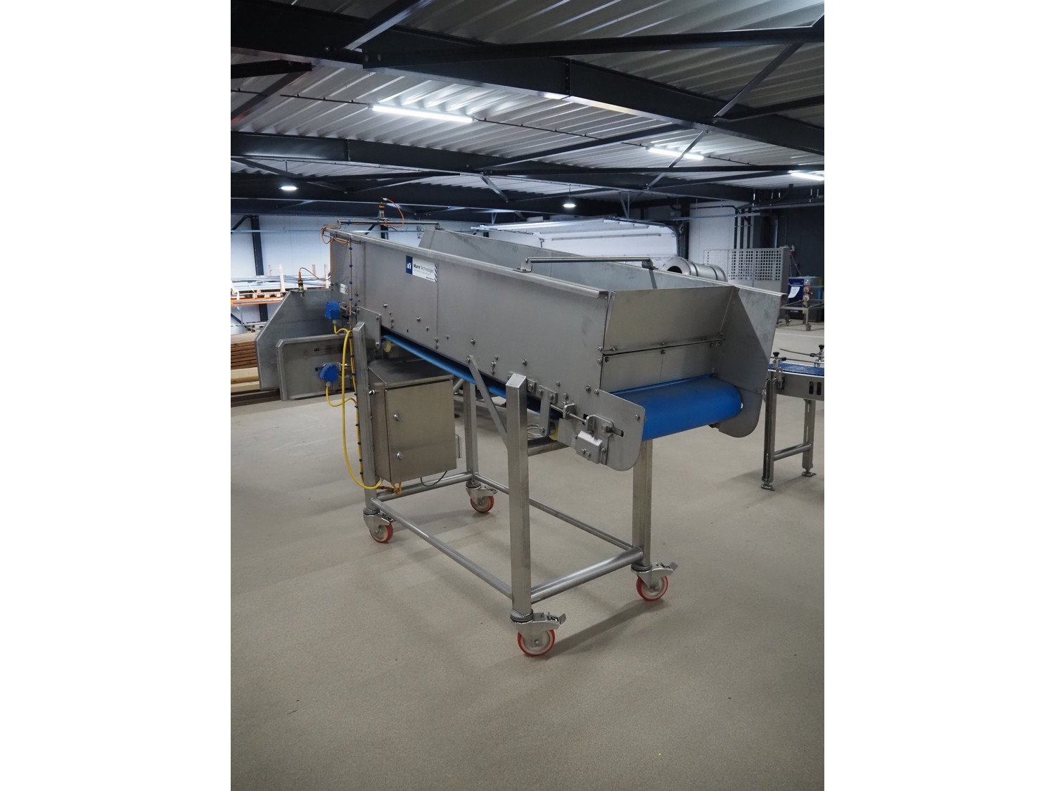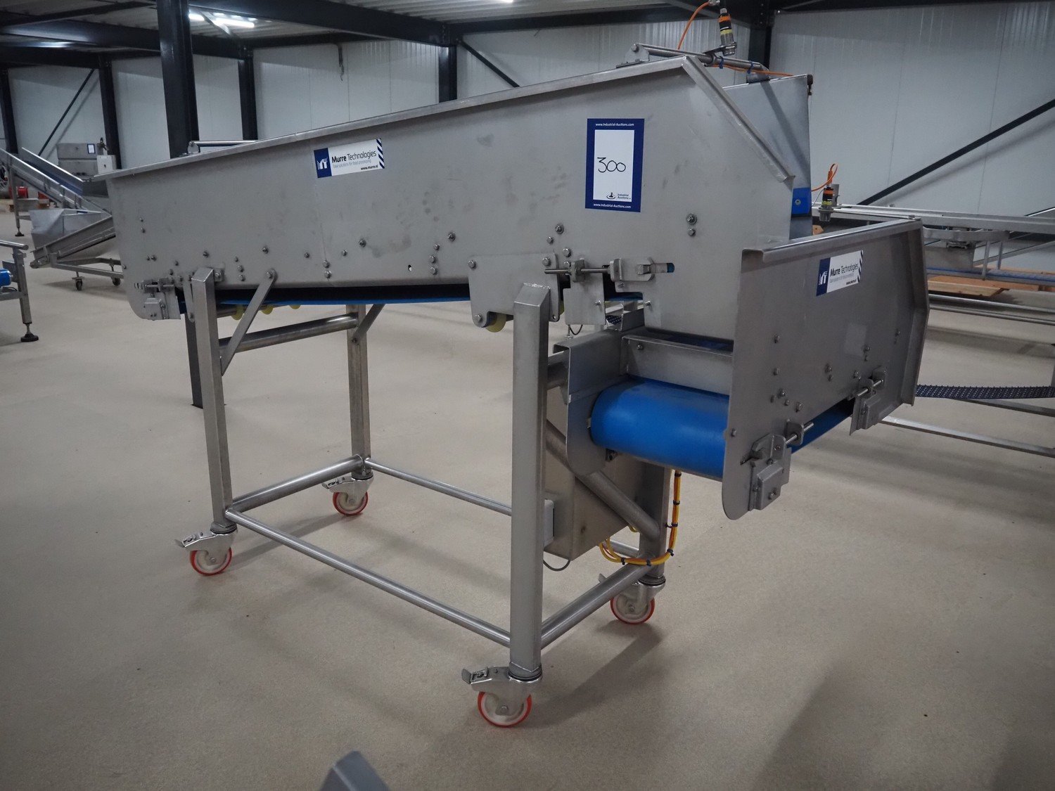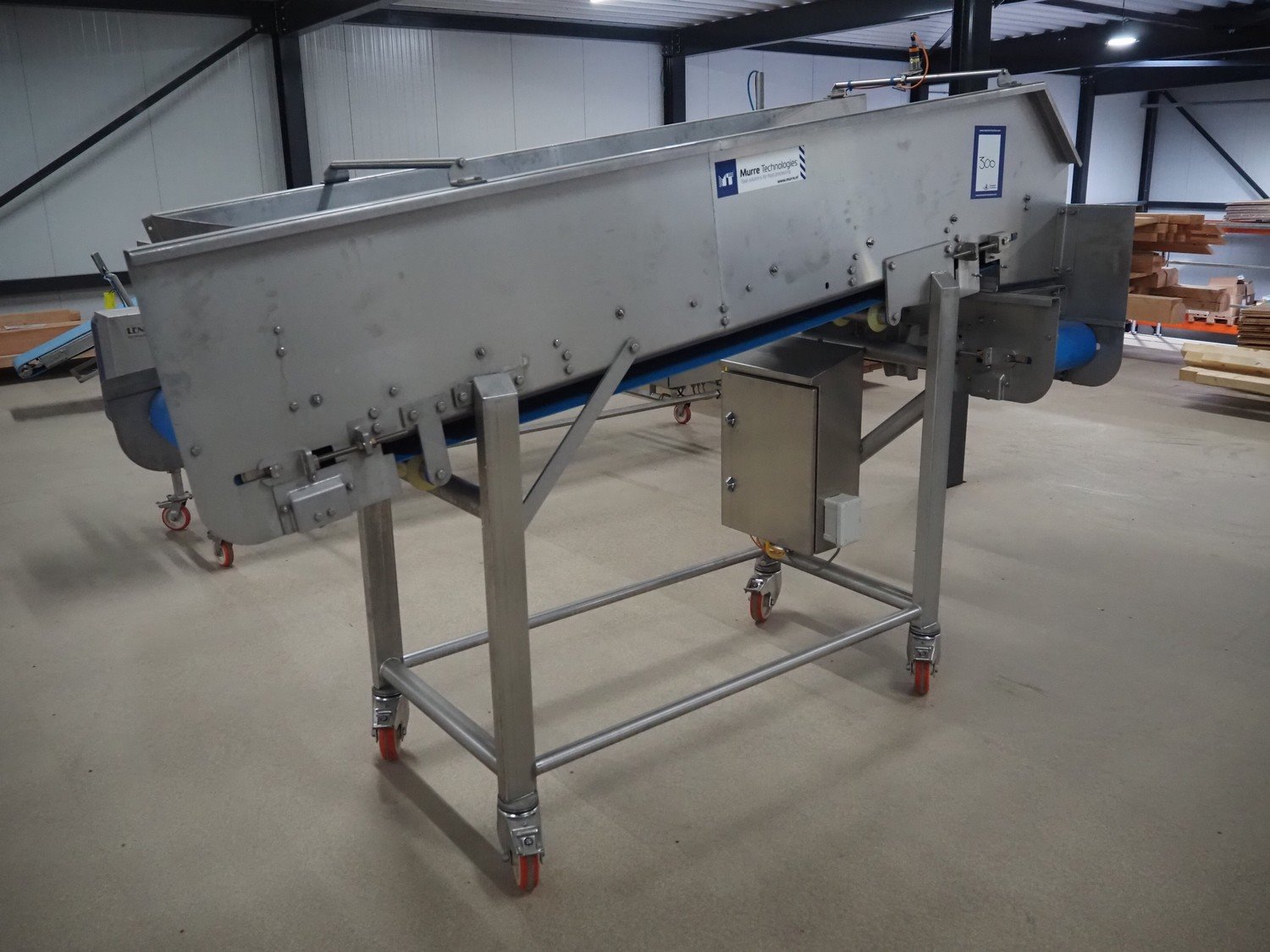 Murre Techniek b.v. mobile elevating belt, model: 162140757, year of construction: 2016, machine weight: 390 kg, plastic belt, belt width: (1x) 590 mm, (1x) 340 mm, elevating height: 1400 mm, total dimensions: 2700 mm x 1230 mm x 1900 mm. Kavel locatie: Amfoor 6, 4421 SE Kapelle, Nederland
