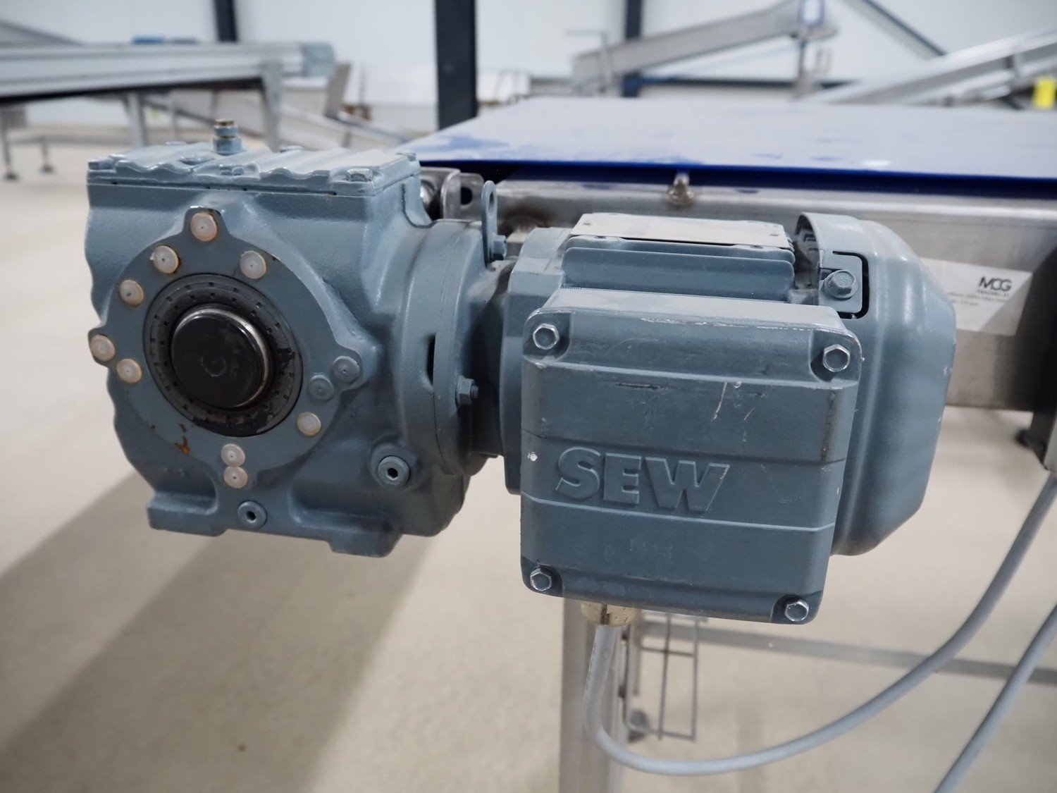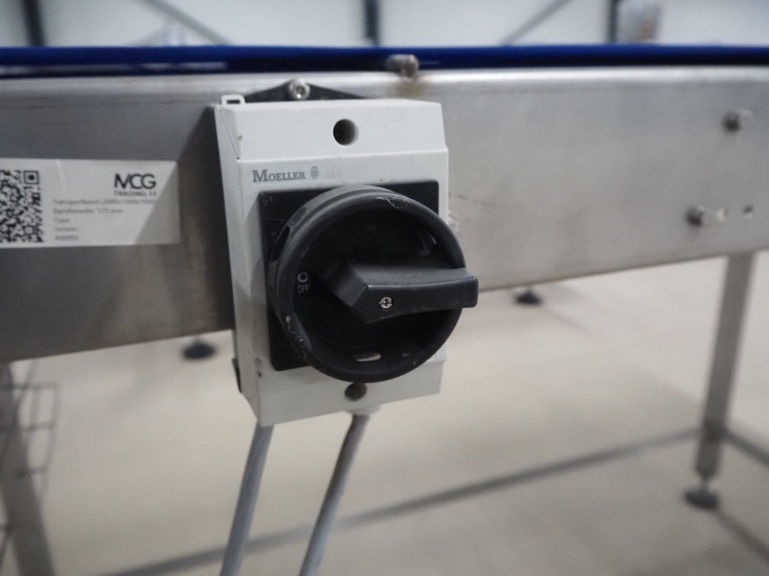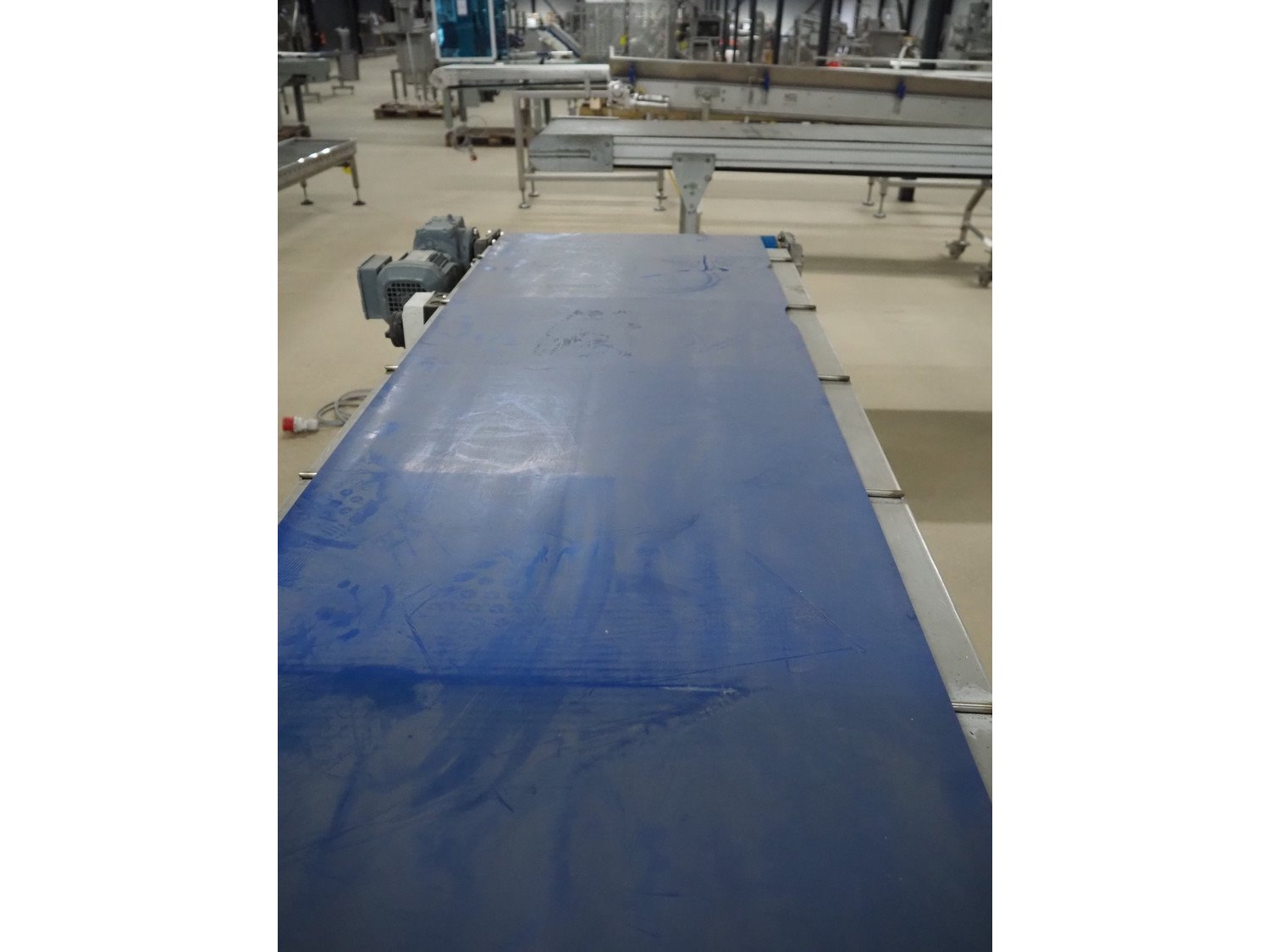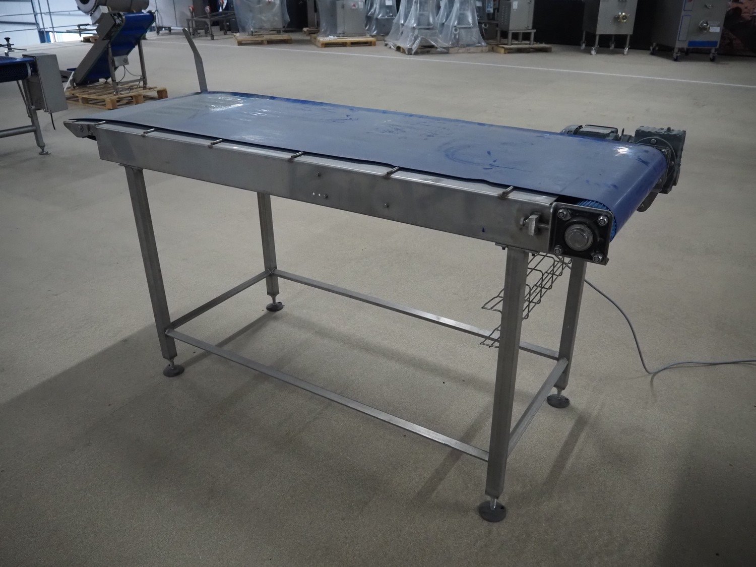 Transport belt, s/s frame, plastic belt, belt width: 570 mm, total dimensions: 2000 mm x 1000 mm x 1000 mm. Kavel locatie: Amfoor 6, 4421 SE Kapelle, Nederland