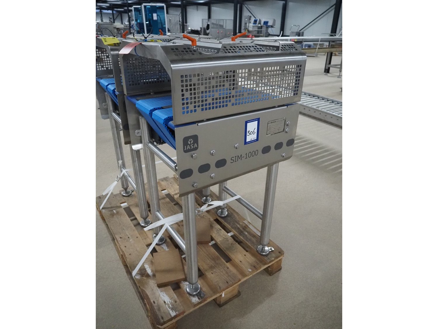 Jasa Packaging Solutions in/outfeed module, model: SIM-1000 DRAAI UNIT, machine number: 14422, year of construction: 2019, 400 V, 3 Ph, 16 A, 0.47 kW, 6 bar, plastic belts, belt width: (1x) 100 mm, (1x) 150 mm, total dimensions: 600 mm x 550 mm x 1550 mm. Kavel locatie: Amfoor 6, 4421 SE Kapelle, Nederland