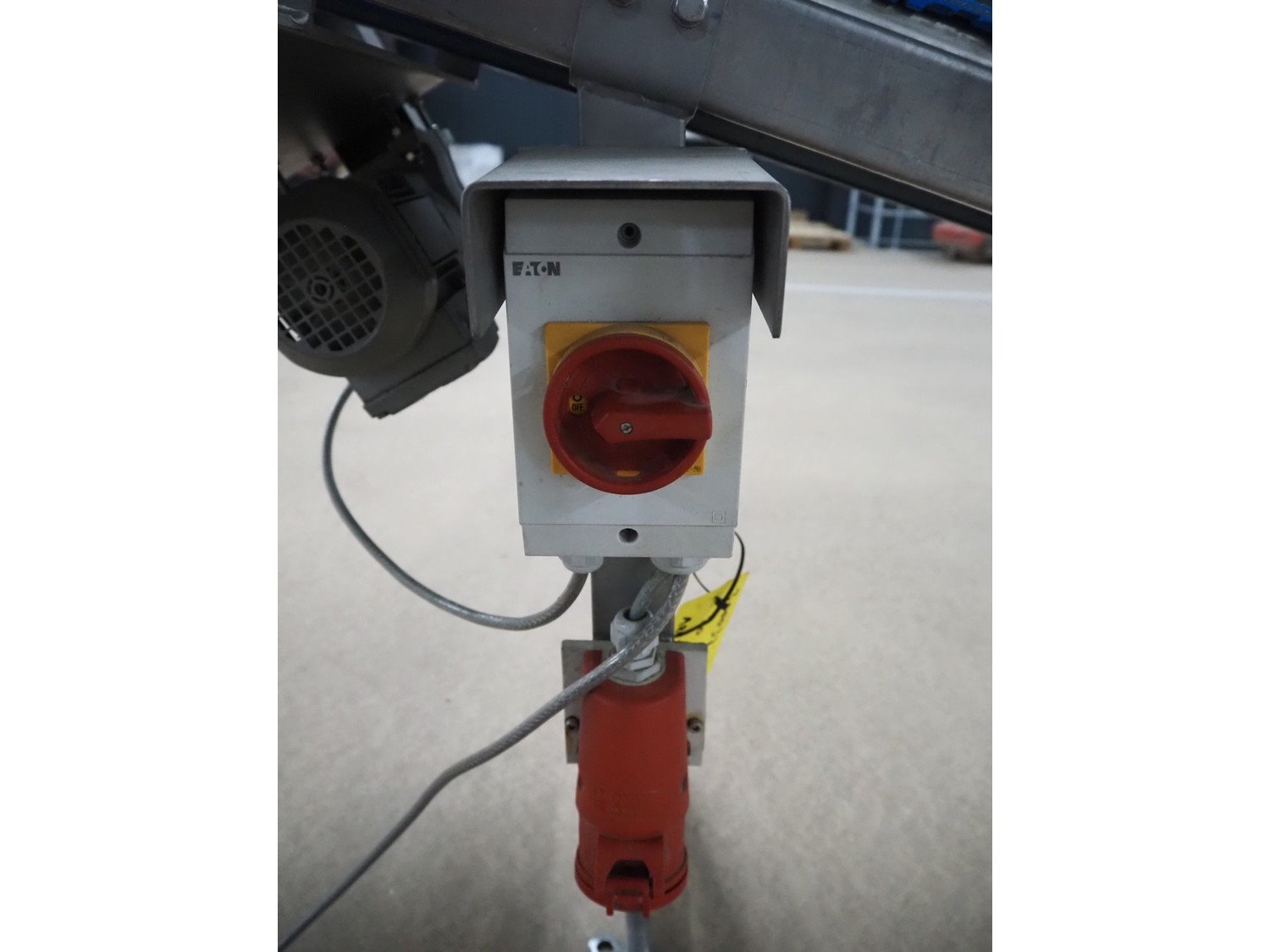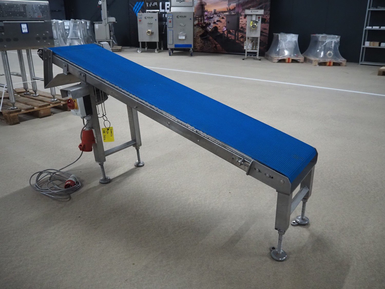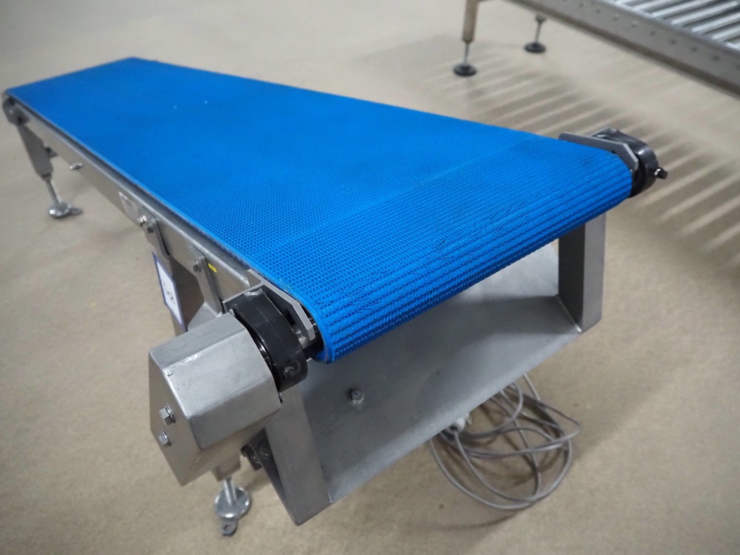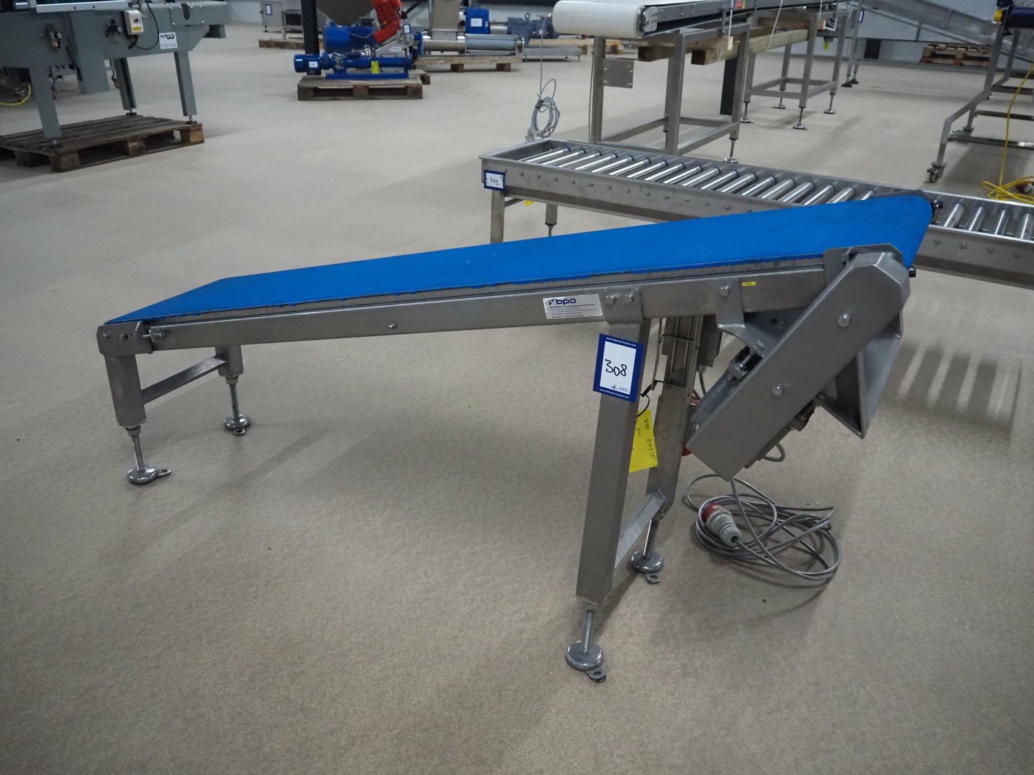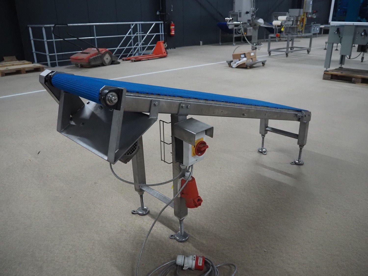Blueprint Automation elevating belt, plastic belt, belt width: 375 mm, elevating height: 900 mm, total dimensions: 1750 mm x 650 mm x 900 mm. Kavel locatie: Amfoor 6, 4421 SE Kapelle, Nederland