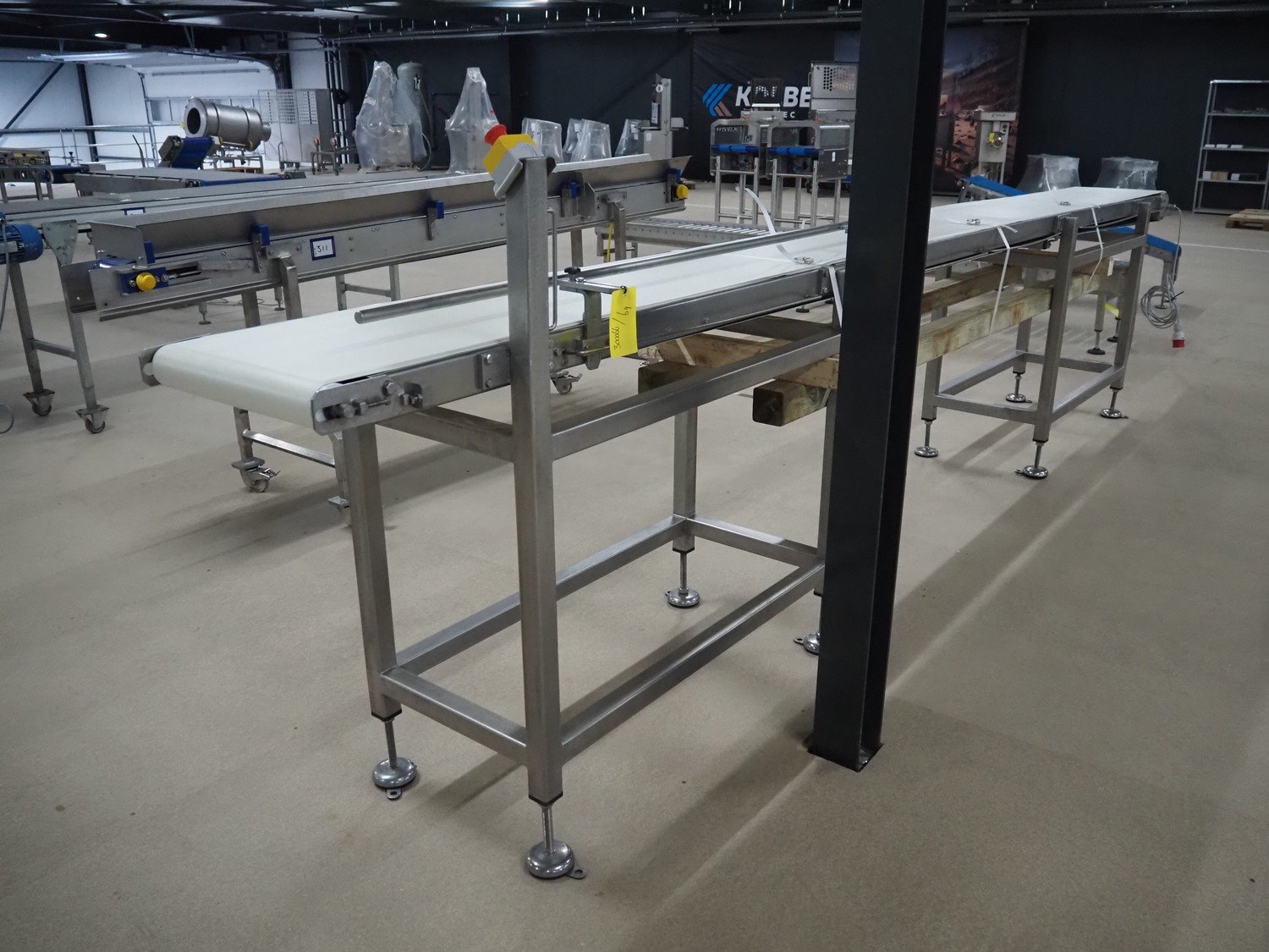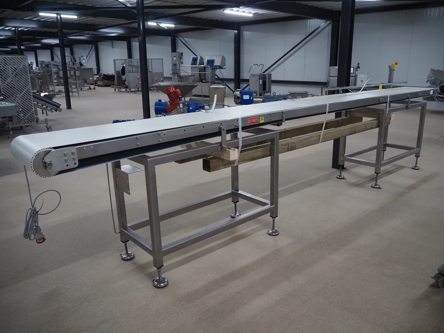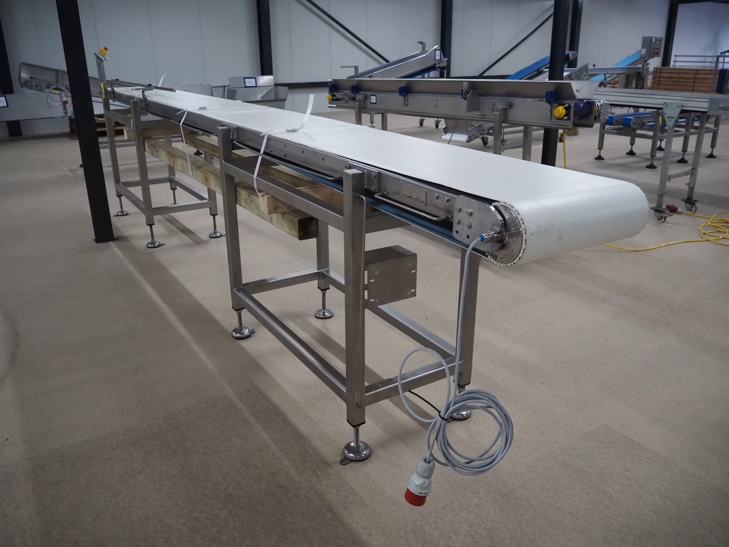 Transport belt, s/s frame, plastic belt, belt width: 440 mm, total dimensions: 5140 mm x 580 mm x 1440 mm. Kavel locatie: Amfoor 6, 4421 SE Kapelle, Nederland