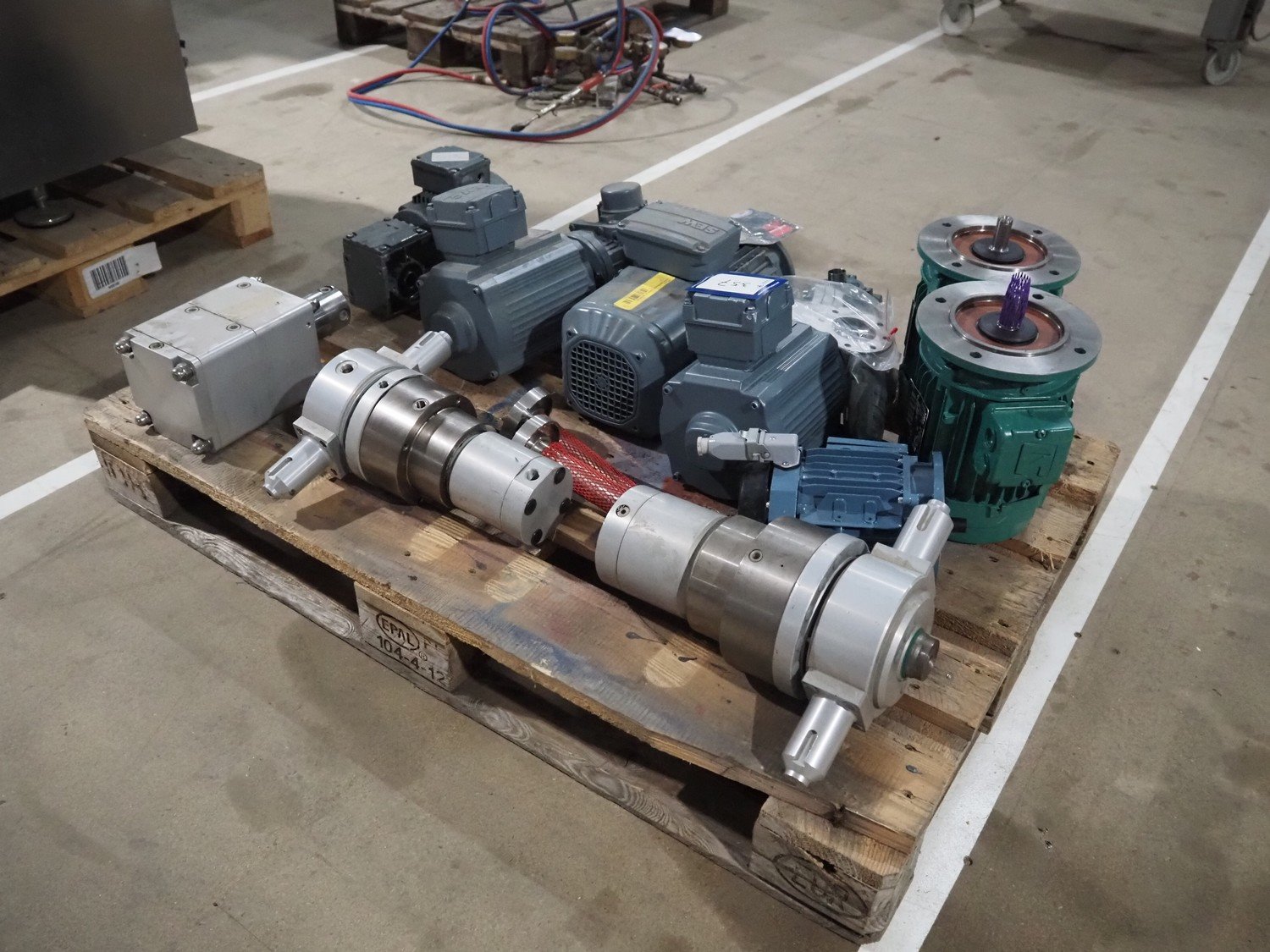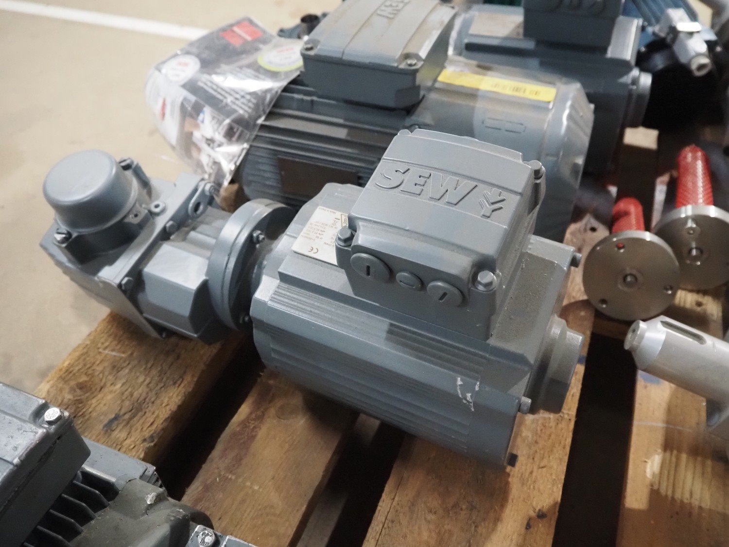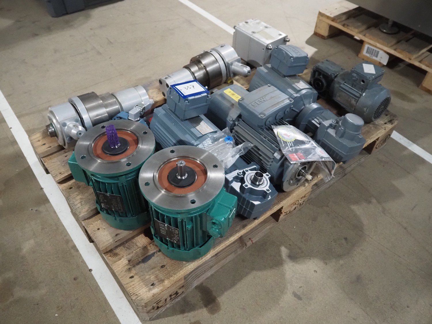 Pallet with 4 SEW electro motors and 2 Nidec electro motors. Kavel locatie: Amfoor 6, 4421 SE Kapelle, Nederland