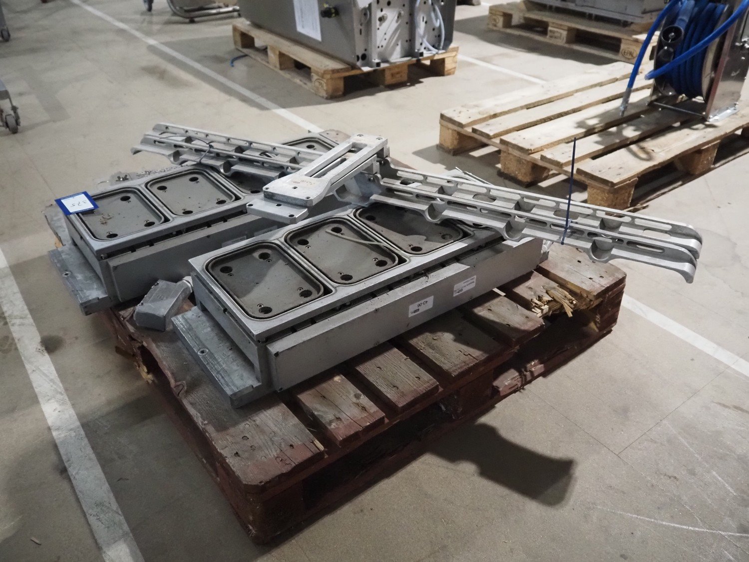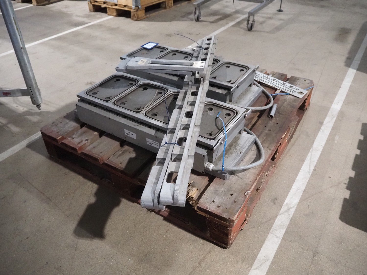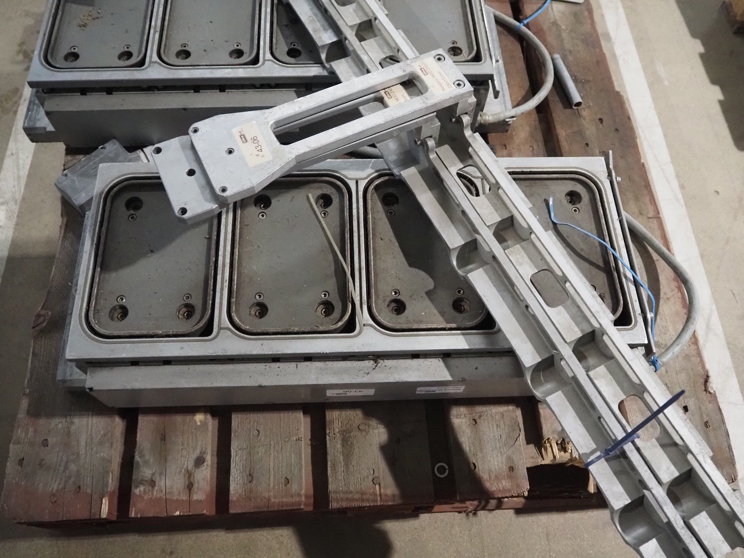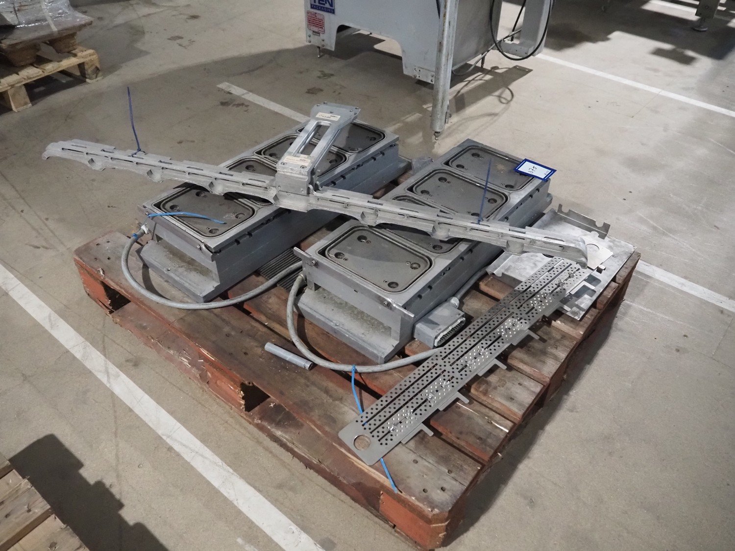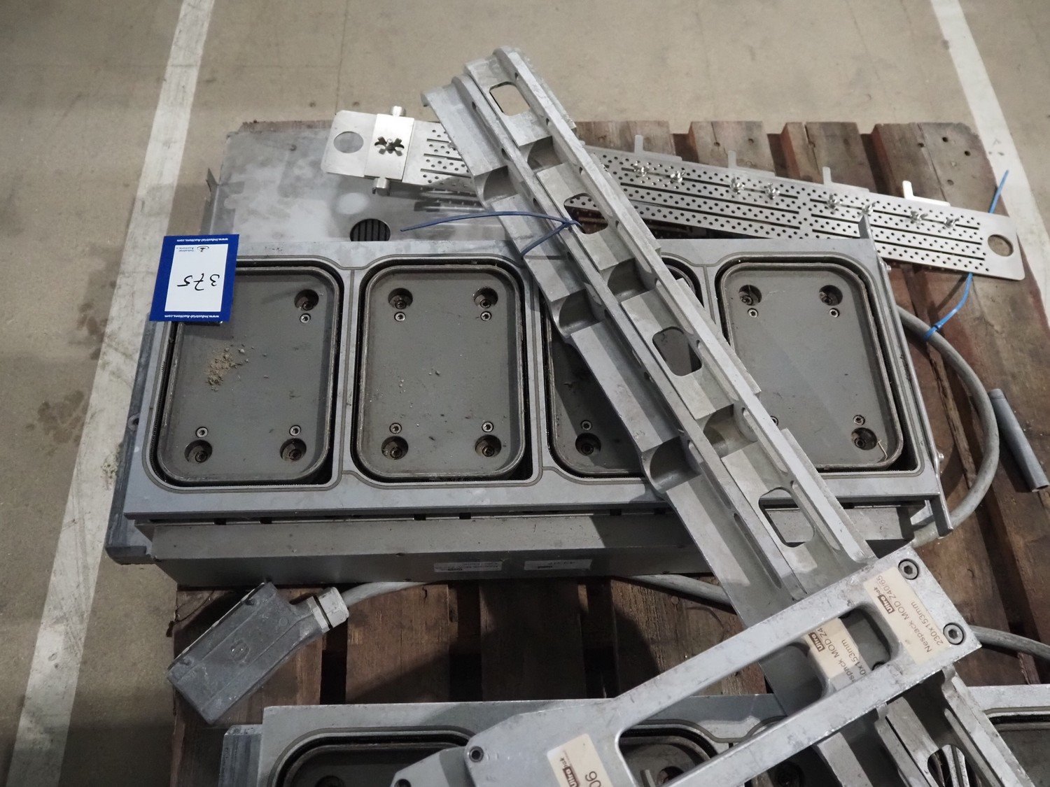 Pallet with dye for Ulma traysealer, dye: (4x) 230 mm x 153 mm, total dimensions: 1200 mm x 1000 mm x 400 mm. Kavel locatie: Amfoor 6, 4421 SE Kapelle, Nederland