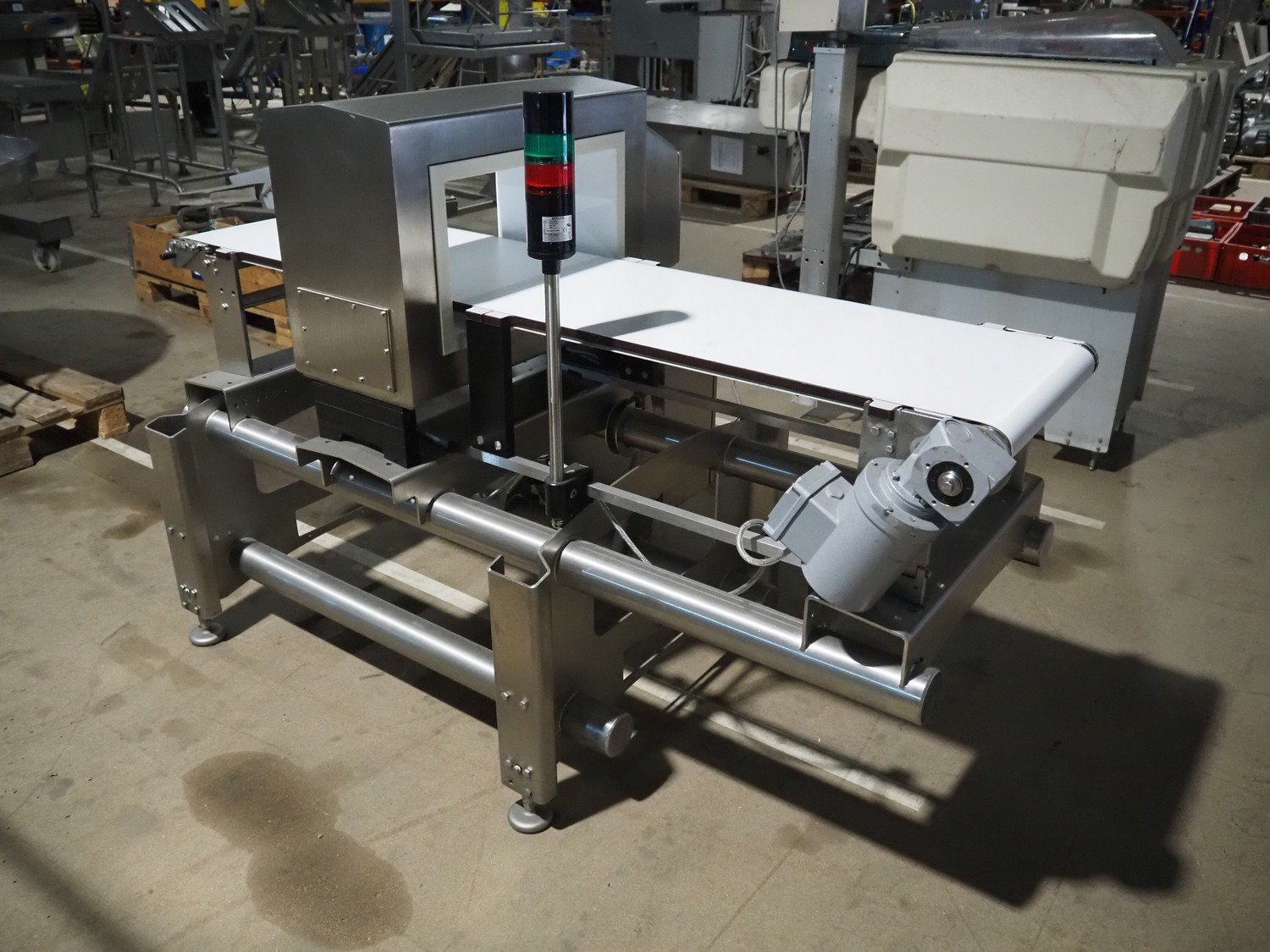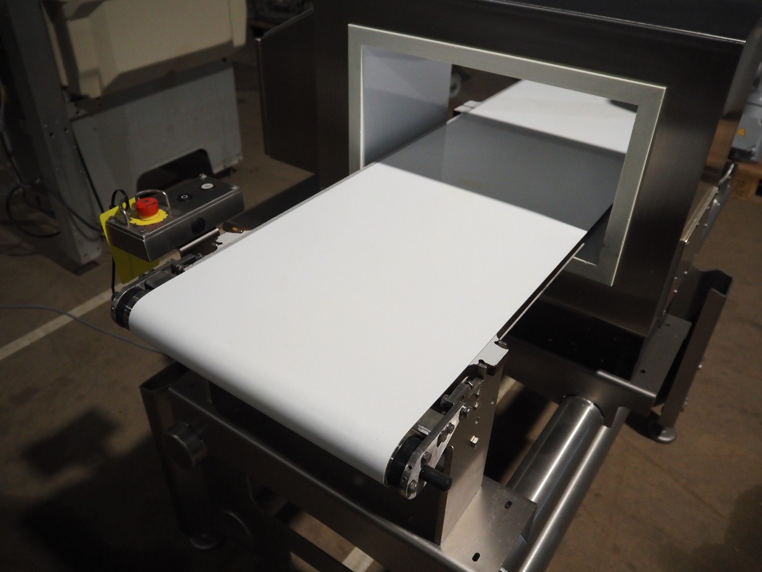Sesotec metal detector, type: GLS 450/250/125/289/143, serial number: 11227009665-H, year of construction: 2012, 100-240 VAC, 50/60 Hz, 0.5-0.25 A, plastic belt, belt width: 390 mm, clearance: 450 mm x 200 mm, total dimensions: 1750 mm x 940 mm x 1200 mm. Kavel locatie: Amfoor 6, 4421 SE Kapelle, Nederland