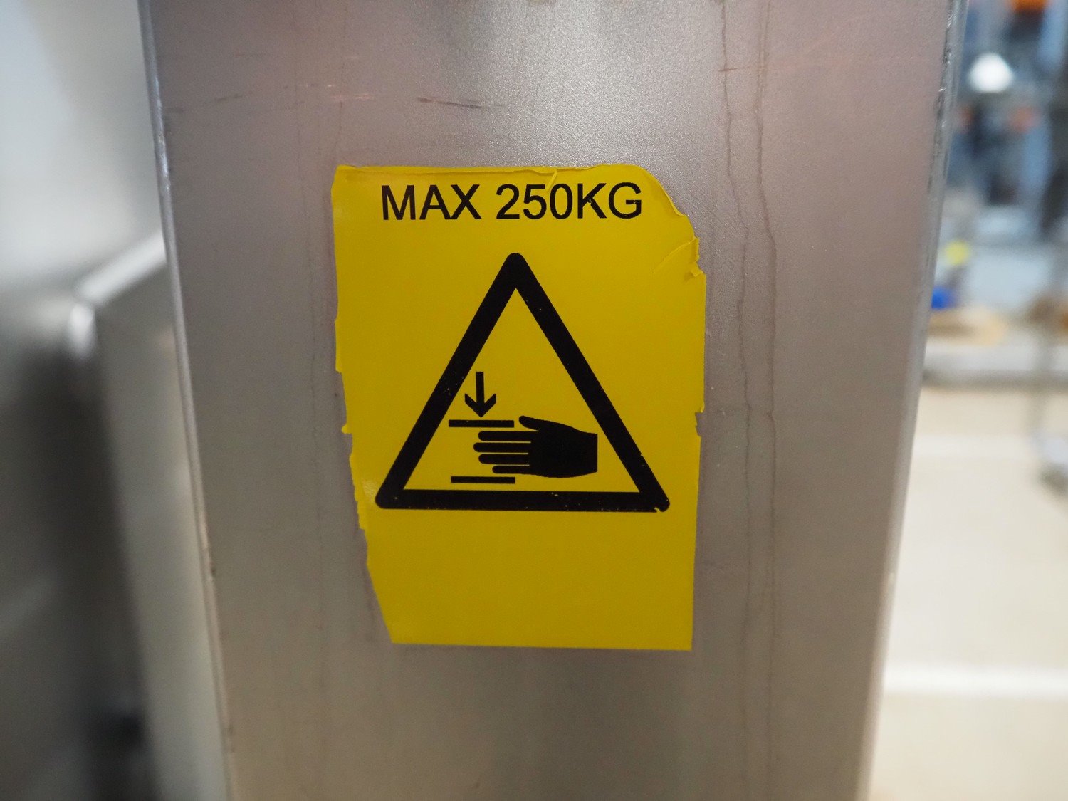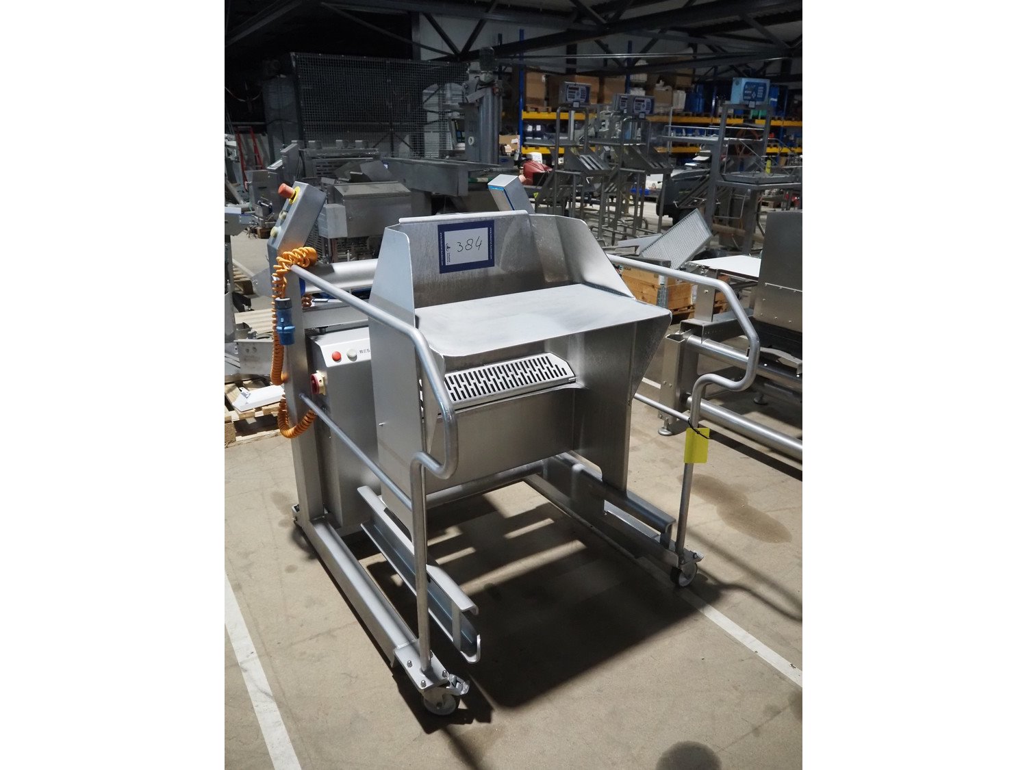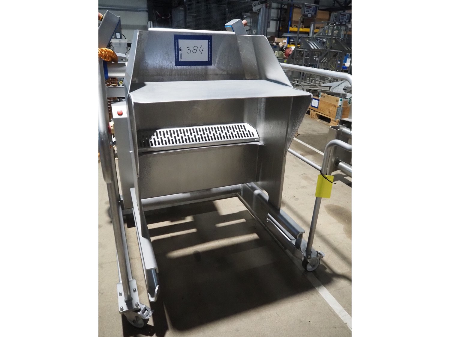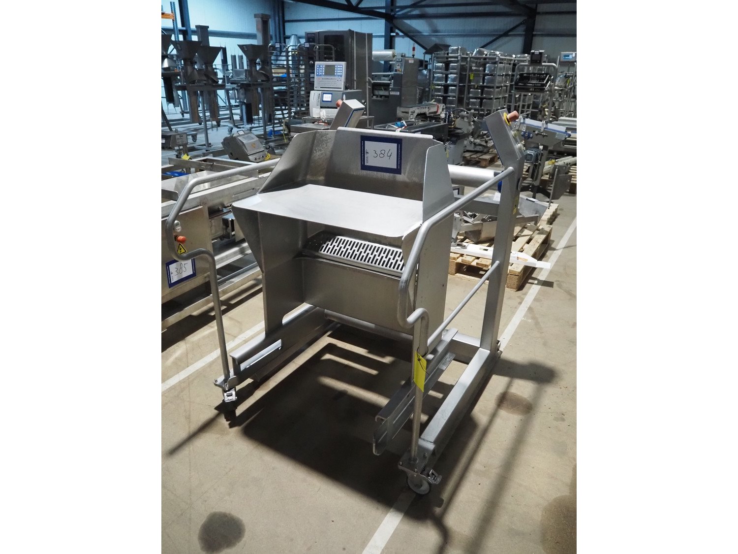 N&N Nadratowski sp.j. mobile tilting device for 200 liter meat bins, model: PZ-3/250 SWING LOADER, serial number: 1855, year of construction: 2020, 230 V, 50 Hz, 0.75 kW, capacity: 250 kg, weight: 186 kg, tilting height: 980 mm, total dimensions: 1220 mm x 960 mm x 1280 mm. Kavel locatie: Amfoor 6, 4421 SE Kapelle, Nederland