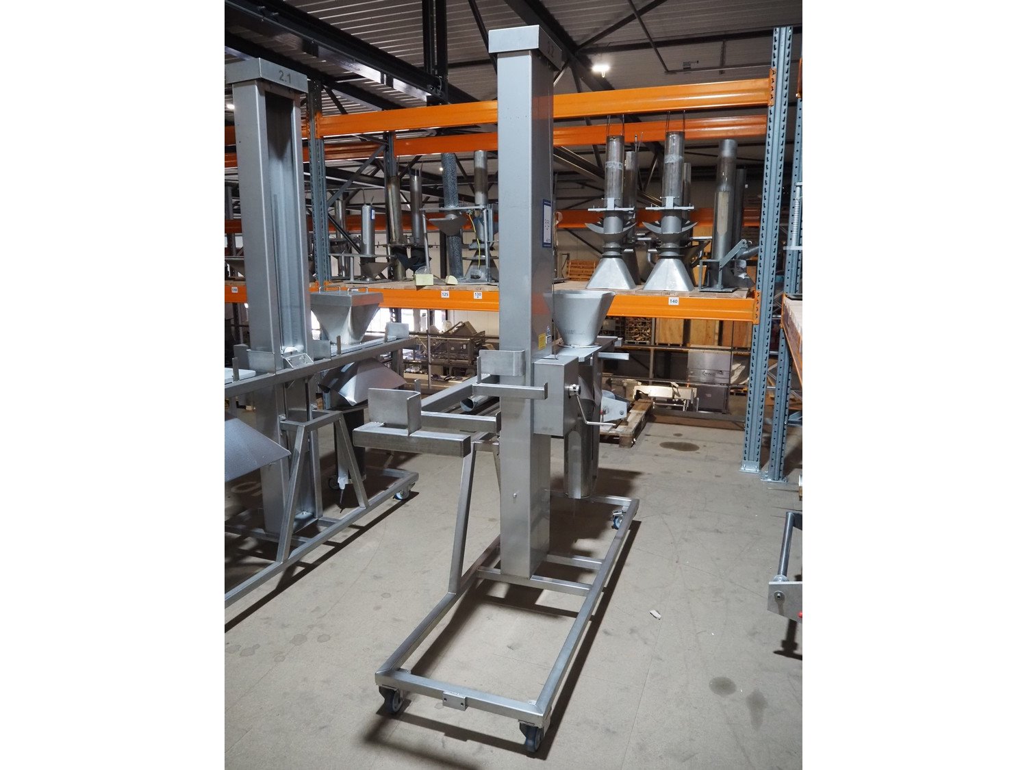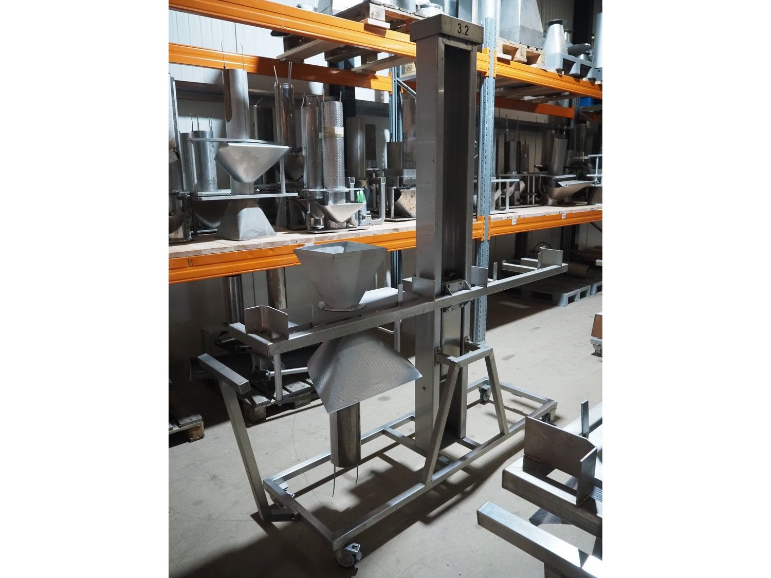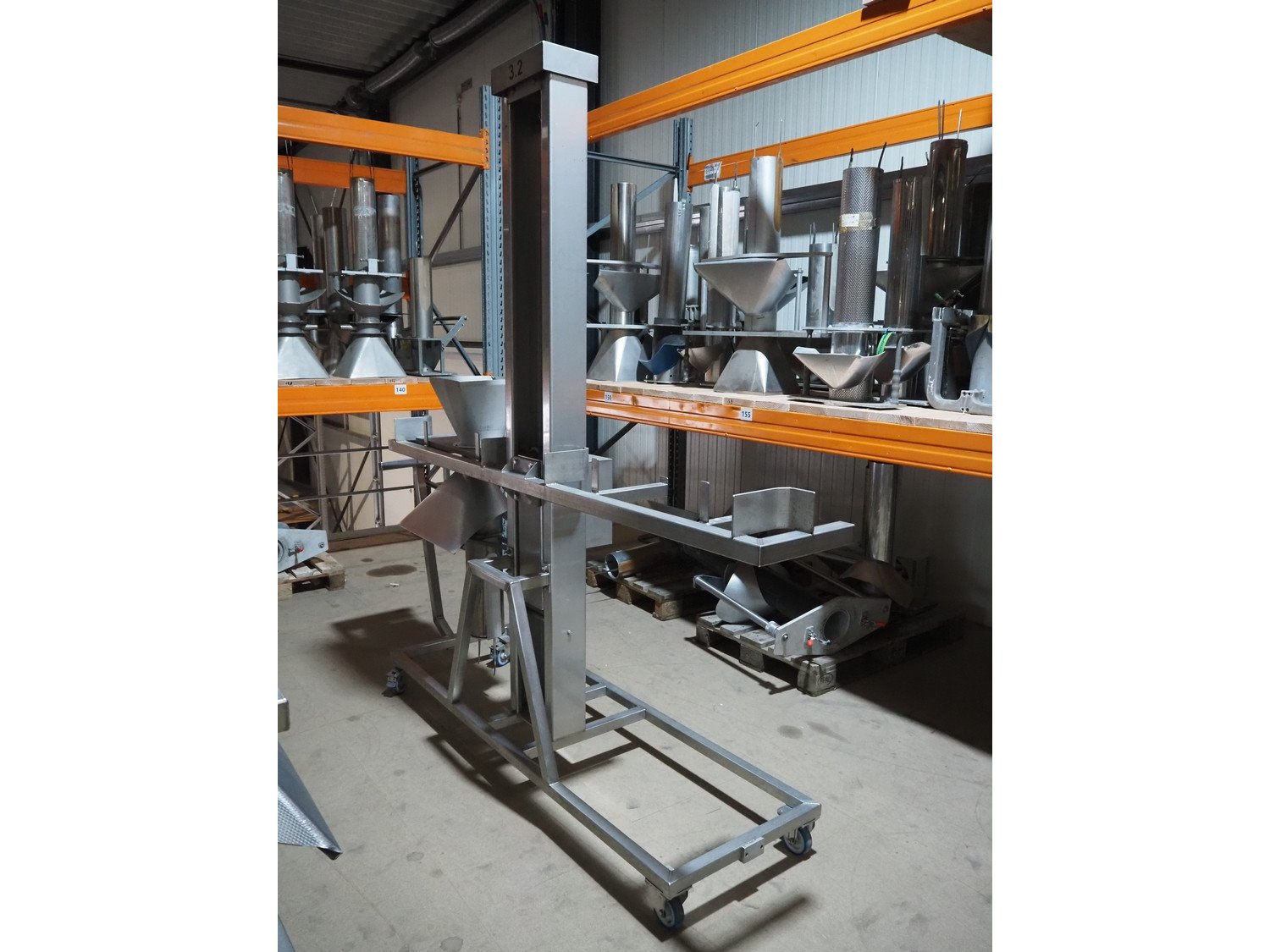Mennens mobile lifter for filling pipes, dimensions: 2350 mm x 600 mm x 2380 mm. Including 1 filling pipe, clearance pipe: Ø 140 mm. Kavel locatie: Amfoor 6, 4421 SE Kapelle, Nederland