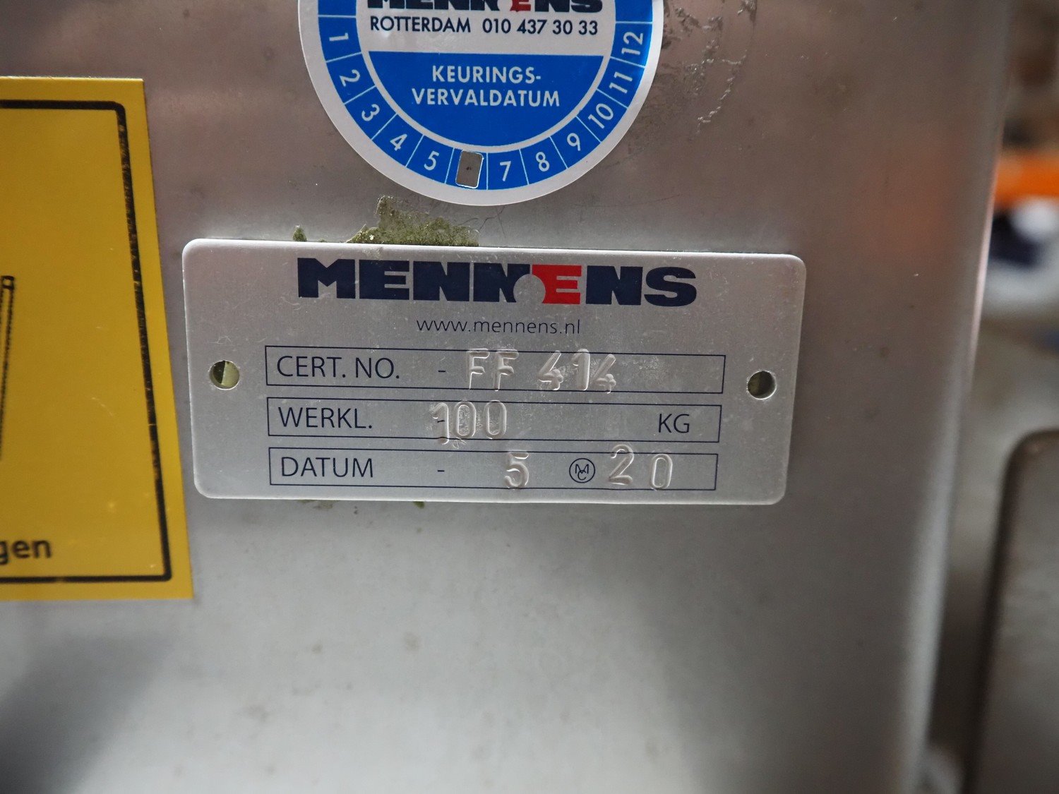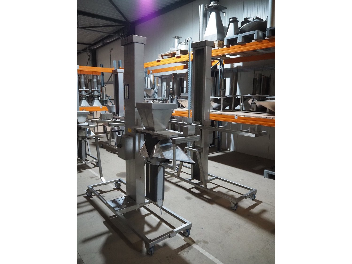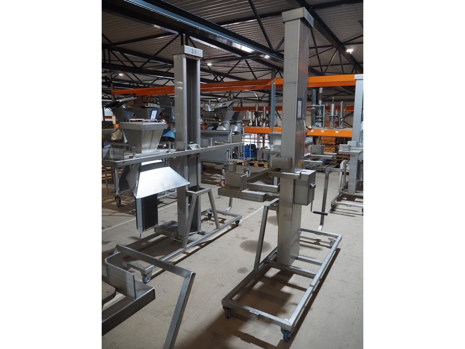 Mennens mobile lifter for filling pipes, dimensions: 2350 mm x 600 mm x 2380 mm. Including 1 filling pipe, clearance pipe: Ø 140 mm. Kavel locatie: Amfoor 6, 4421 SE Kapelle, Nederland