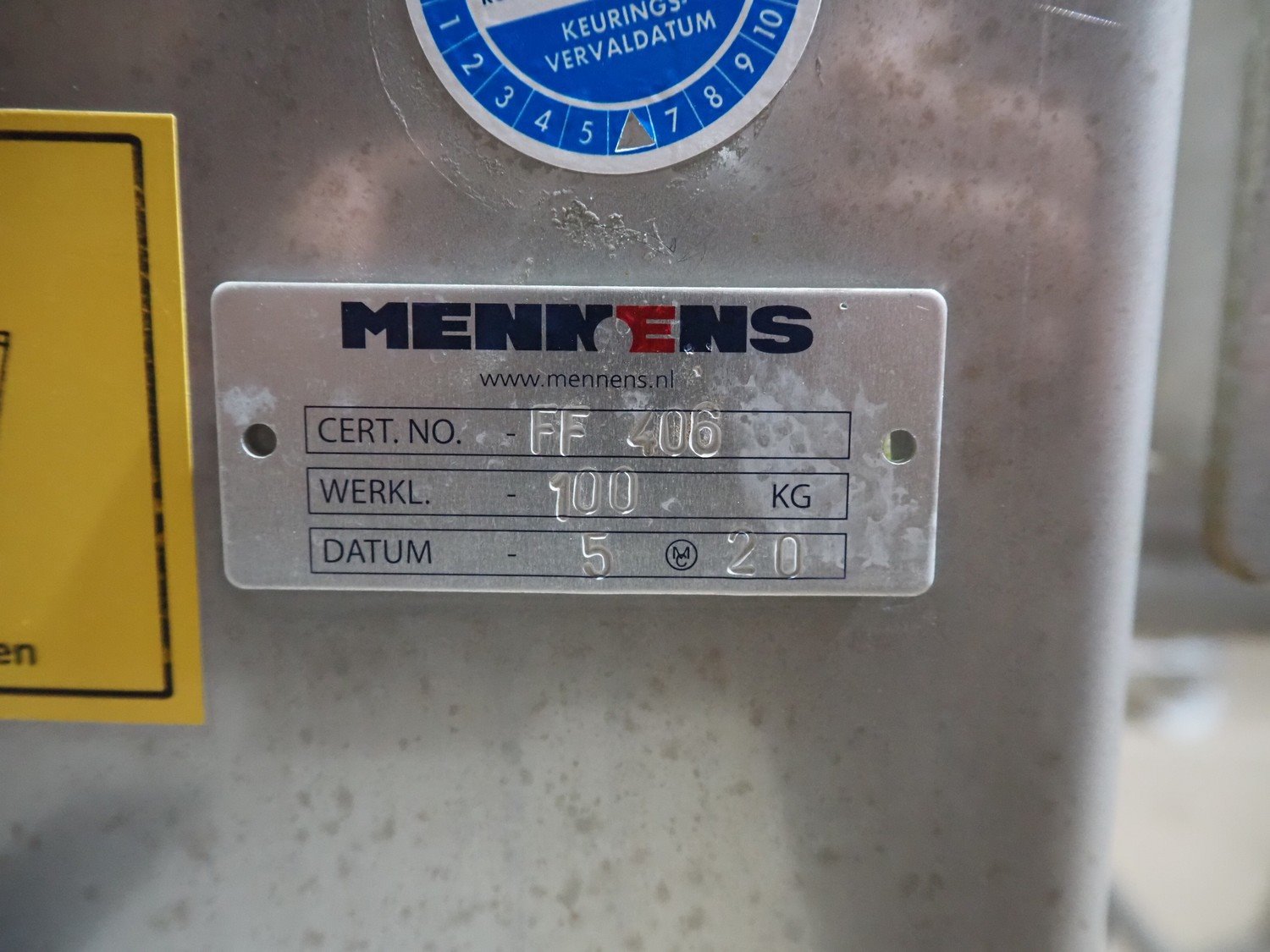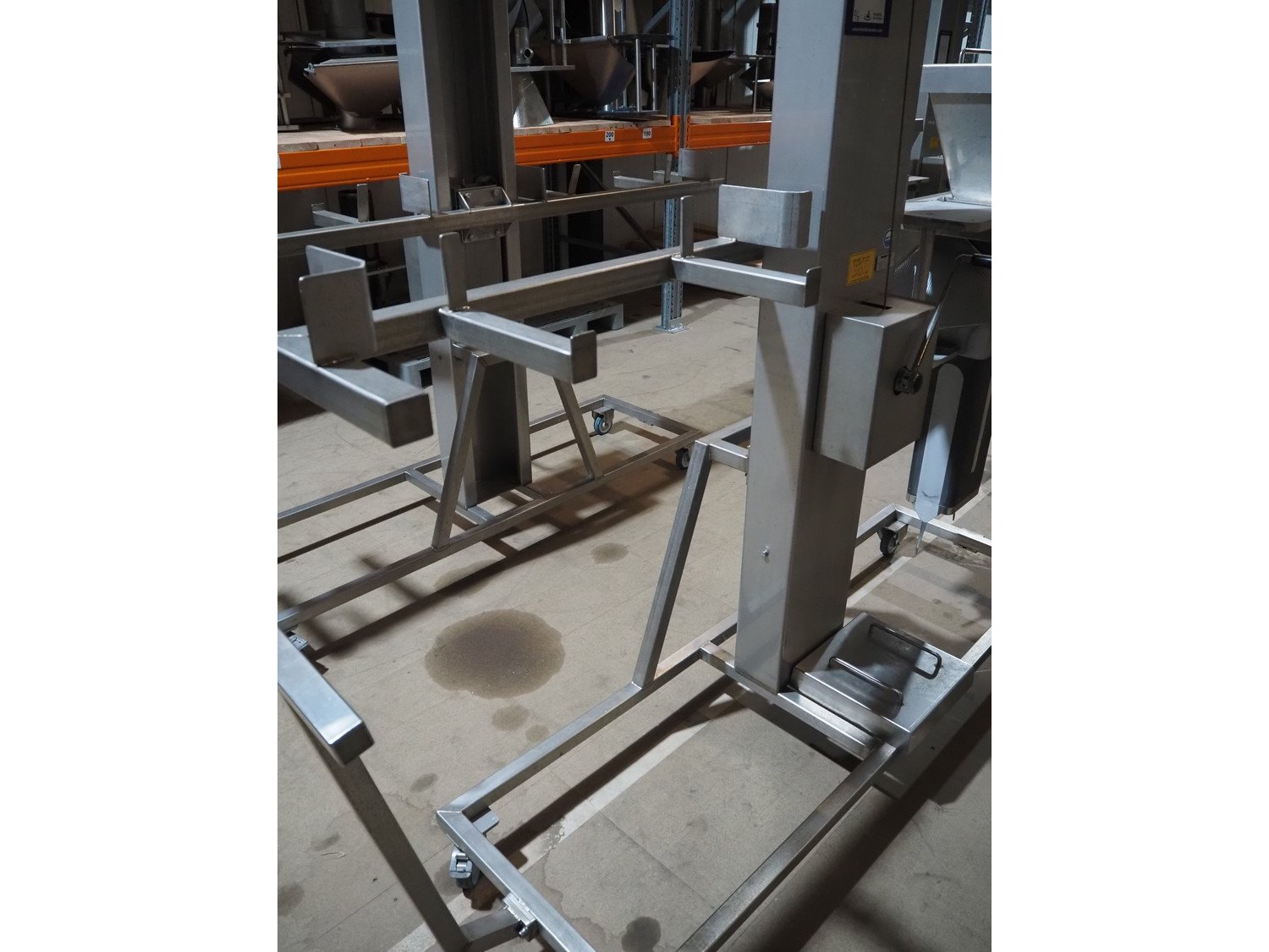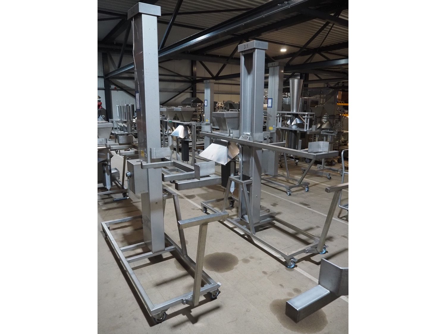 2 Mennens mobile lifters for filling pipes, dimensions: (2x) 2350 mm x 600 mm x 2380 mm. Including 1 filling pipe, clearance pipe: 200 mm x 125 mm. Kavel locatie: Amfoor 6, 4421 SE Kapelle, Nederland