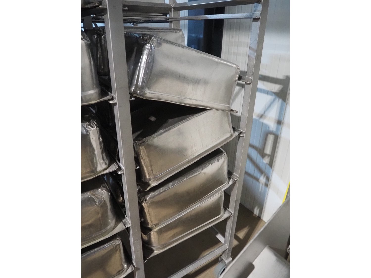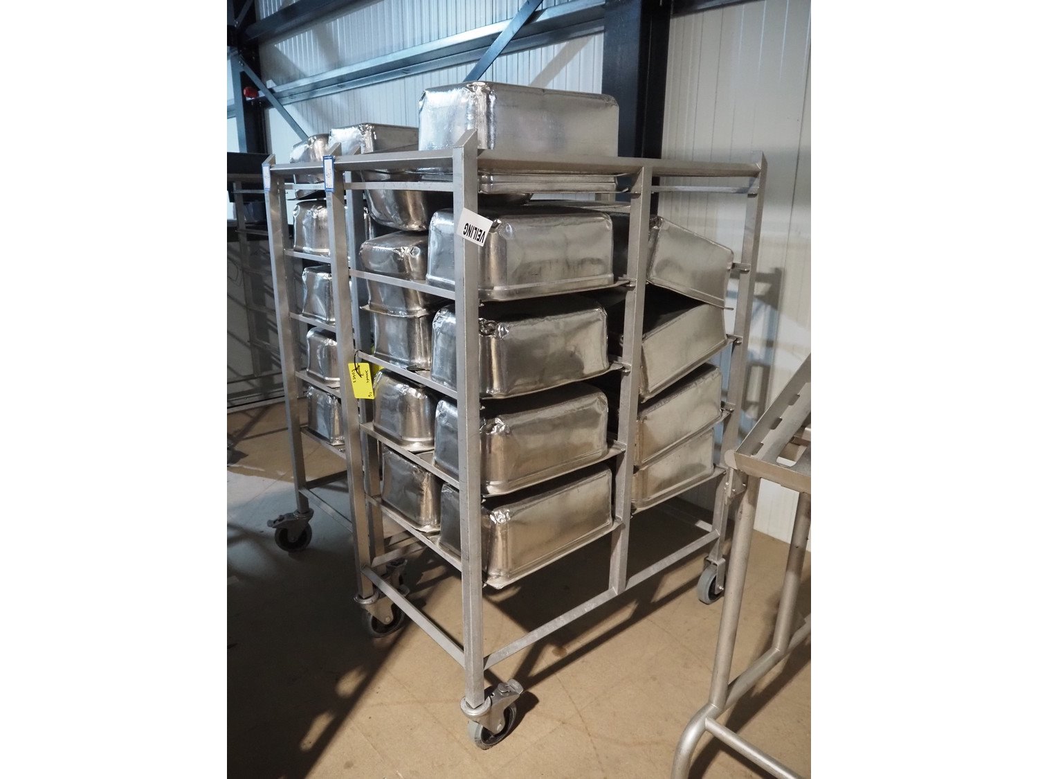 2 s/s trolleys, 2x 5 floors, dimensions each floor: 700 mm x 540 mm, total dimensions: (2x) 1210 mm x 700 mm x 1710 mm. Including large amount of s/s 1/1 gastronorm bins. Kavel locatie: Amfoor 6, 4421 SE Kapelle, Nederland