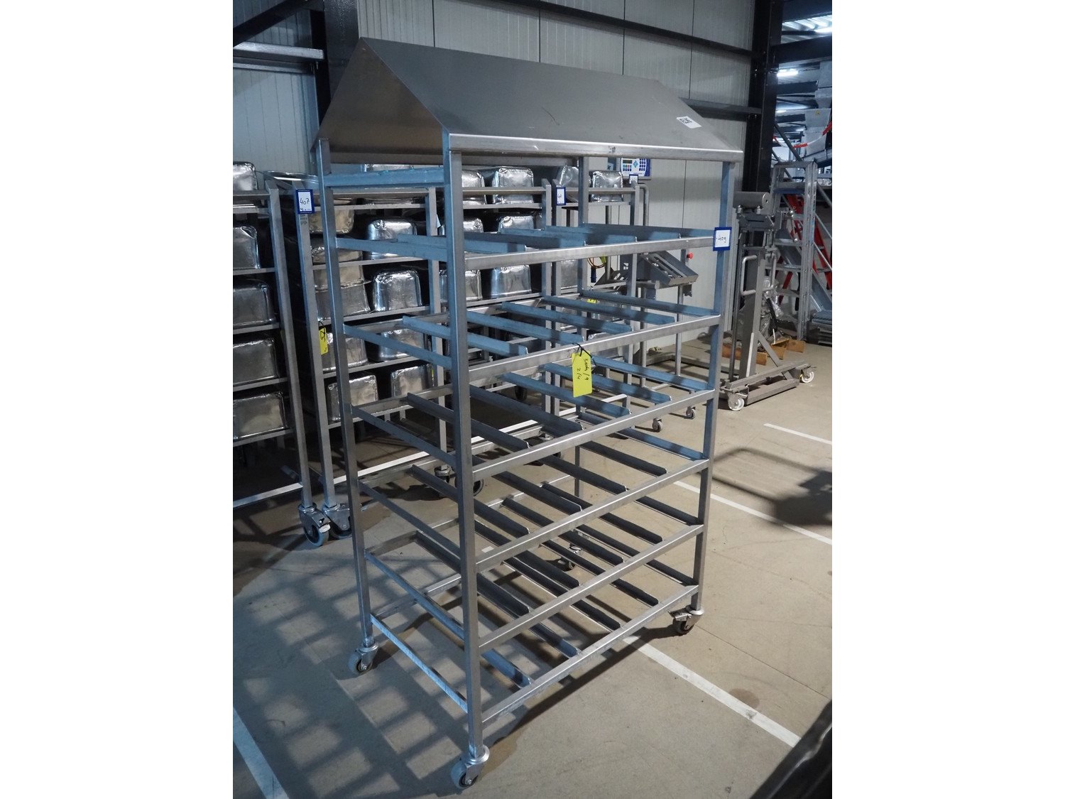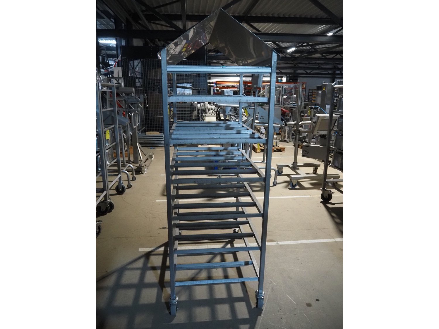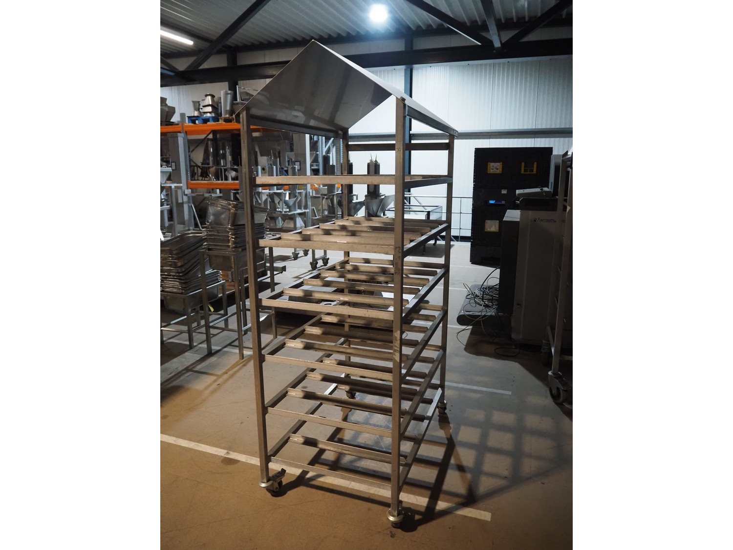 S/s trolley, 6 floors, dimensions floors: (6x) 1030 mm x 680 mm, total dimensions: 1100 mm x 680 mm x 2010 mm. Kavel locatie: Amfoor 6, 4421 SE Kapelle, Nederland