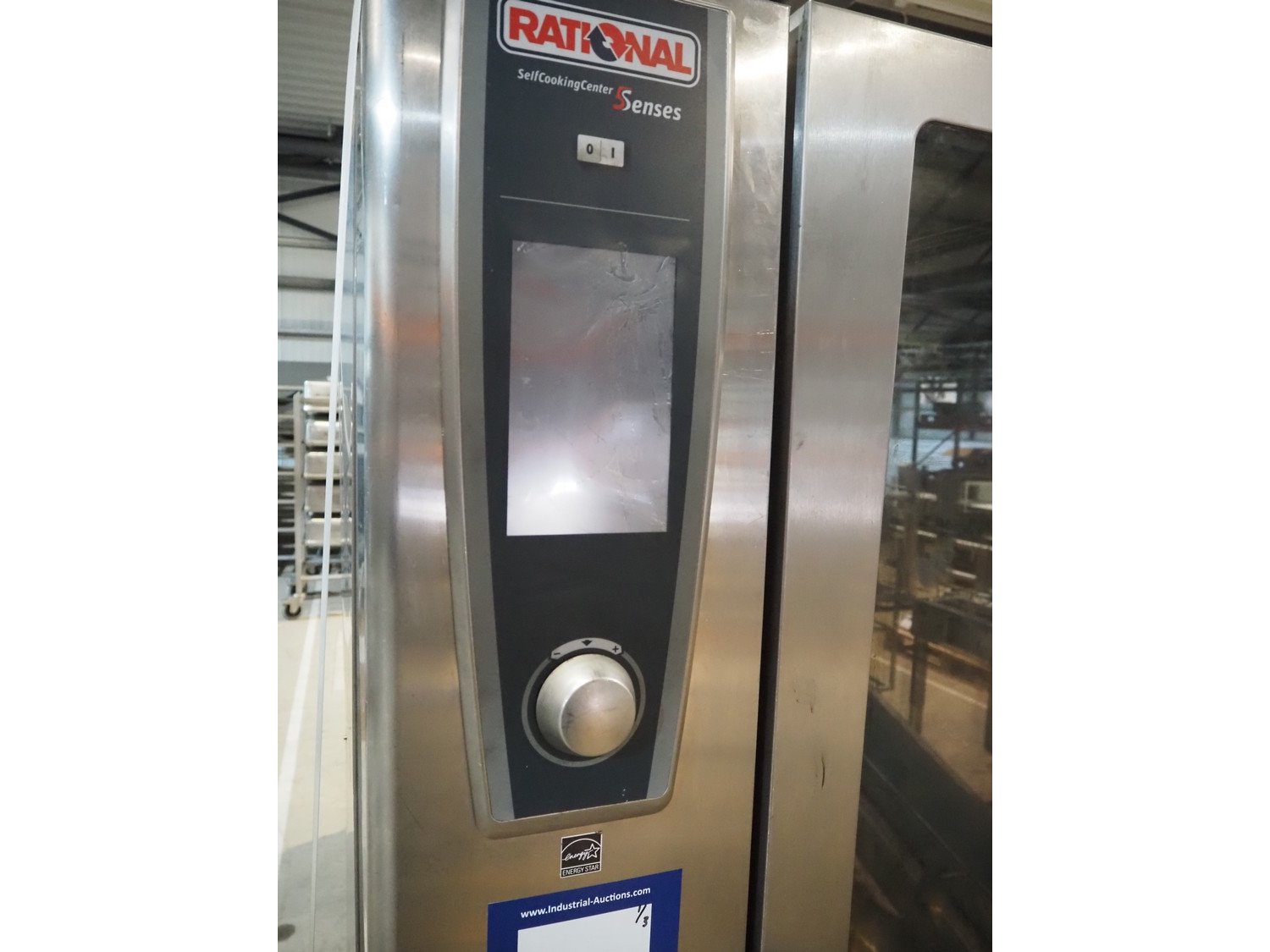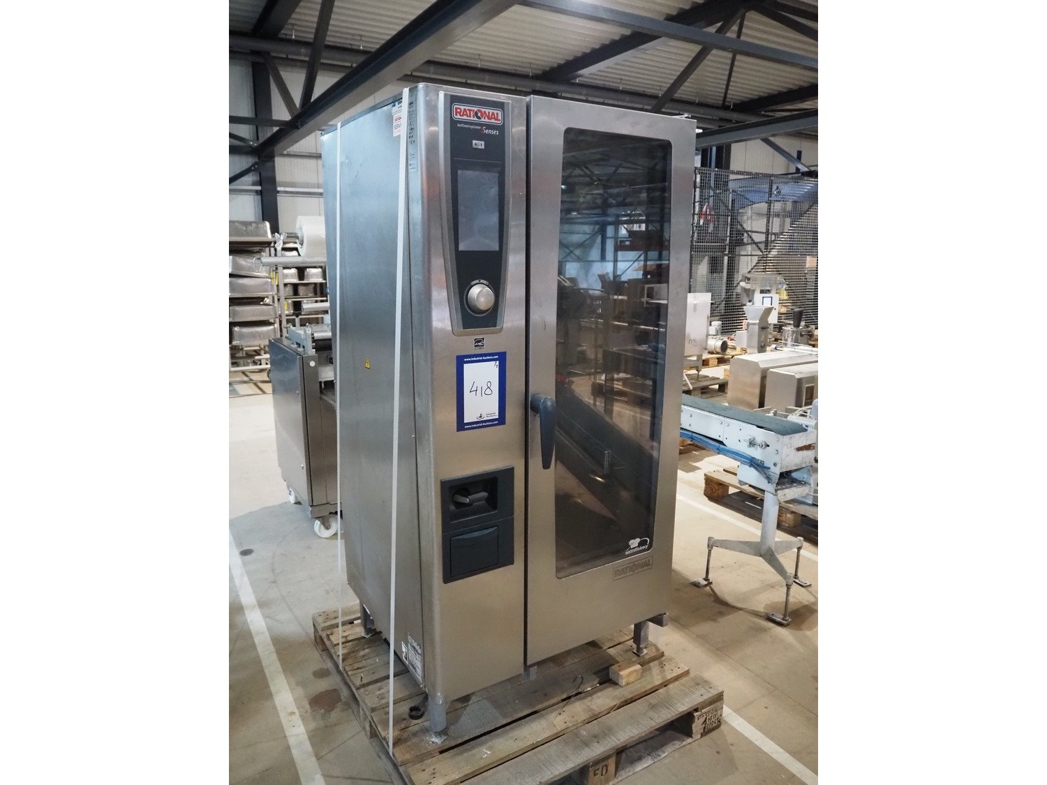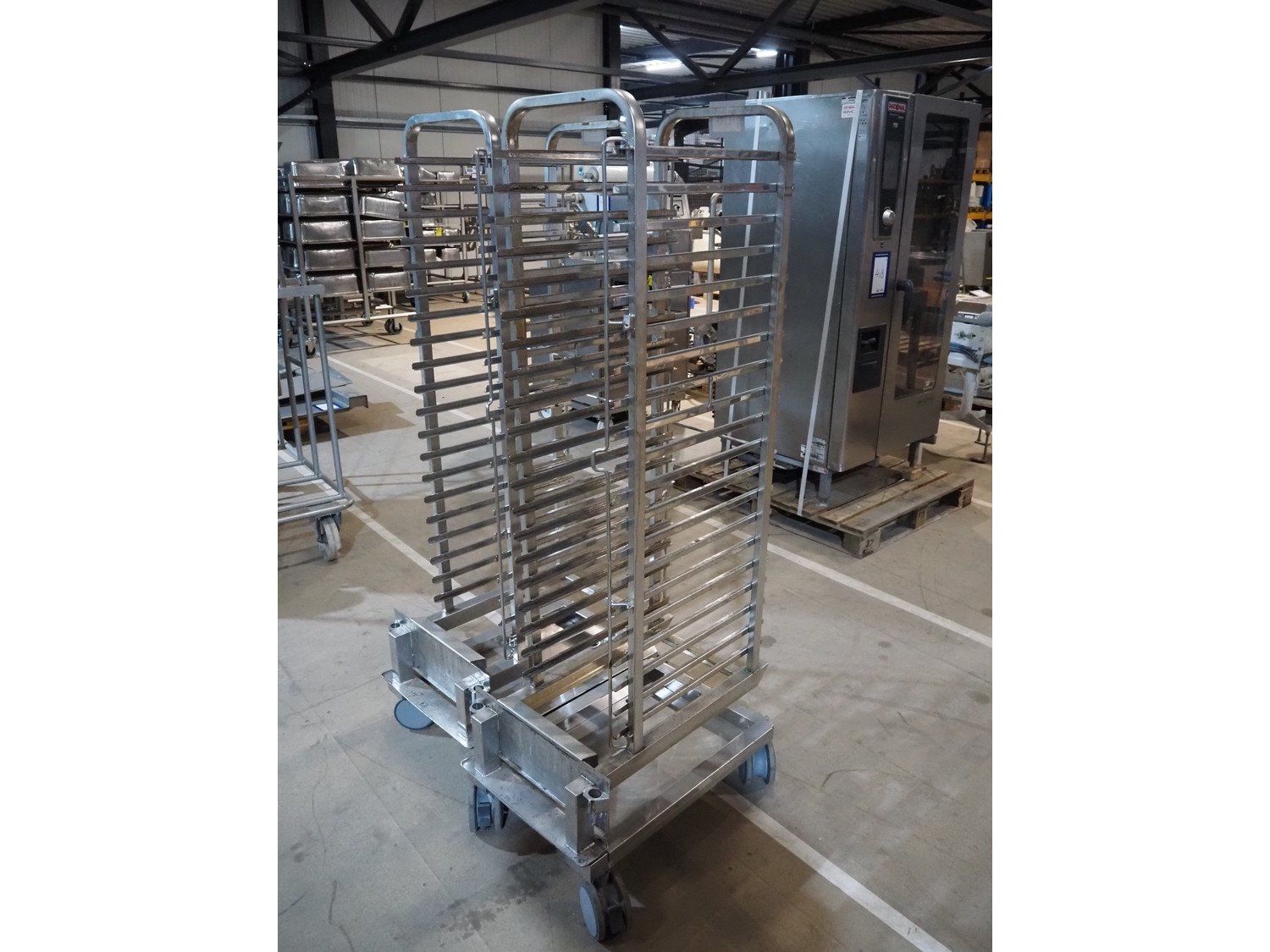 Rational combi steamer, model: SCC WE 201, serial number: E21SH15122492323, 400 V, 3 Ph, 50/60 Hz, 37 kW, dimensions: 900 mm x 900 mm x 1800 mm. Including 2 trolleys, 20 floors each, floor dimensions: 540 mm x 330 mm, trolley dimensions: (2x) 750 mm x 470 mm x 1720 mm. Damaged. Kavel locatie: Amfoor 6, 4421 SE Kapelle, Nederland