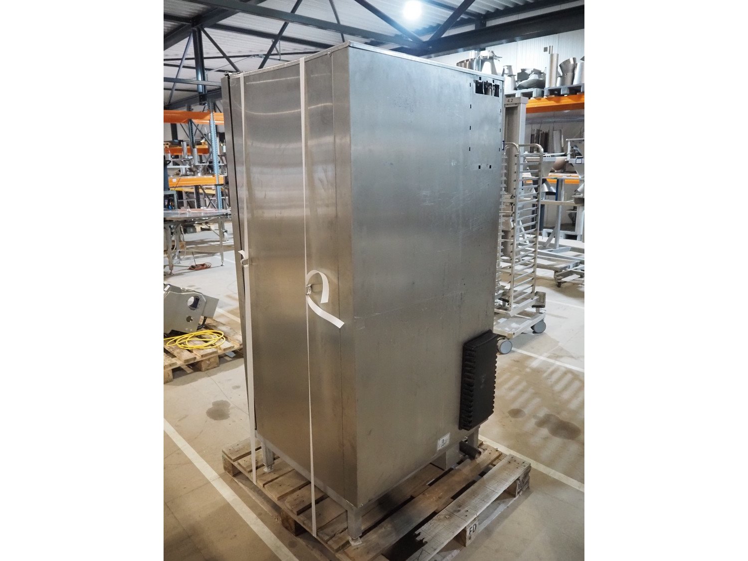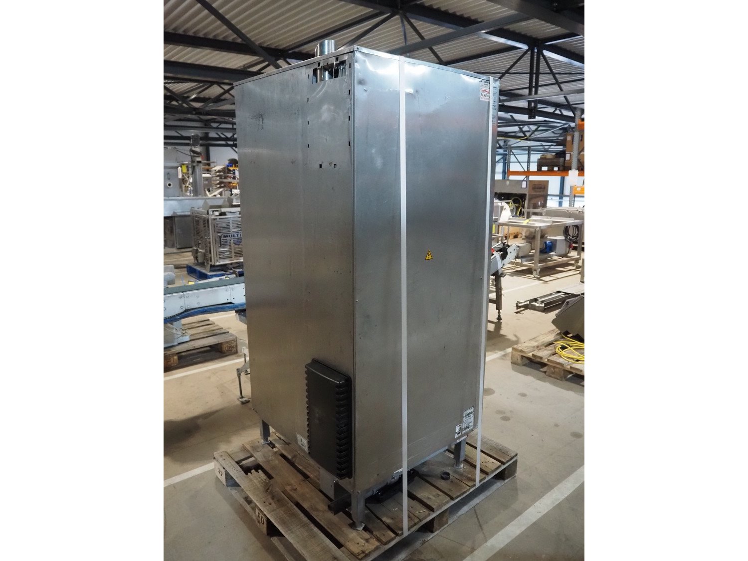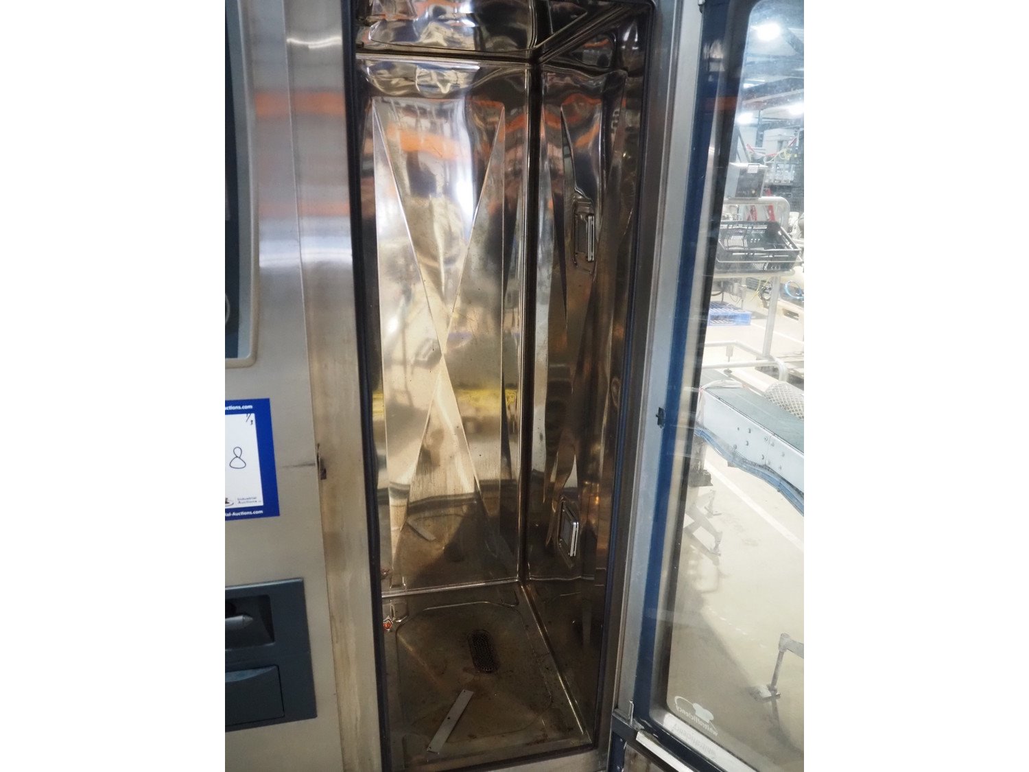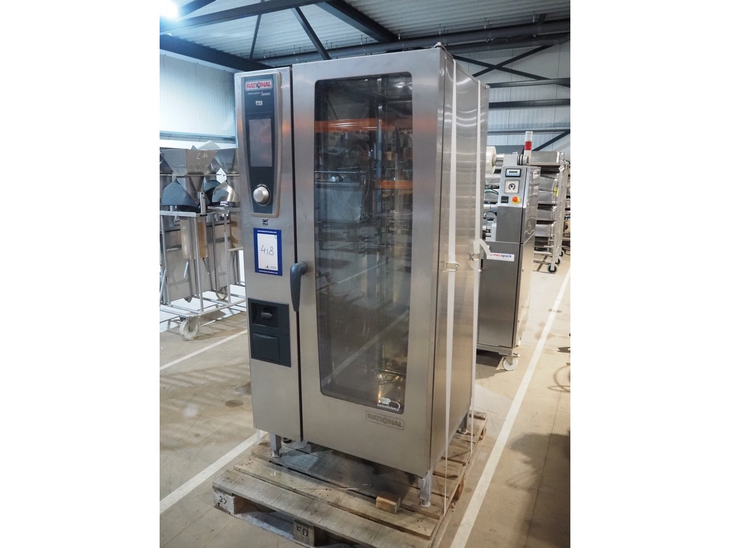 Rational combi steamer, model: SCC WE 201, serial number: E21SH15122492323, 400 V, 3 Ph, 50/60 Hz, 37 kW, dimensions: 900 mm x 900 mm x 1800 mm. Including 2 trolleys, 20 floors each, floor dimensions: 540 mm x 330 mm, trolley dimensions: (2x) 750 mm x 470 mm x 1720 mm. Damaged. Kavel locatie: Amfoor 6, 4421 SE Kapelle, Nederland