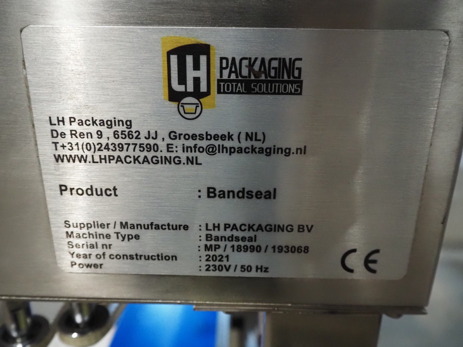 LH packaging bag sealer, type: Bandseal, serial number: MP/18990/193068, year of construction: 2021, 230 V, 50 Hz, seal length: 230 mm, plastic belt, belt width: 160 mm, total dimensions: 840 mm x 400 mm x 600 mm. Kavel locatie: Amfoor 6, 4421 SE Kapelle, Nederland