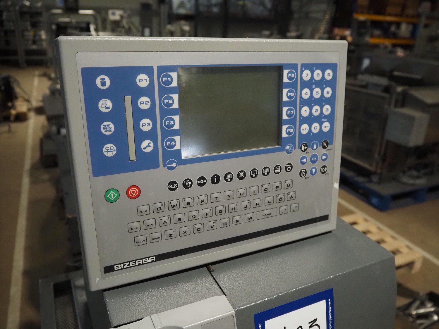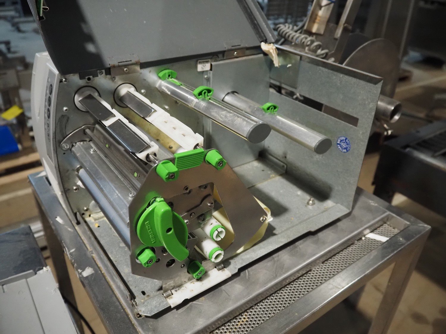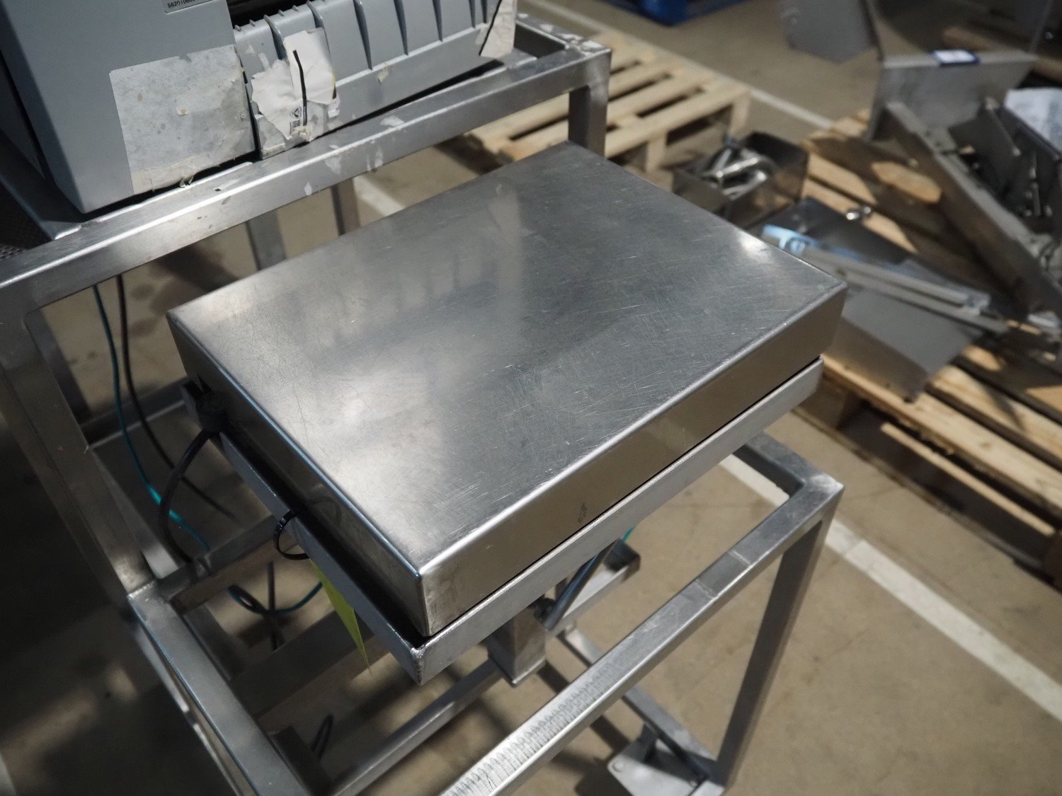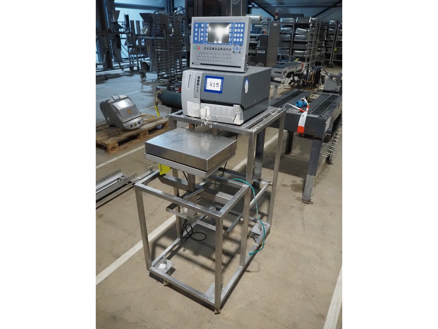 Bizerba weighing scale with label printer on s/s frame, typ: GLP-W, number: 10672259, 230 V, 50 Hz, 0.65 A, maximum weight: 3/6/15 kg, minimum weight: 20 gram, e= 1/2/5 gram, dimensions scale: 330 mm x 260 mm, total dimensions: 950 mm x 500 mm x 1460 mm. Kavel locatie: Amfoor 6, 4421 SE Kapelle, Nederland