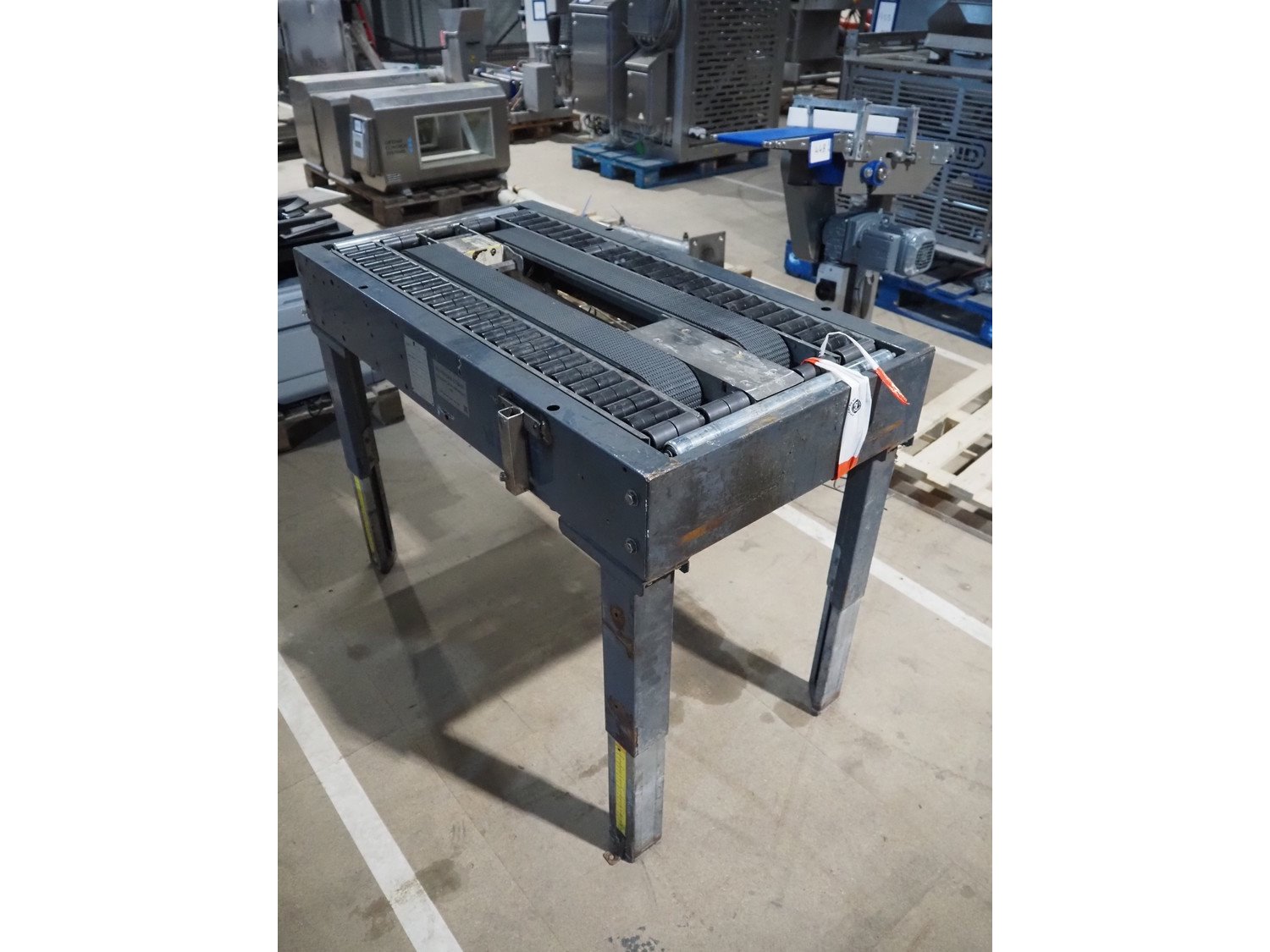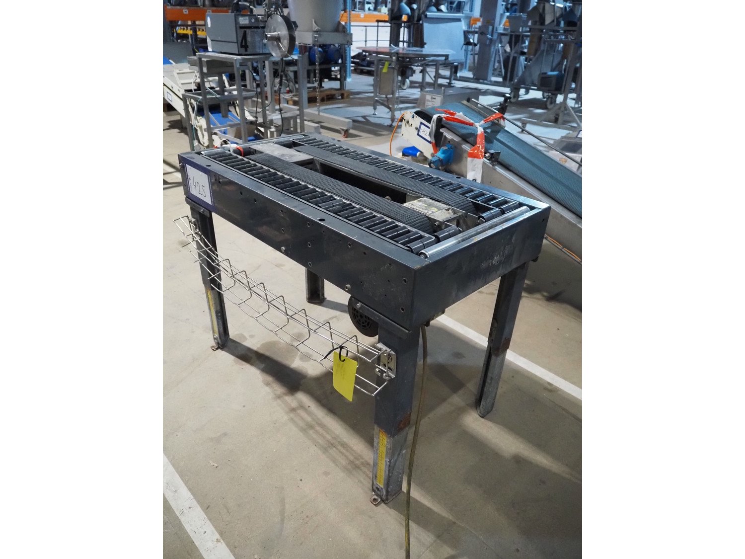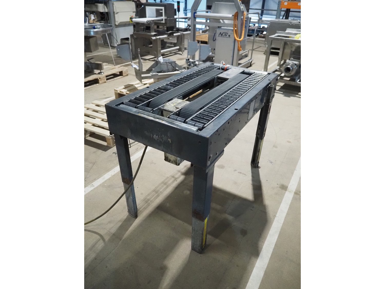 SIAT frame for box closing machine, model: SM2, serial number: 20267, year of construction: 1993, 380 V, 3 Ph, 50 Hz, 1.4 A, 240 W, plastic belts, belt width: (2x) 75 mm, plastic rollers, roller width: (2x) 75 mm, total dimensions: 1080 mm x 570 mm x 790 mm. Kavel locatie: Amfoor 6, 4421 SE Kapelle, Nederland