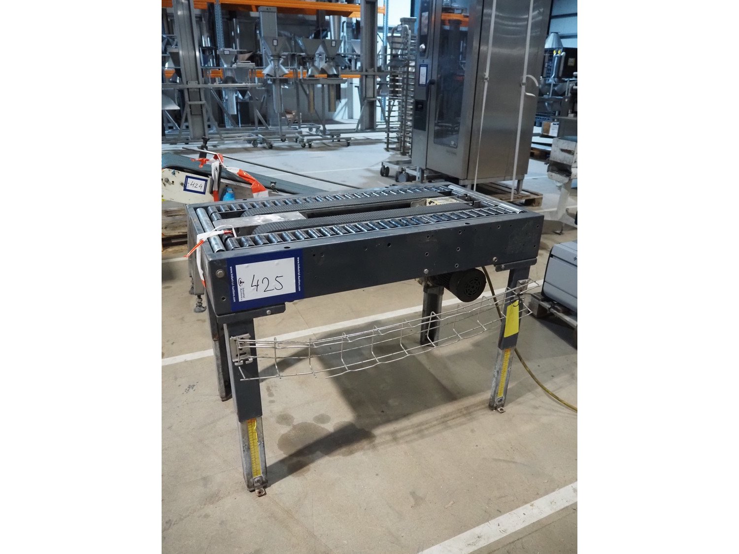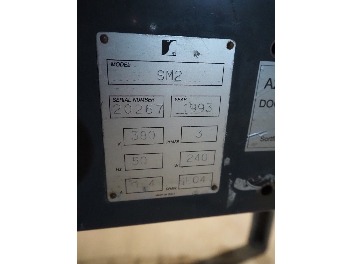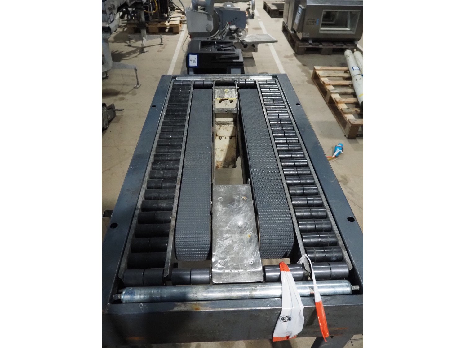 SIAT frame for box closing machine, model: SM2, serial number: 20267, year of construction: 1993, 380 V, 3 Ph, 50 Hz, 1.4 A, 240 W, plastic belts, belt width: (2x) 75 mm, plastic rollers, roller width: (2x) 75 mm, total dimensions: 1080 mm x 570 mm x 790 mm. Kavel locatie: Amfoor 6, 4421 SE Kapelle, Nederland