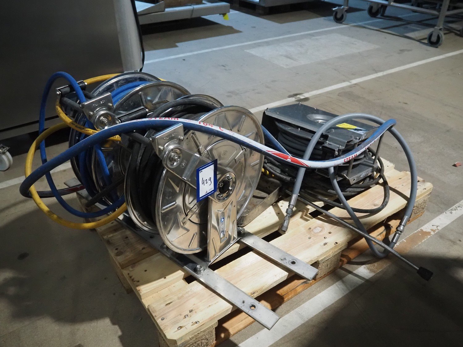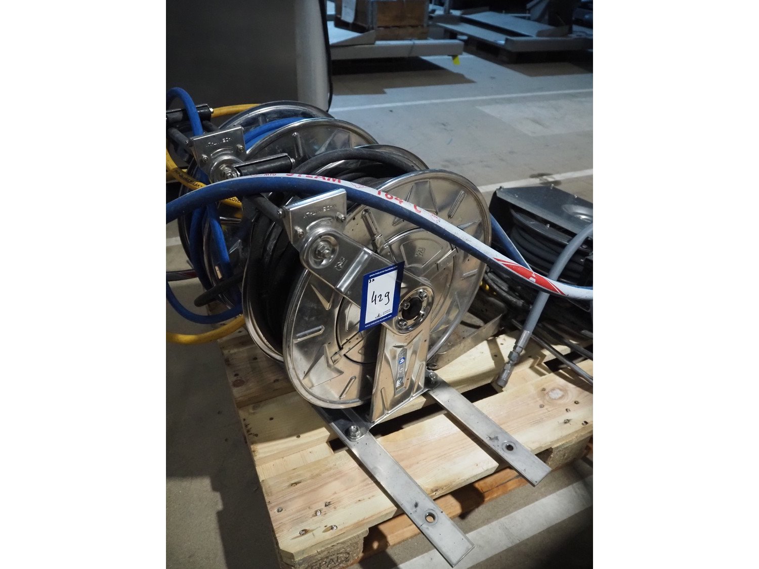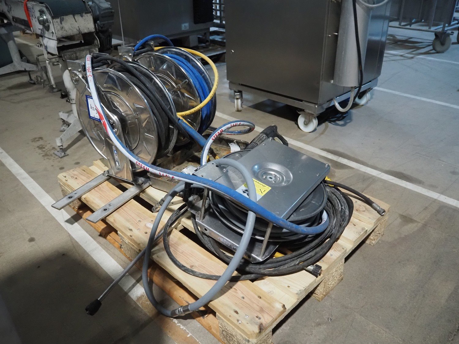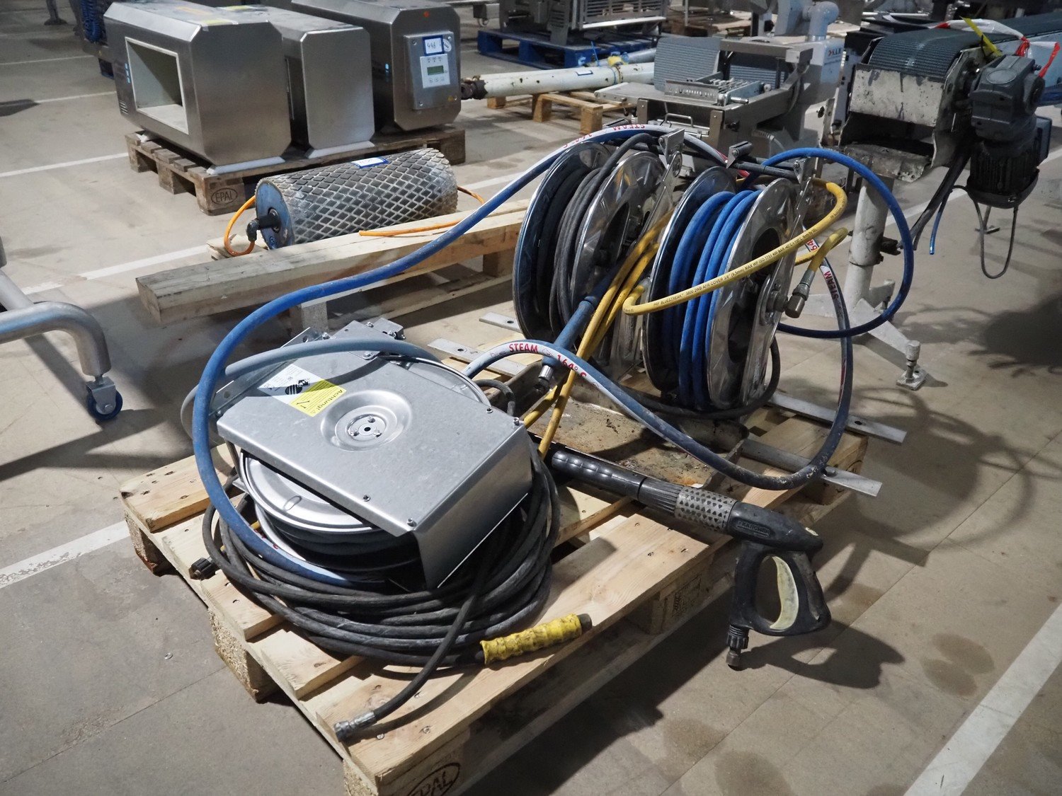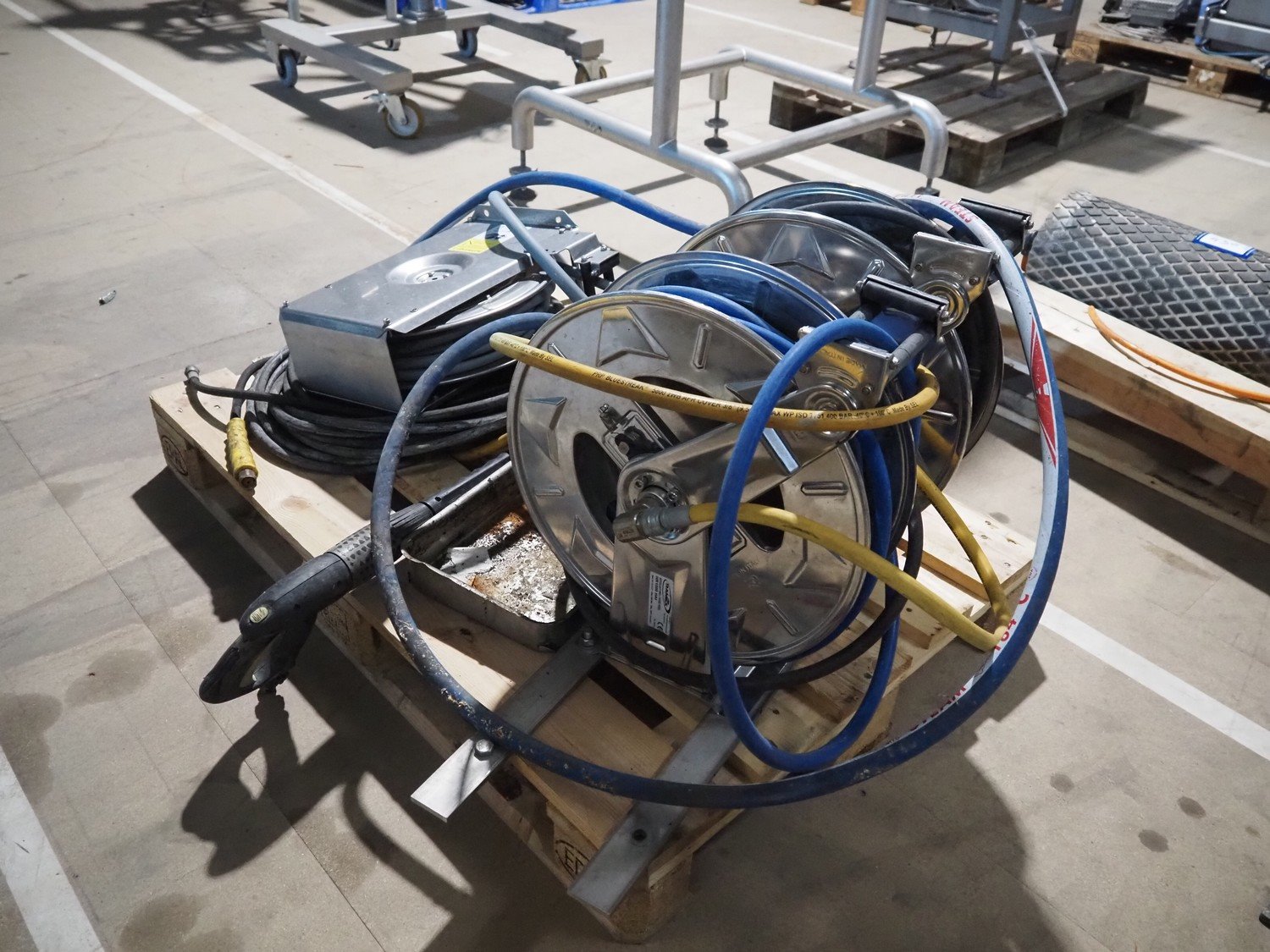 2 Ramex s/s hose reels, model: (2x) HR1000 HAI and R+M s/s hose reels, type: ST14/10e, total dimensions: 1200 mm x 800 mm x 650 mm. Kavel locatie: Amfoor 6, 4421 SE Kapelle, Nederland