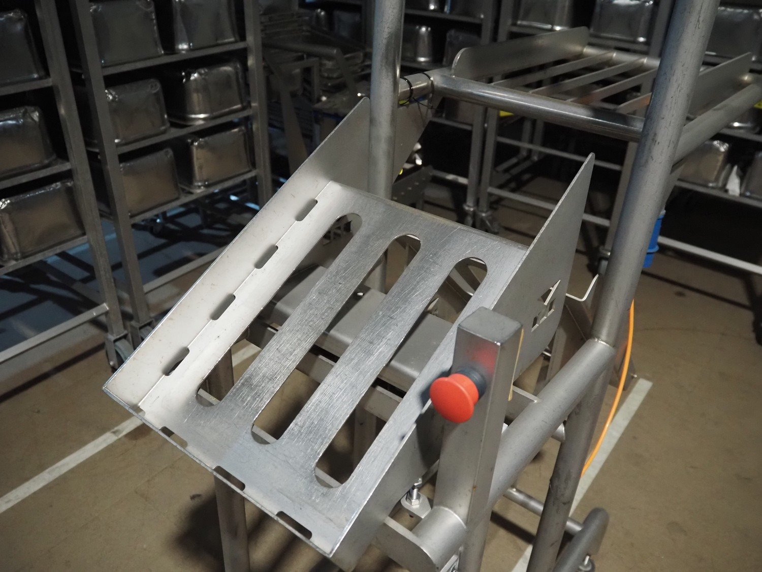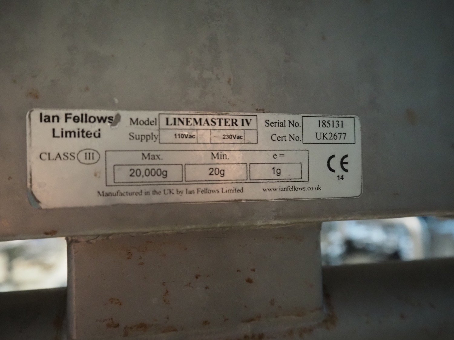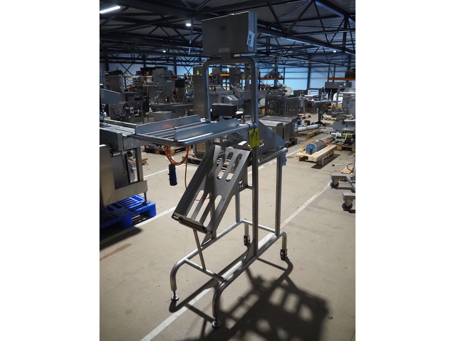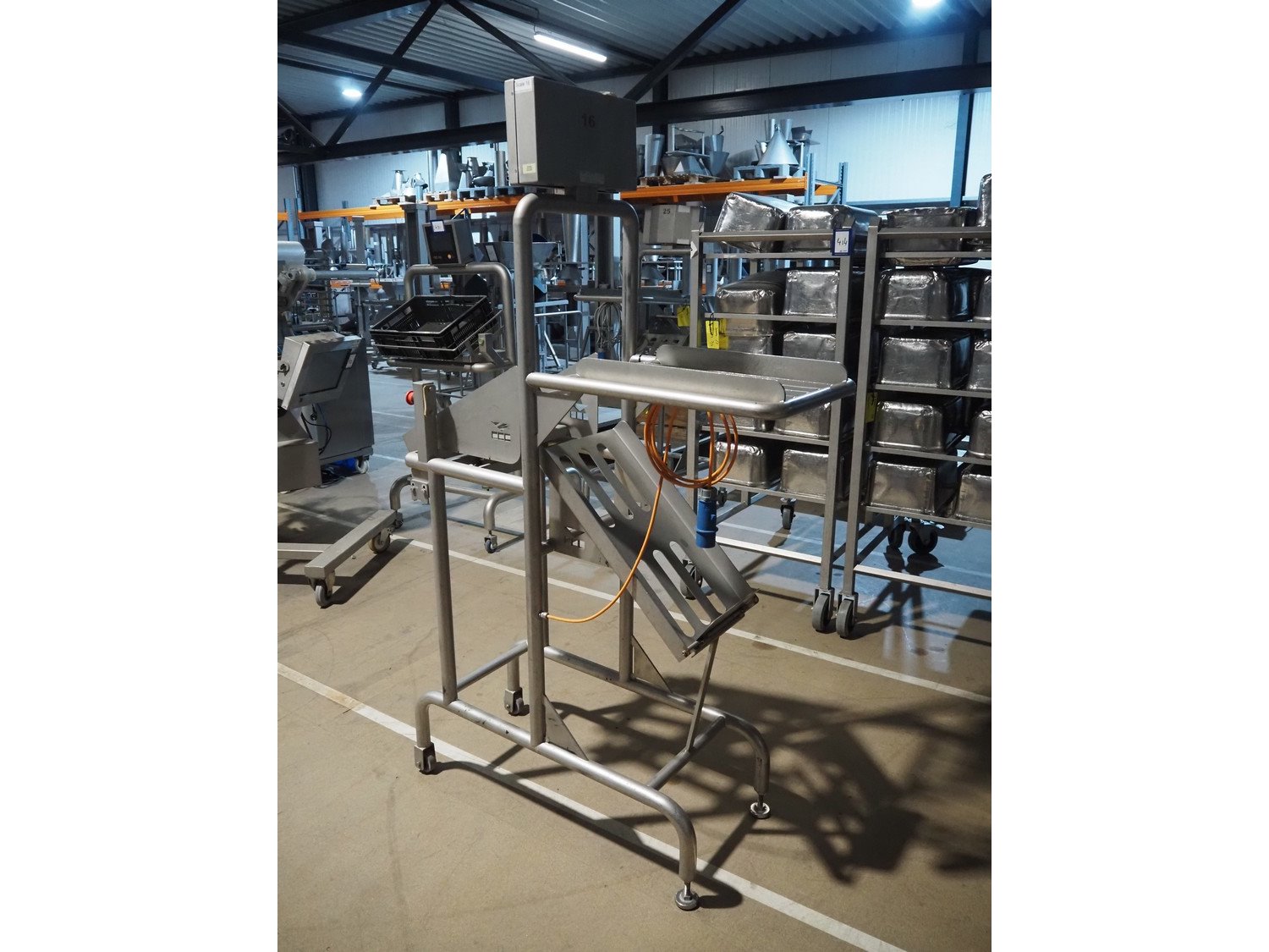 Marco weighing scale for crates on s/s frame, model: LINEMASTER IV, serial number: 185131, 100-240 VAC, maximum weight: 20000 gram, minimum weight: 20 gram, e= 1 gram, clearance: 500 mm x 320 mm, total dimensions: 1130 mm x 460 mm x 1930 mm. Kavel locatie: Amfoor 6, 4421 SE Kapelle, Nederland