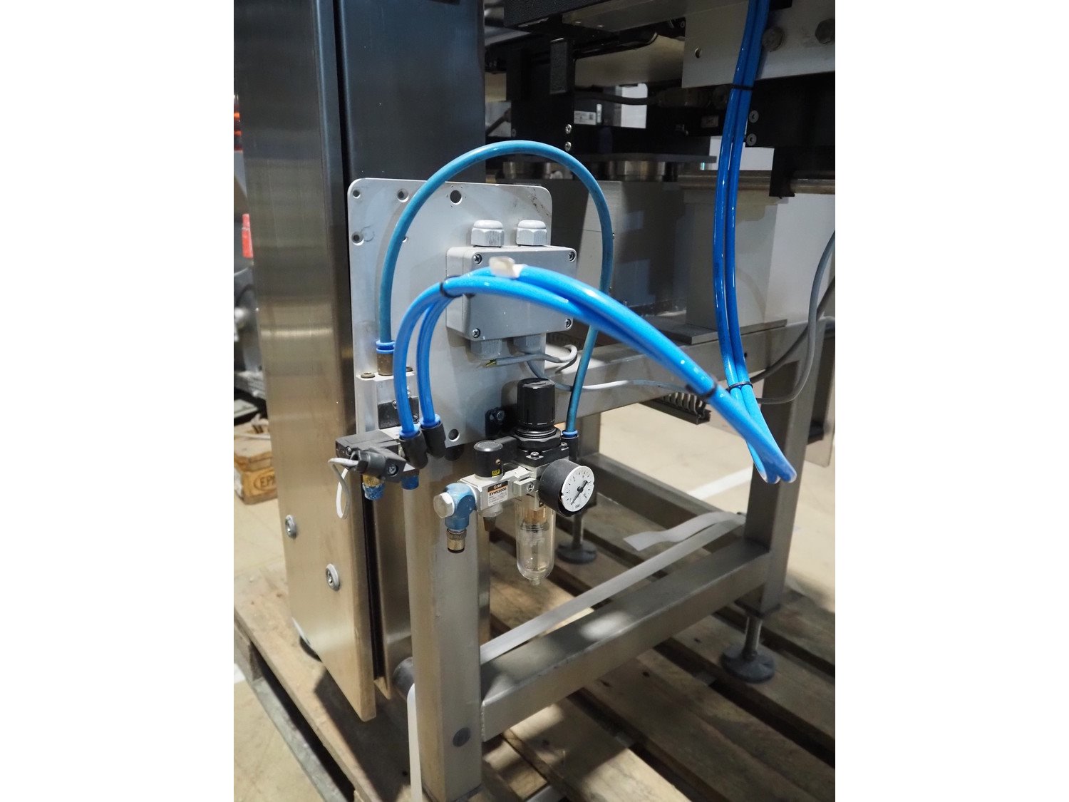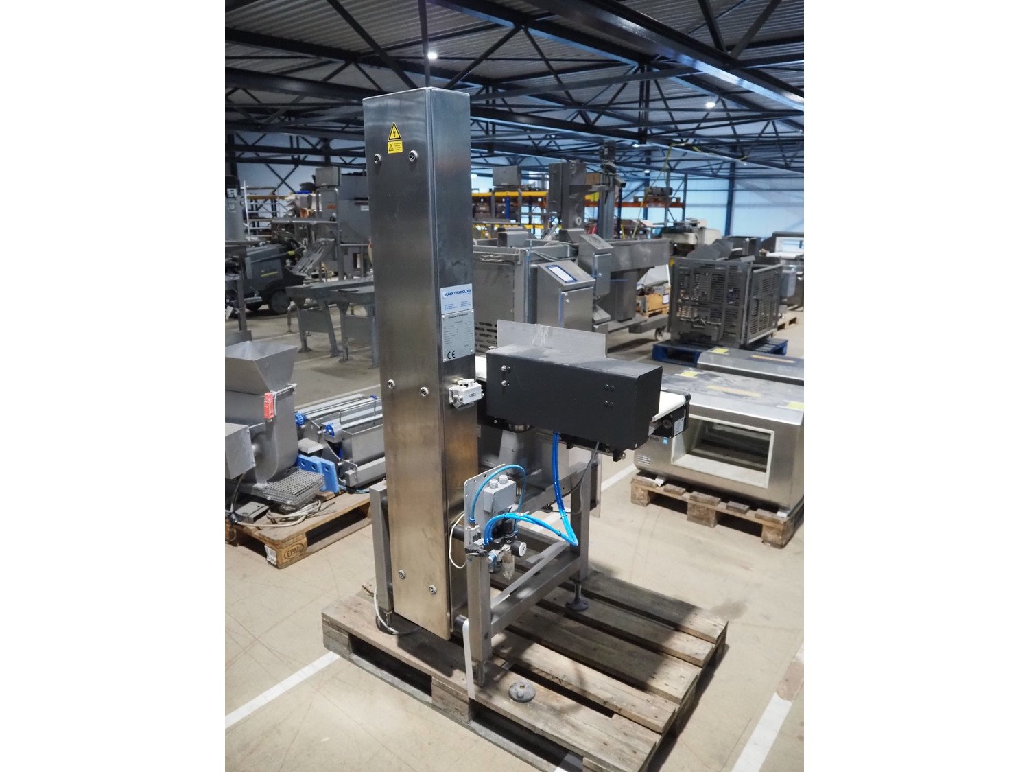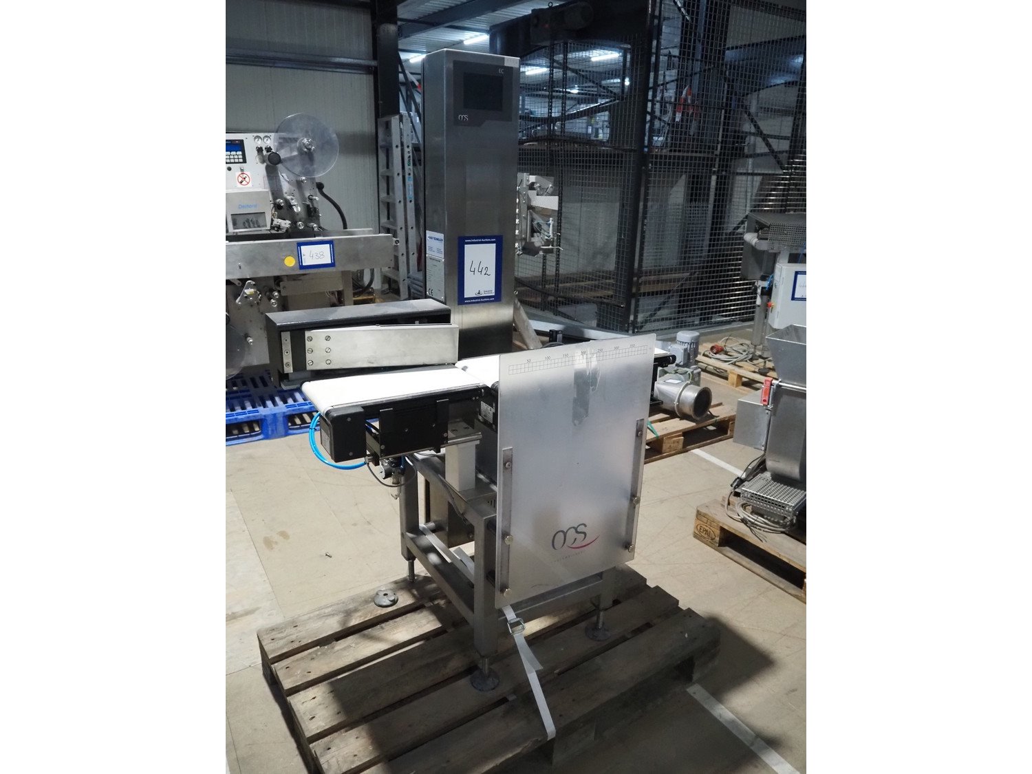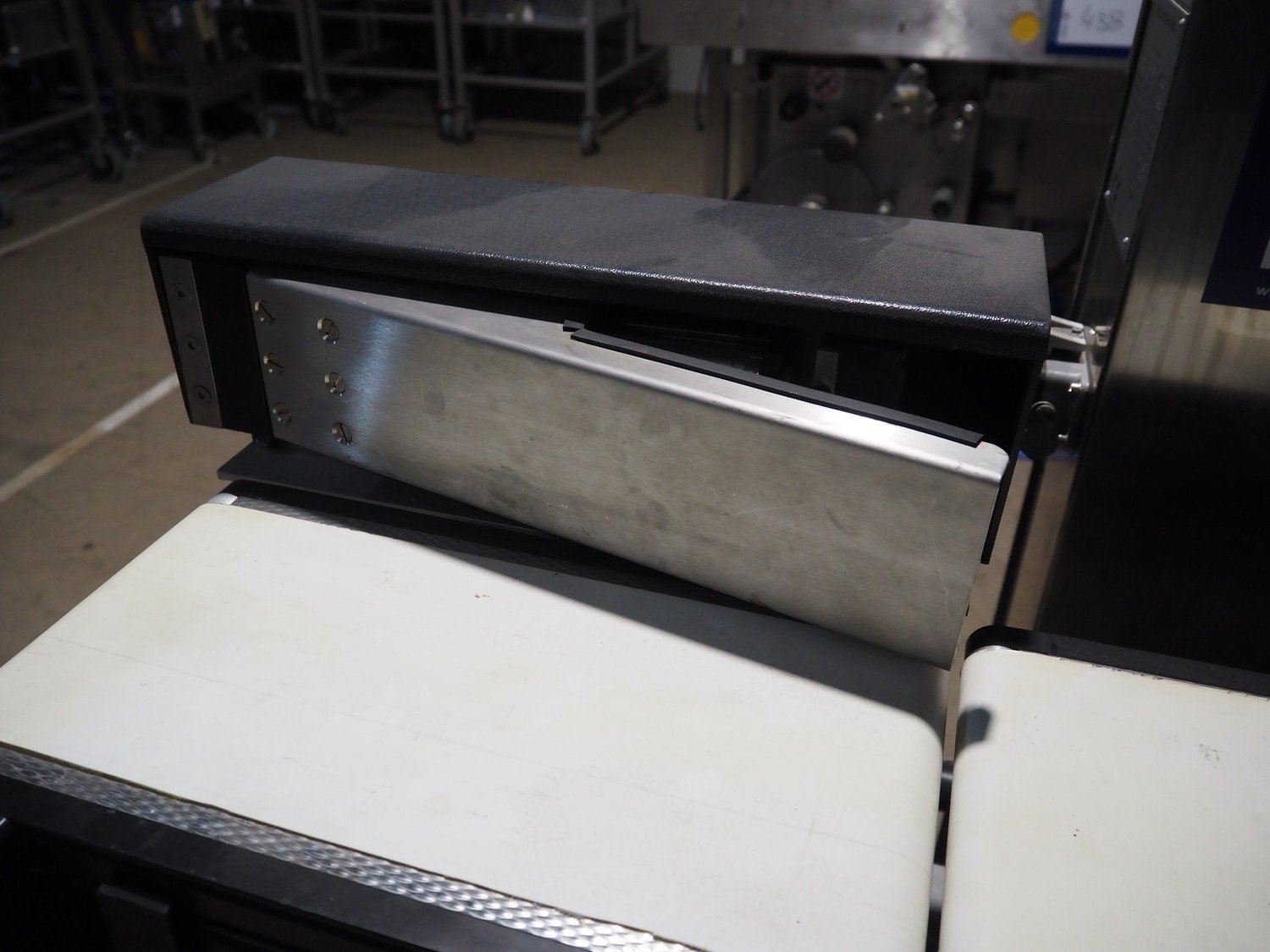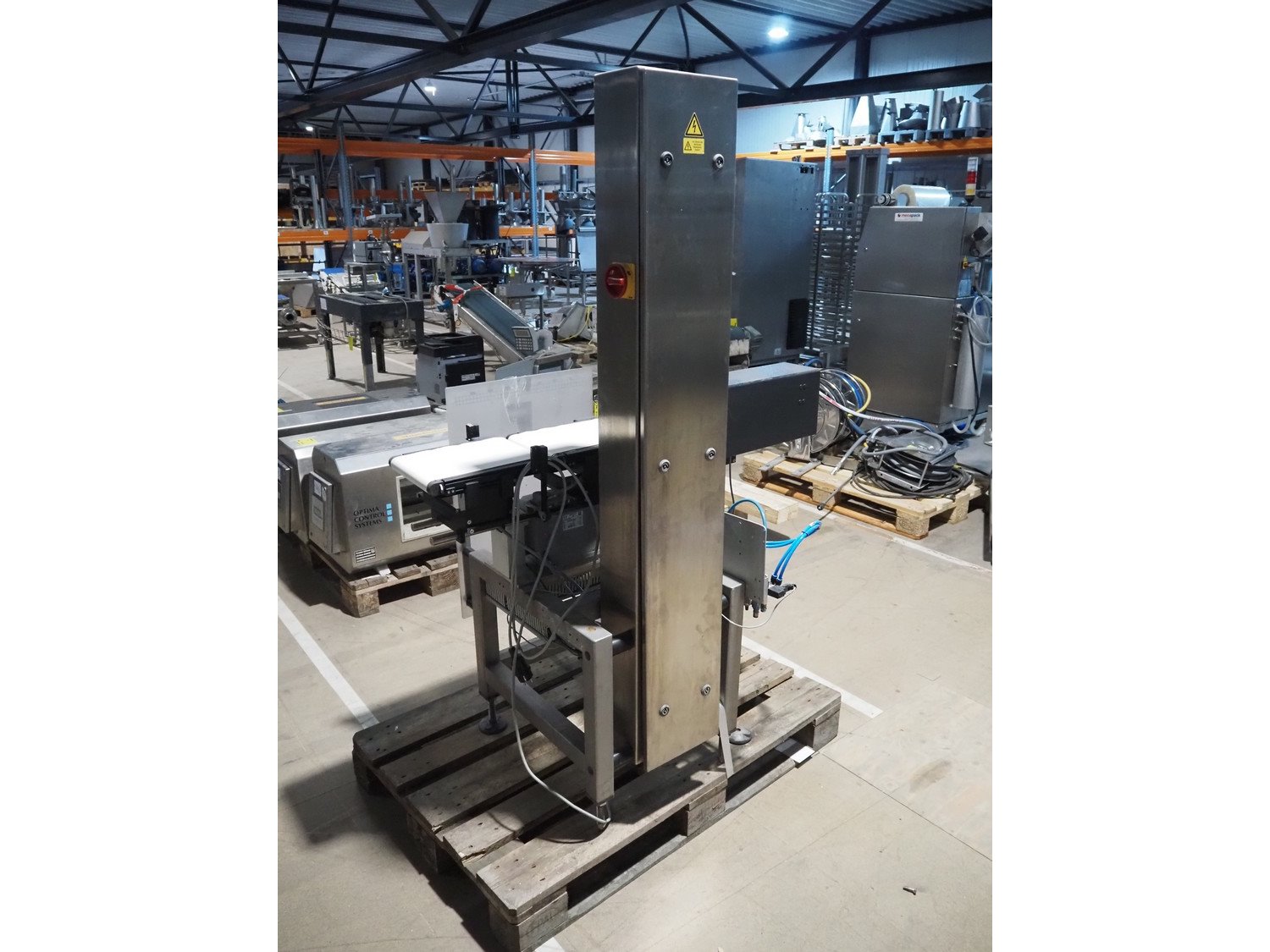 OCS checkweigher with rejector, type: EC, number: 1001821, year of construction: 2002, 230 V, 50 Hz, maximum capacity: 1500 g, e- 0.2 g, plastic belts, belt width: 175 mm, total dimensions: 1050 mm x 700 mm x 1650 mm. Kavel locatie: Amfoor 6, 4421 SE Kapelle, Nederland