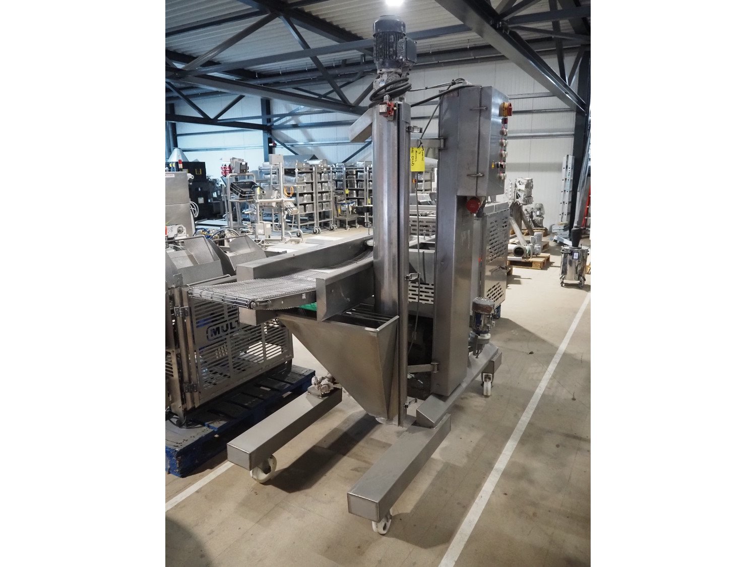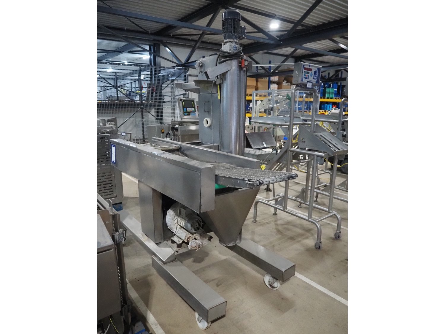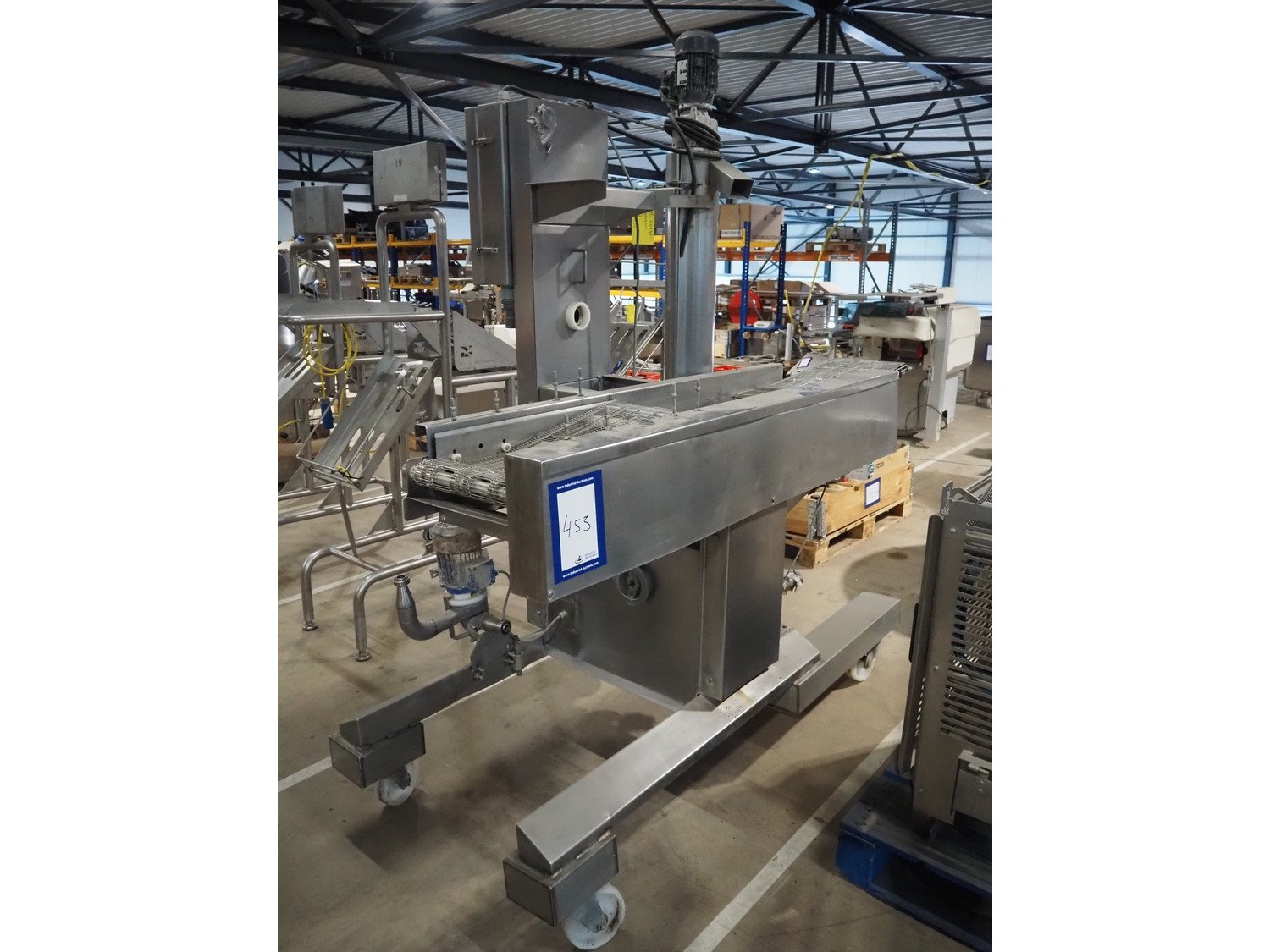Mobile coating machine, s/s mesh belt, belt width: 300 mm, total dimensions: 2100 mm x 900 mm x 2230 mm. Incomplete. Kavel locatie: Amfoor 6, 4421 SE Kapelle, Nederland