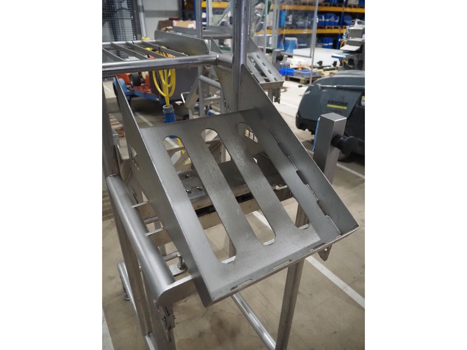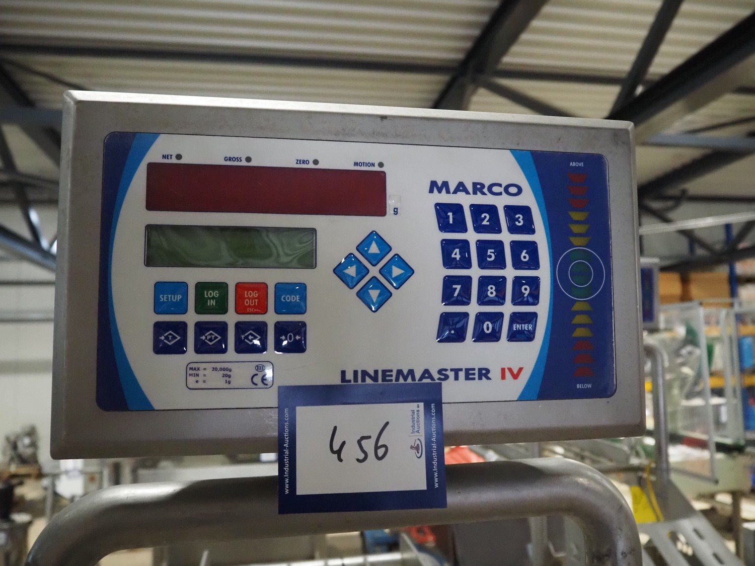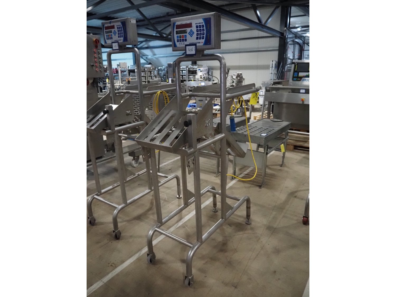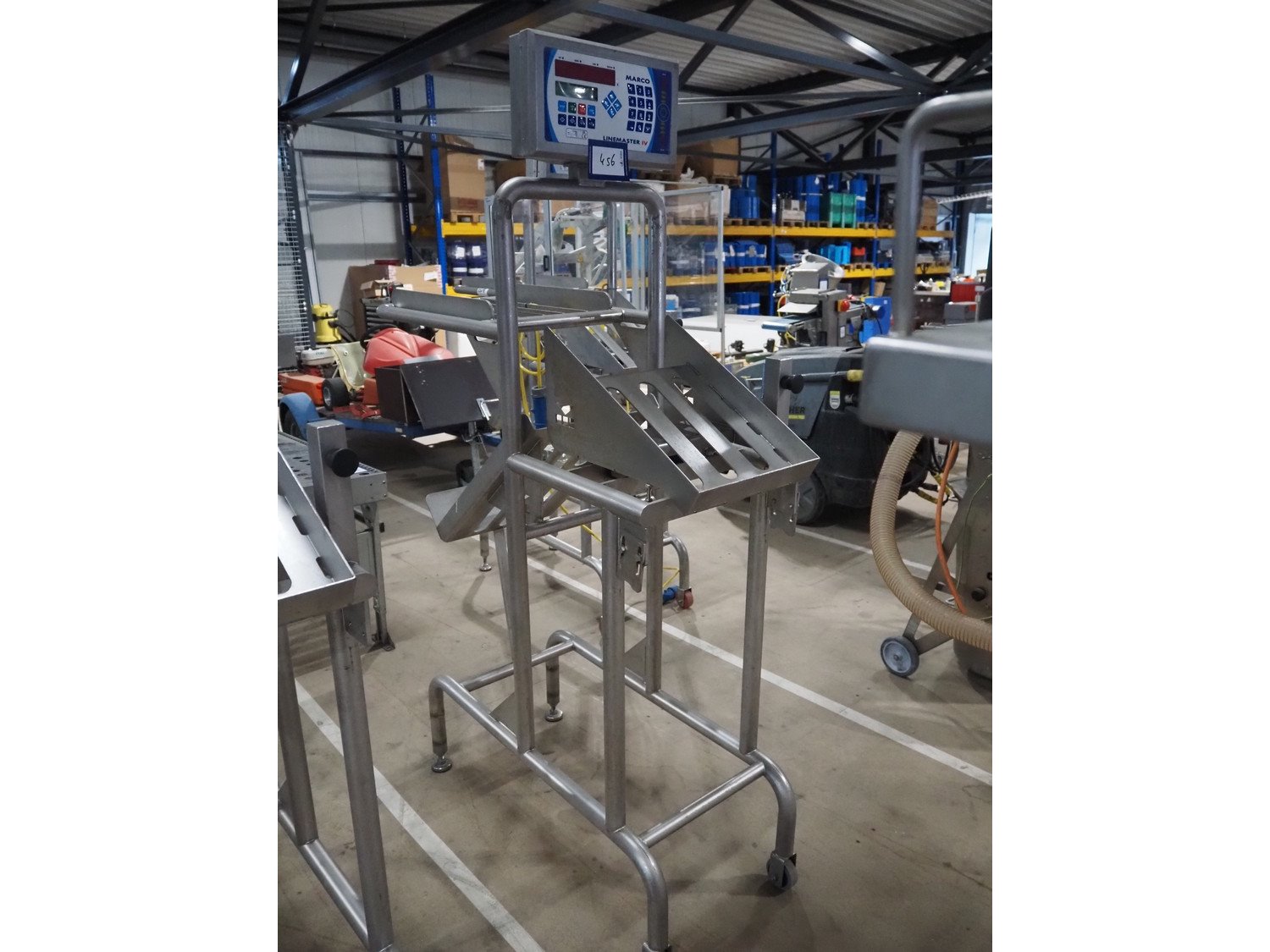 Marco weighing scale for crates on s/s frame, model: LINEMASTER IV, maximum weight: 20000 gram, minimum weight: 20 gram, e= 1 gram, clearance: 500 mm x 320 mm, total dimensions: 1130 mm x 460 mm x 1860 mm. Kavel locatie: Amfoor 6, 4421 SE Kapelle, Nederland