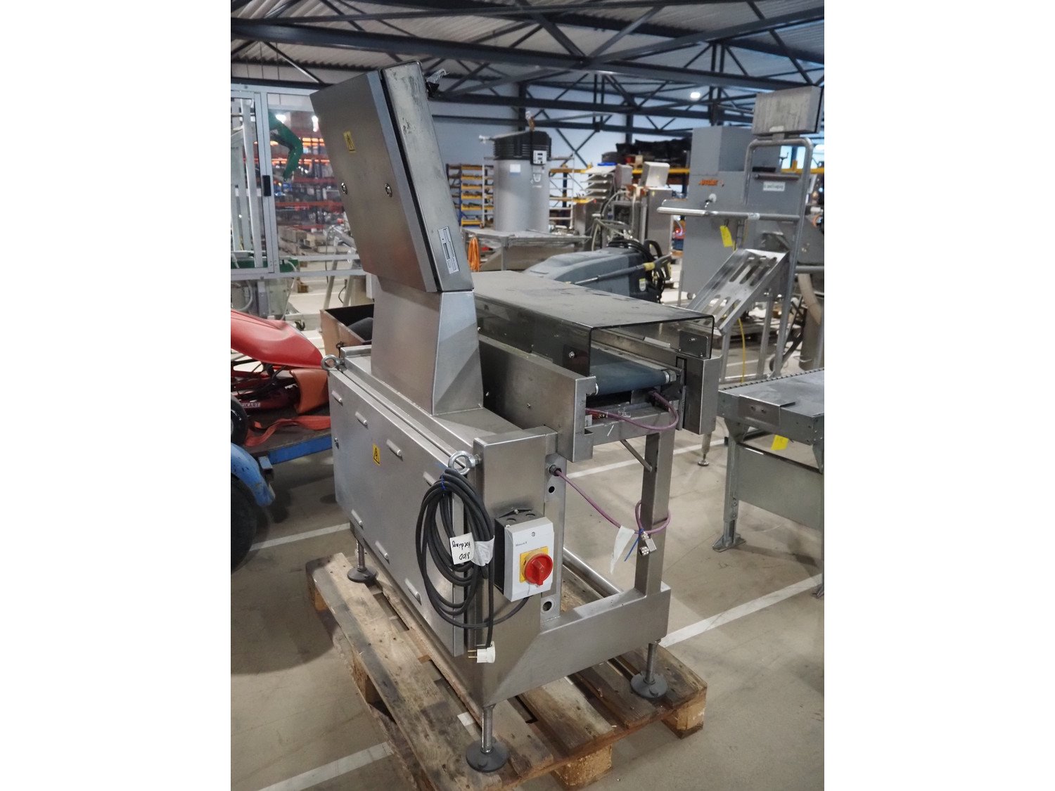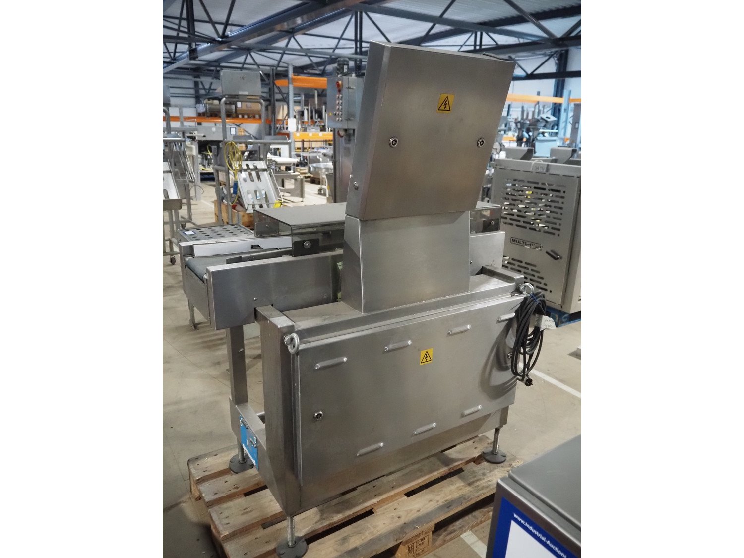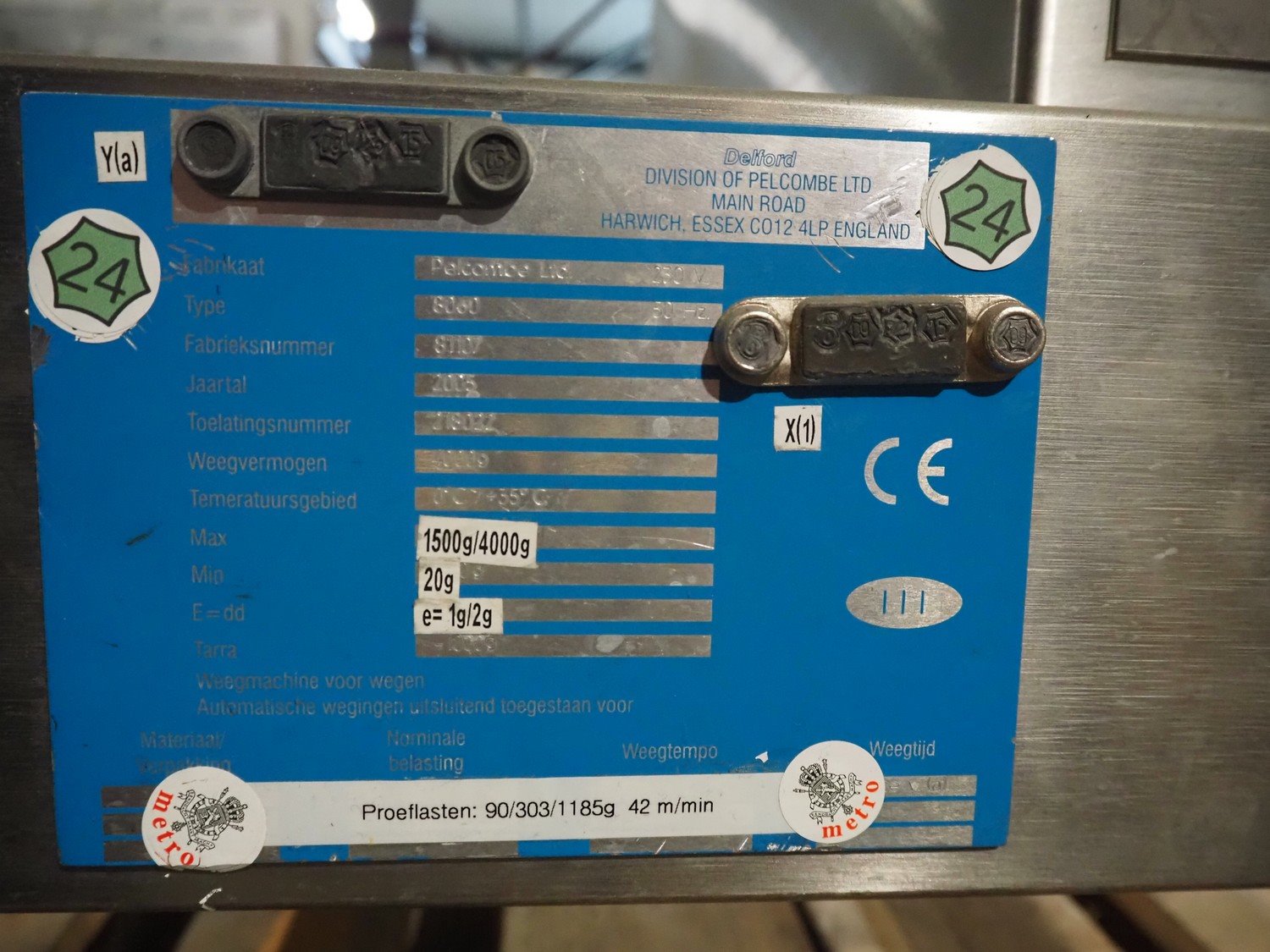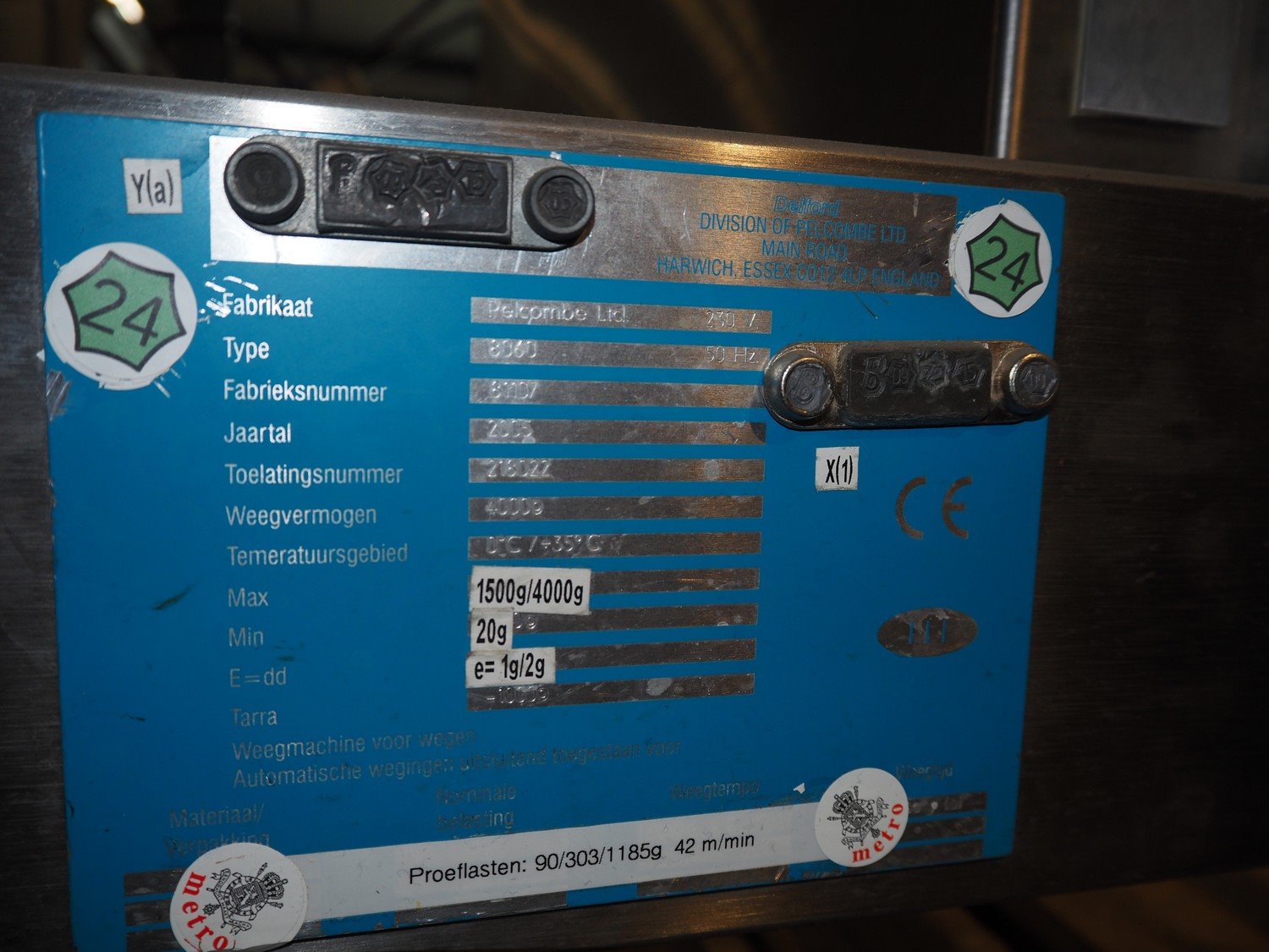 AEW Delford checkweigher with rejector, type: 8060, factory number: 81107, year of construction: 2005, 230 V, 50 Hz, maximum capacity: 1500/4000 g, minimum capacity: 20 g, e= 1/2 g, plastic belt, belt width: 200 mm, total dimensions: 1200 mm x 650 mm x 1550 mm. Kavel locatie: Amfoor 6, 4421 SE Kapelle, Nederland