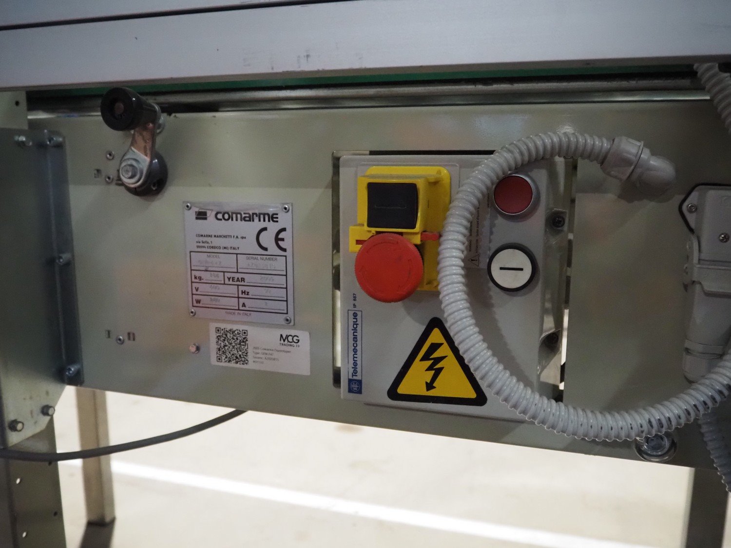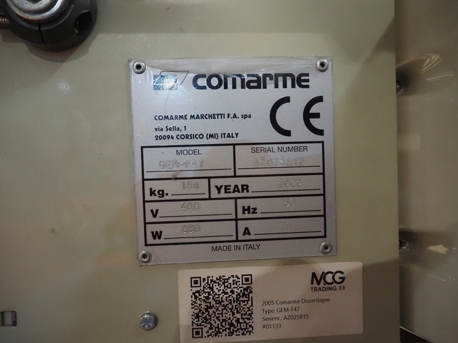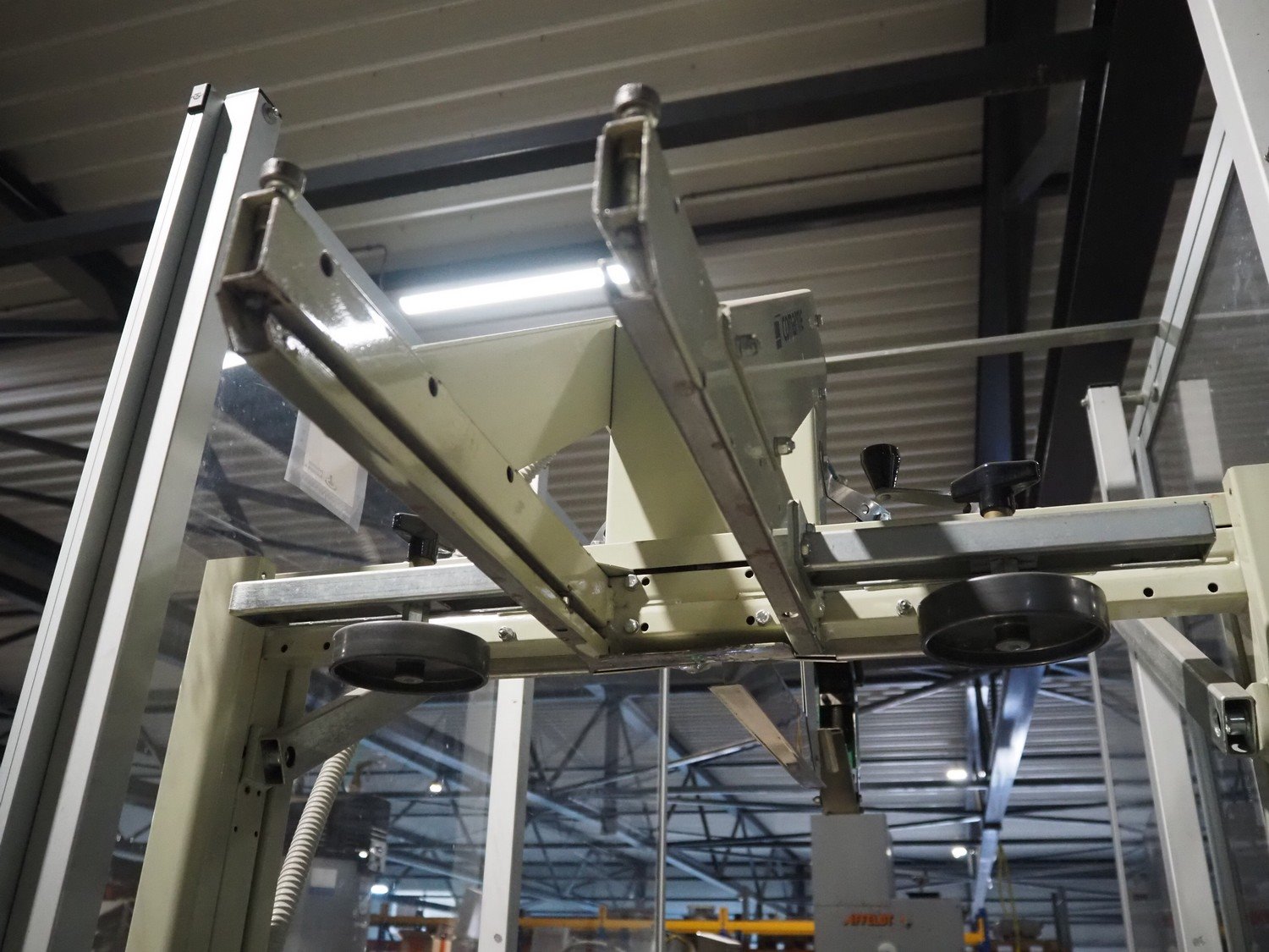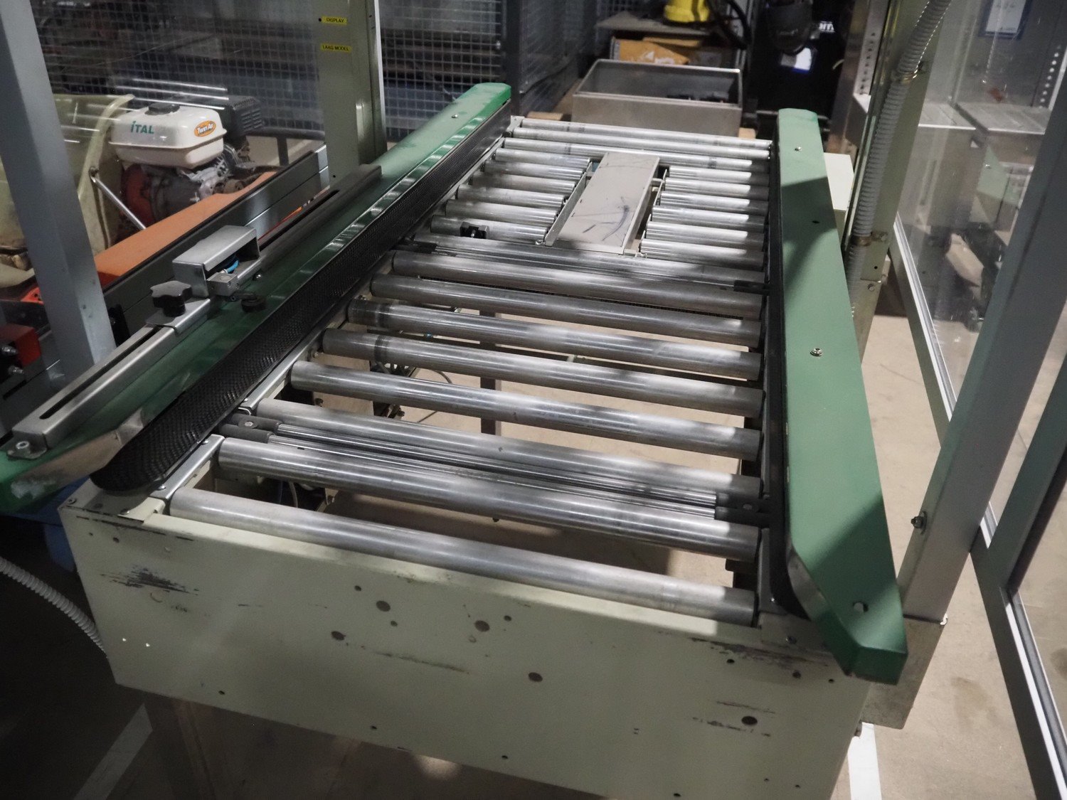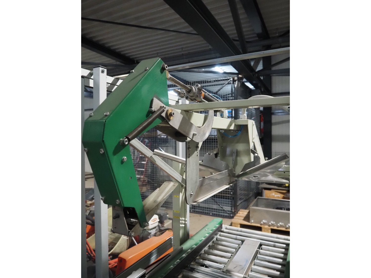 Comarme box closing machine with top taper, model: GEM-f47, serial number: AZ025815, year of construction: 2005, 400 V, 50 Hz. 1 A, 280 W, weight: 186 kg, steel rollers, roller width: 520 mm, plastic belt, belt width: 50 mm, total dimensions: 2200 mm x 980 mm x 1960 mm. Kavel locatie: Amfoor 6, 4421 SE Kapelle, Nederland