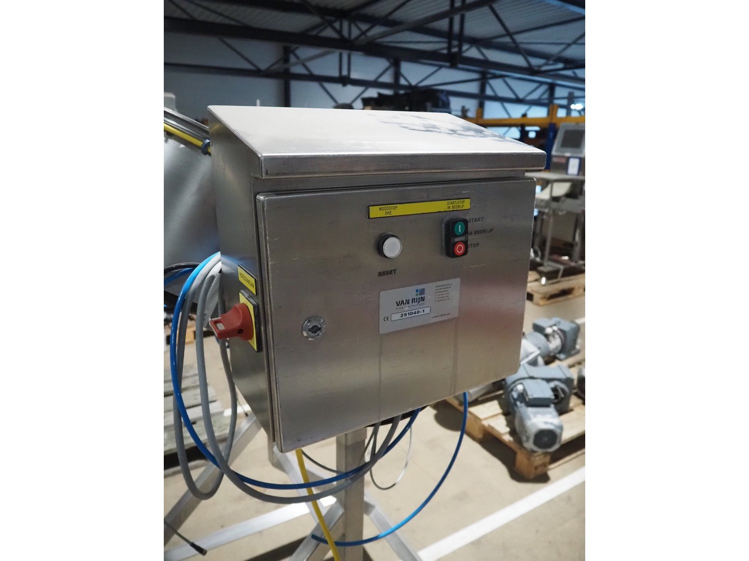 Van Rijn mobile egg shell cutter, number: 251040-1, dimensions: 950 mm x 600 mm x 1480 mm. Kavel locatie: Amfoor 6, 4421 SE Kapelle, Nederland
