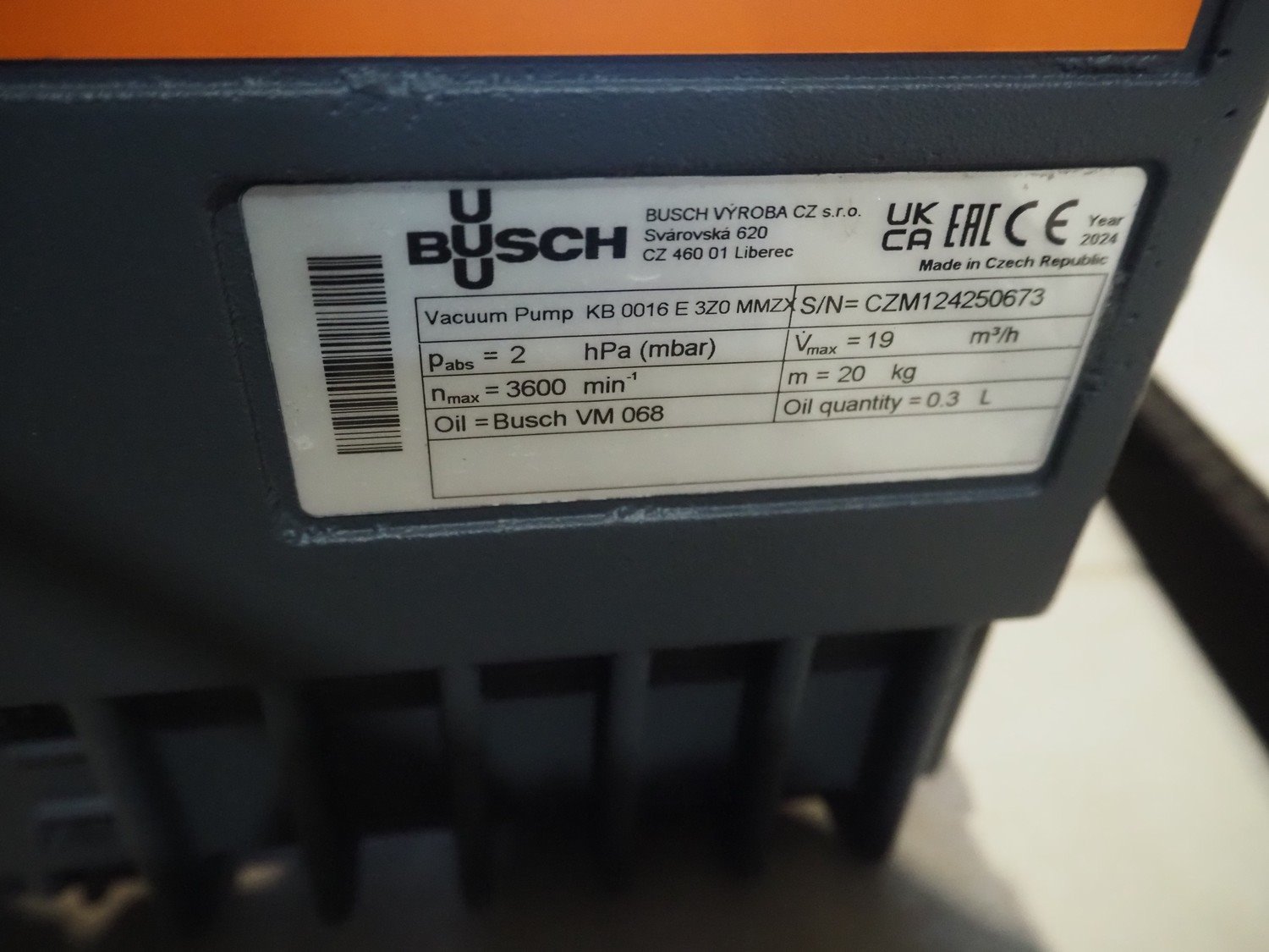 Busch vacuum pump, type: KB 0016 E 3Z0 MMZX, serial number: CZM124250673, year of construction: 2024, capacity: 19 m³ per hour, dimensions: 300 mm x 200 mm x 200 mm. Kavel locatie: Amfoor 6, 4421 SE Kapelle, Nederland