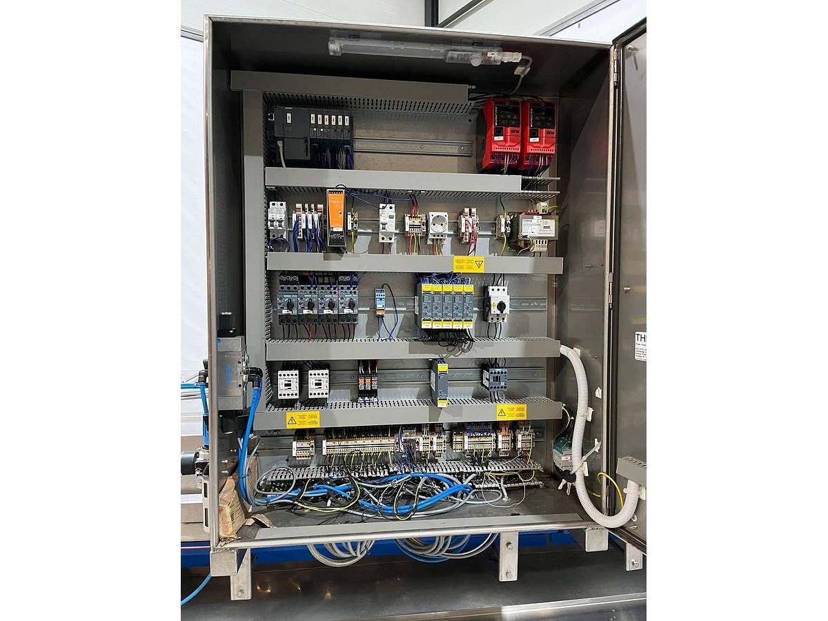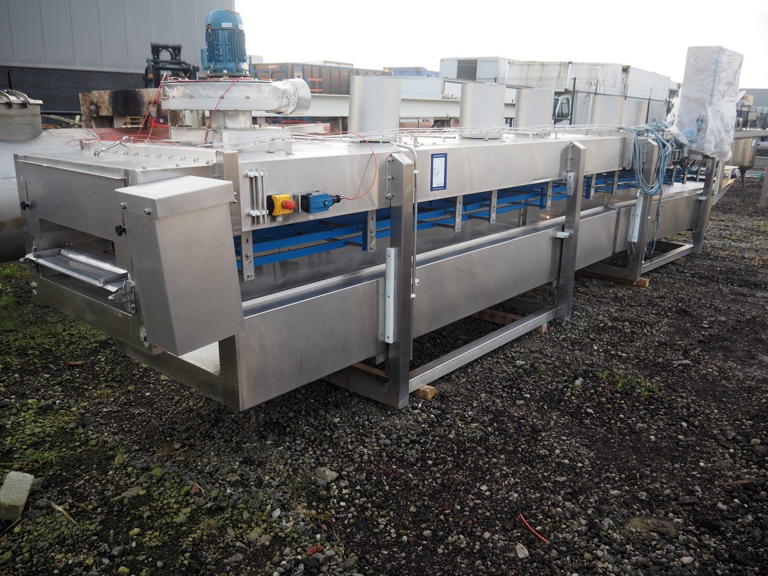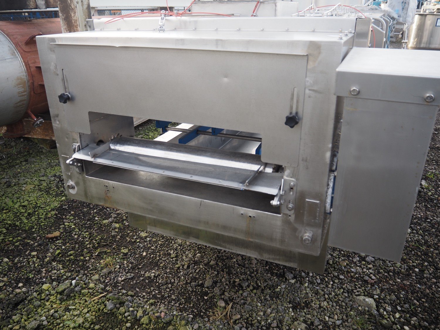 Thele s/s nitrogen freezing tunnel, project: LN2 Froster, year of construction: 2018, 24 A, 7 kW, clearance: 660 mm x 60 mm, total dimensions: 8450 mm x 1550 mm x 2280 mm. Including s/s mesh belt, belt width: 700 mm. Kavel locatie: Amfoor 6, 4421 SE Kapelle, Nederland