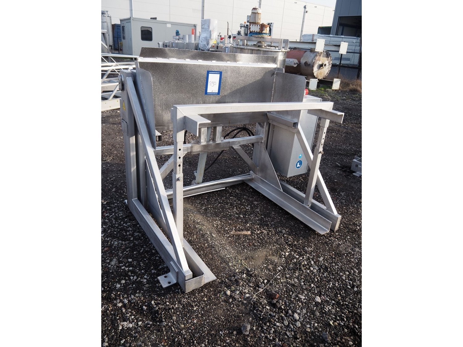 Revicon tilting device for dolav boxes, tilting height: 1150 mm, dimenisons boxes: 1200 mm x 1100 mm x 960 mm, total dimensions: 1780 mm x 1300 mm x 1400 mm. Kavel locatie: Amfoor 6, 4421 SE Kapelle, Nederland