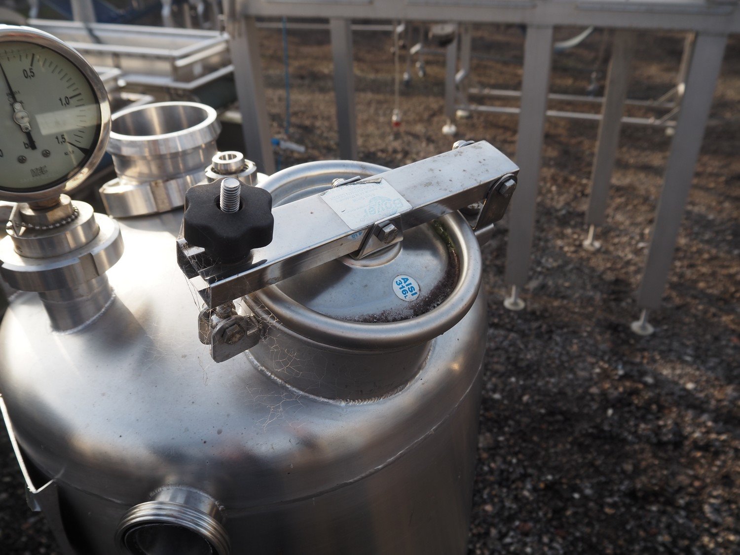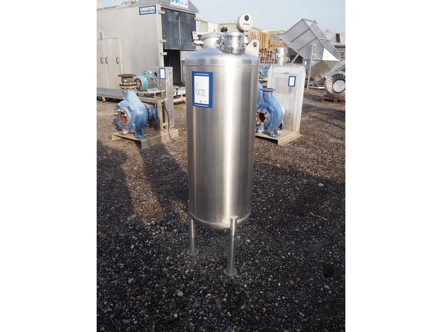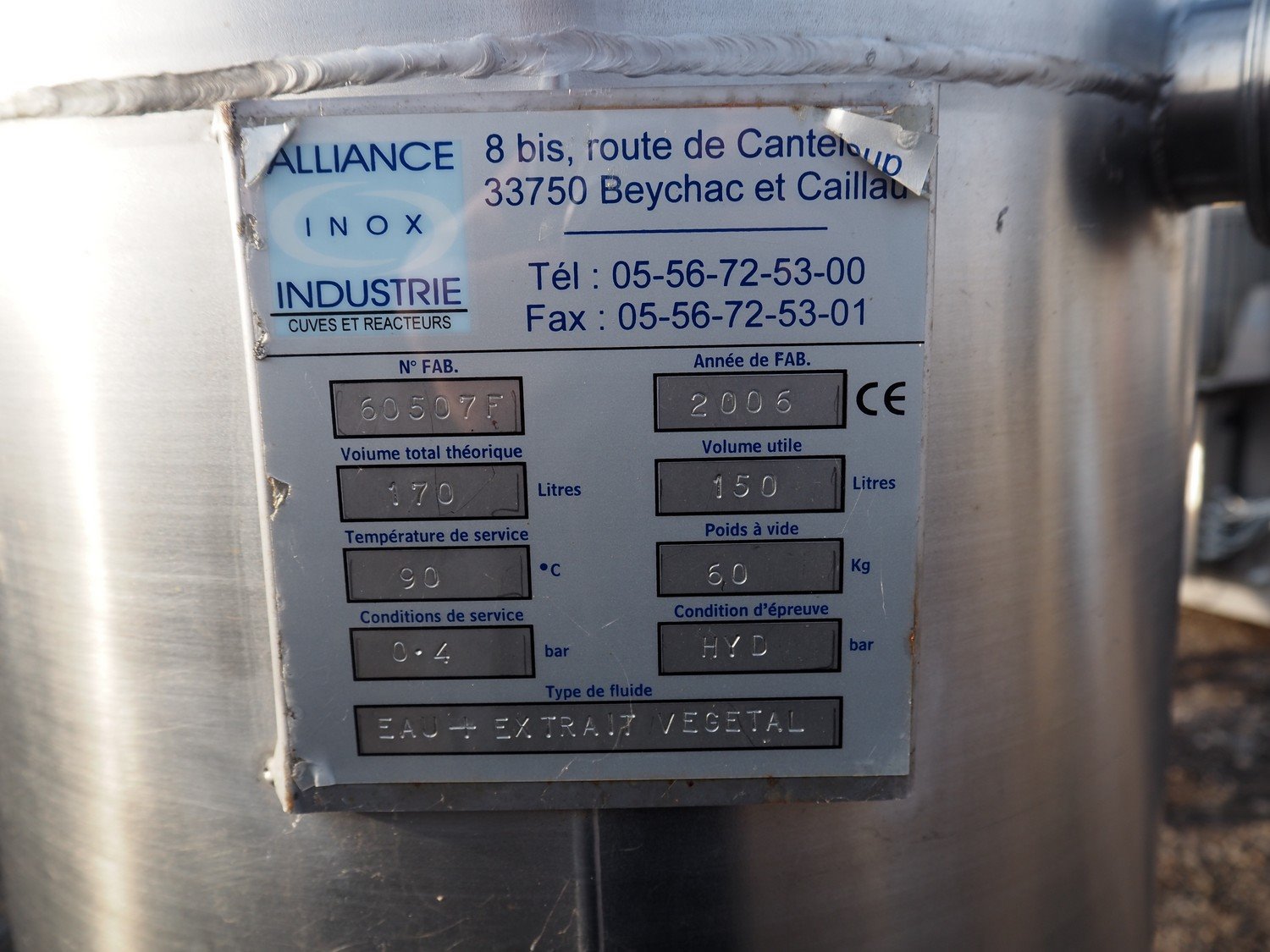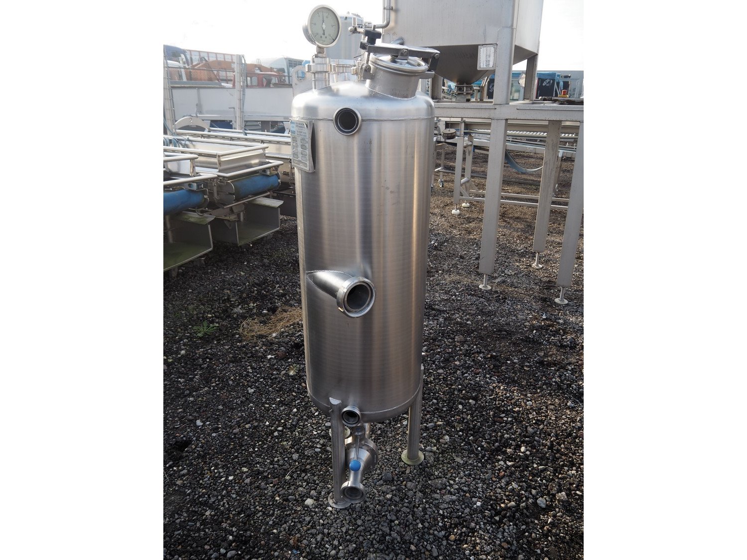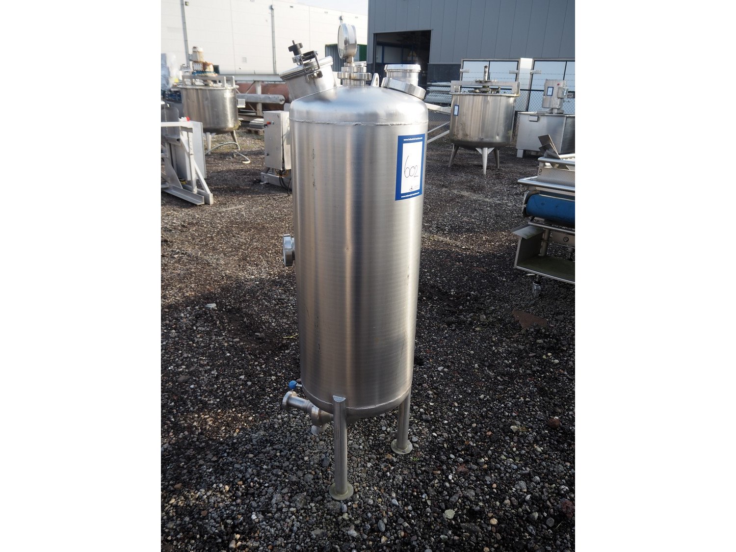 S/s tank, fabrication number: 60507F, year of construction: 2006, maximum temperature: 90° C, volume: 150 liter, dimensions: Ø 600 mm x 1720 mm. Kavel locatie: Amfoor 6, 4421 SE Kapelle, Nederland