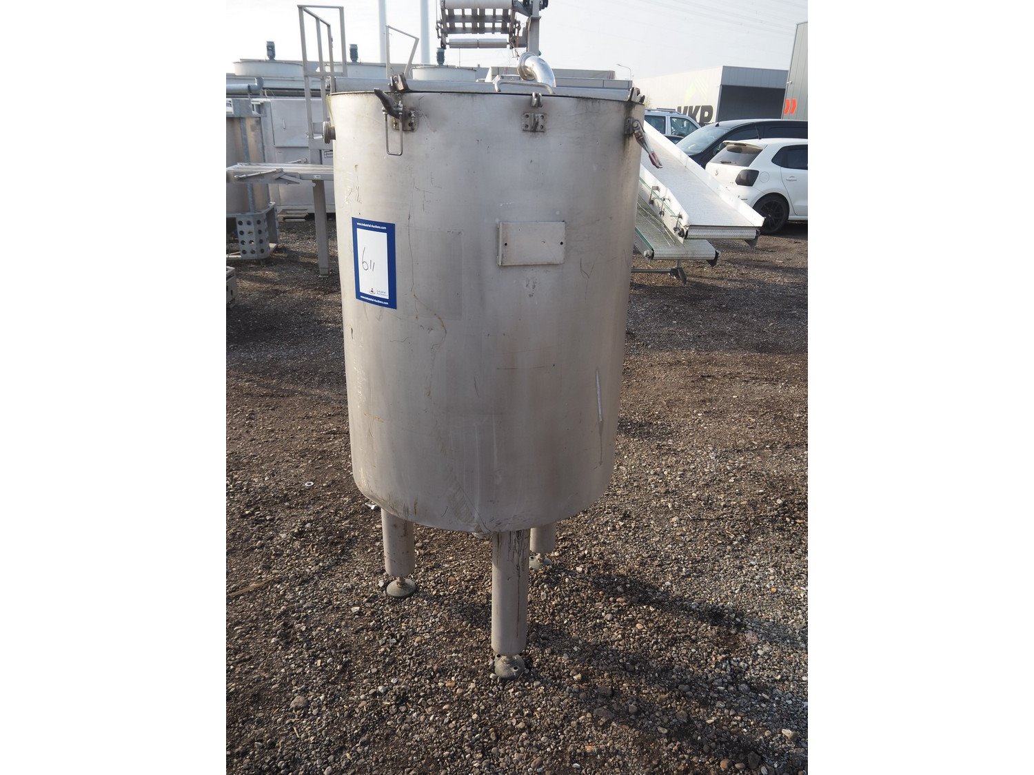 S/s double jacketed tank, inside dimensions: ø 680 mm x 1000 mm, total dimensions: ø 800 mm x 1770 mm. Kavel locatie: Amfoor 6, 4421 SE Kapelle, Nederland