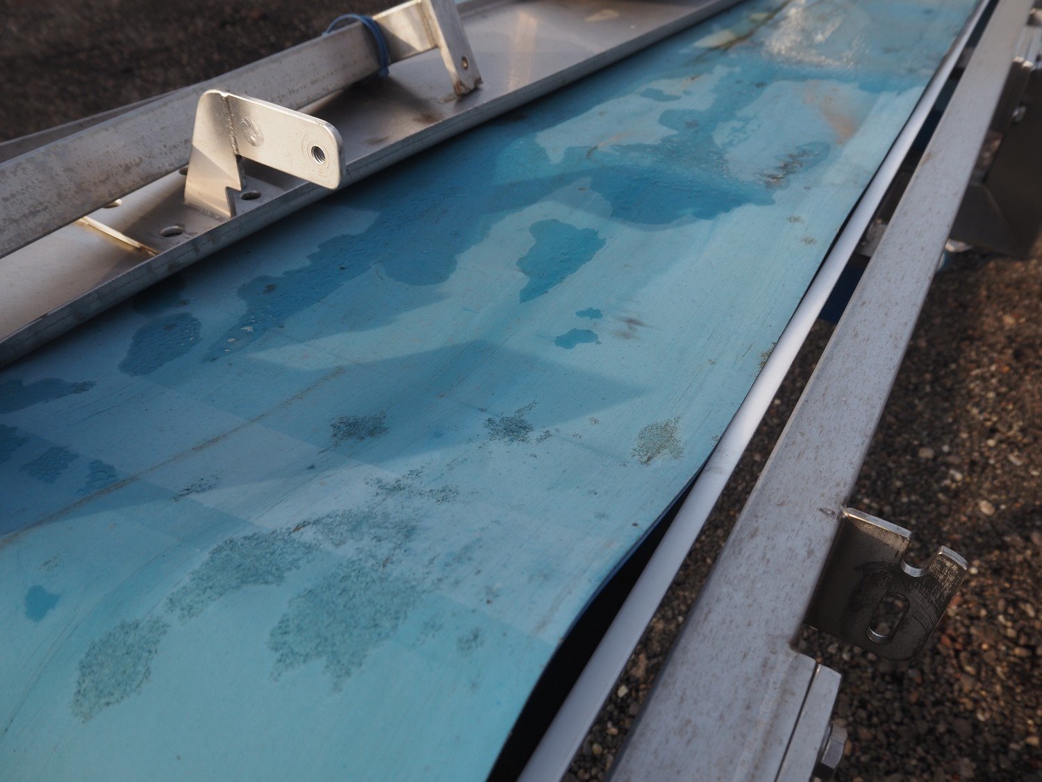 Mobile transport belt, plastic belt, belt width: 500 mm, total dimensions: 2600 mm x 750 mm x 1000 mm. Kavel locatie: Amfoor 6, 4421 SE Kapelle, Nederland