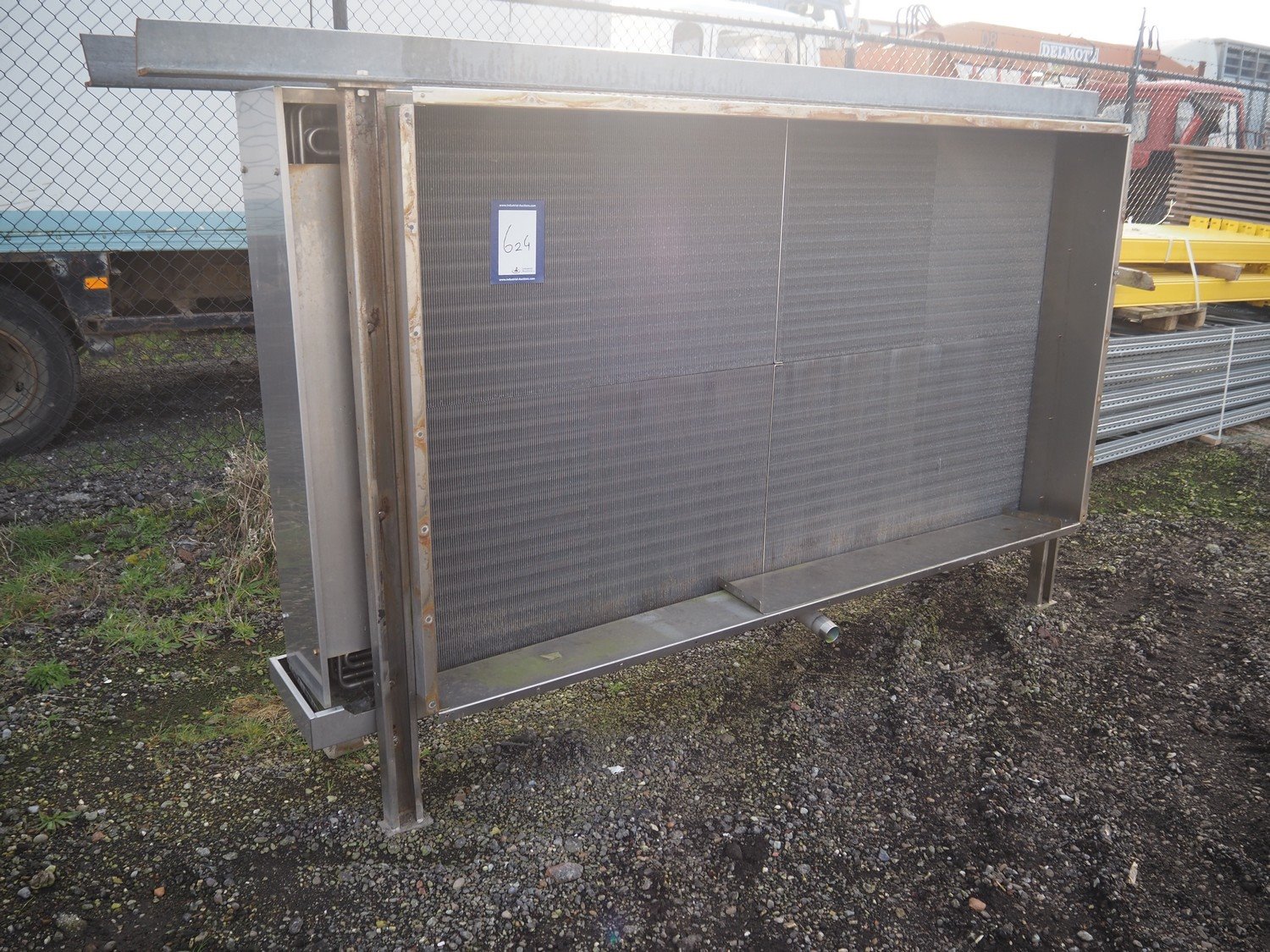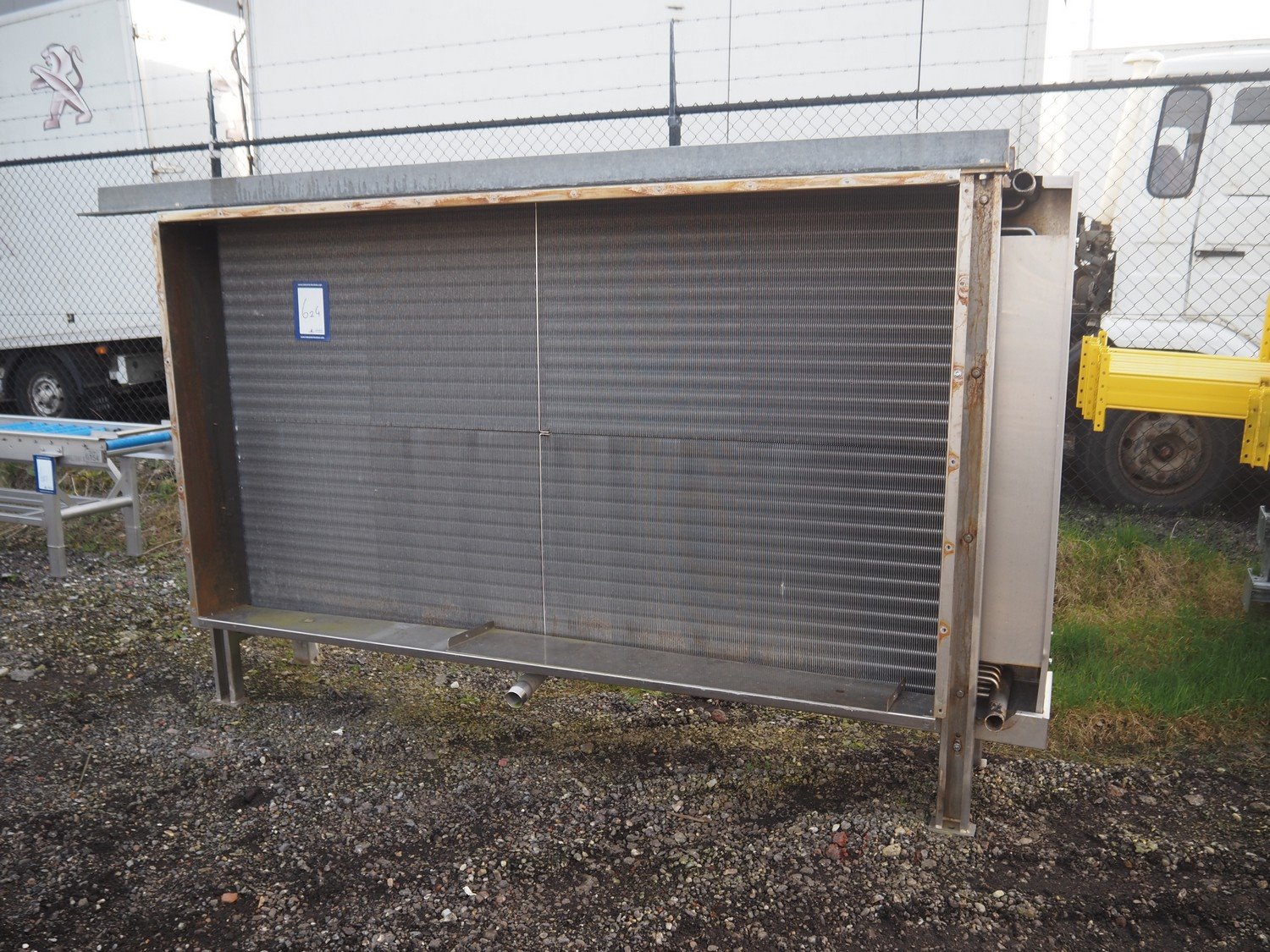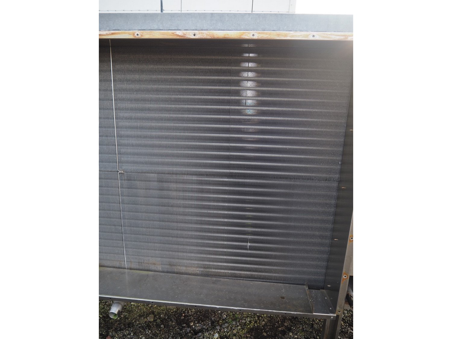 Kelvion s/s evaporator, type: Goedhart KB.h, year of construction: 2019, weight: 275 kg, V: 49 dm³, dimensions: 3100 mm x 650 mm x 1750 mm. Kavel locatie: Amfoor 6, 4421 SE Kapelle, Nederland
