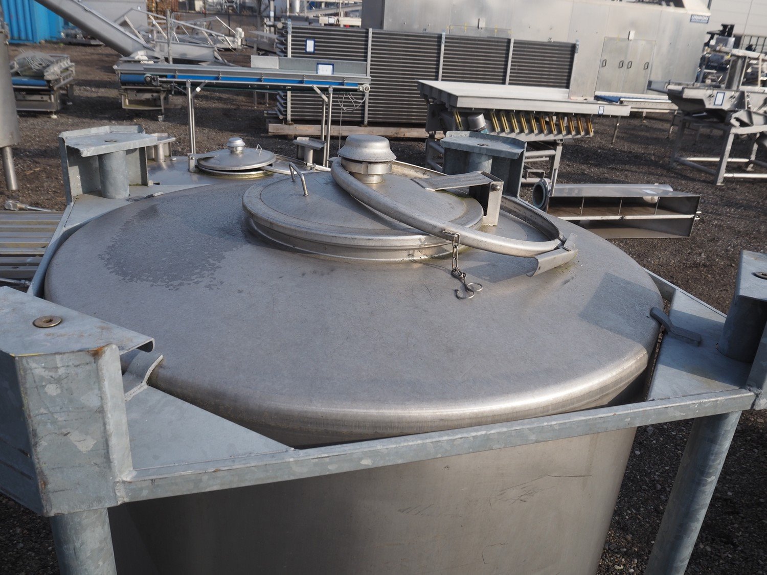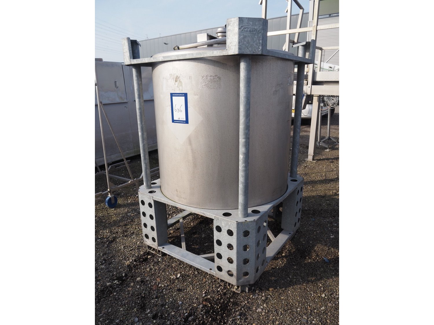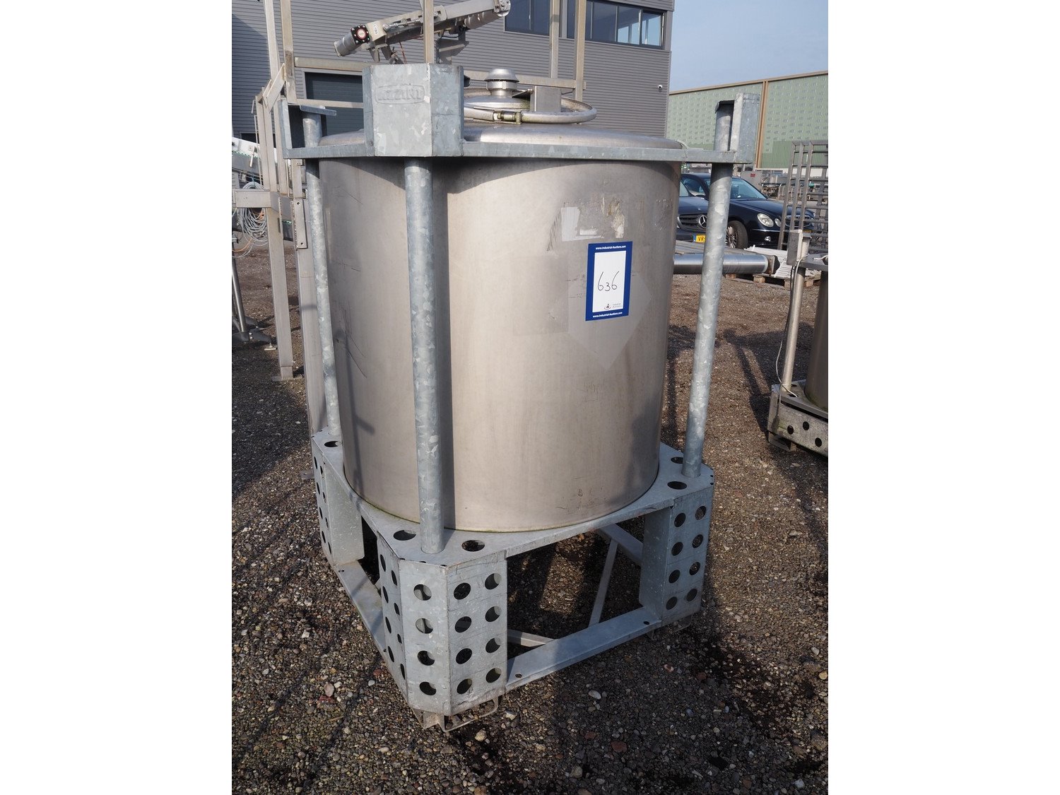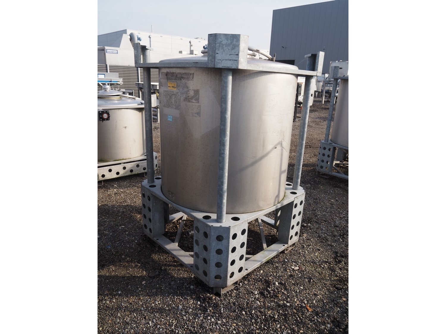 Behälter kg - Bremen s/s tank on steel frame, volume: 1081 liter, dimensions frame: 1150 mm x 1150 mm x 1750. Kavel locatie: Amfoor 6, 4421 SE Kapelle, Nederland